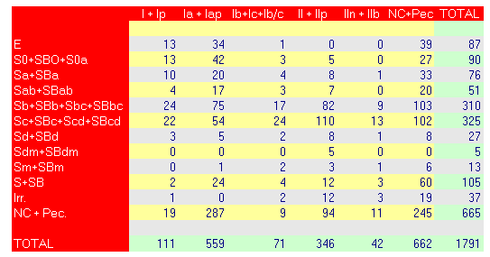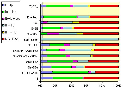 Distribution of Supernovae according to their parent galaxies' morphological type.