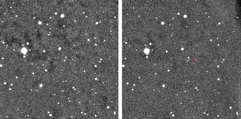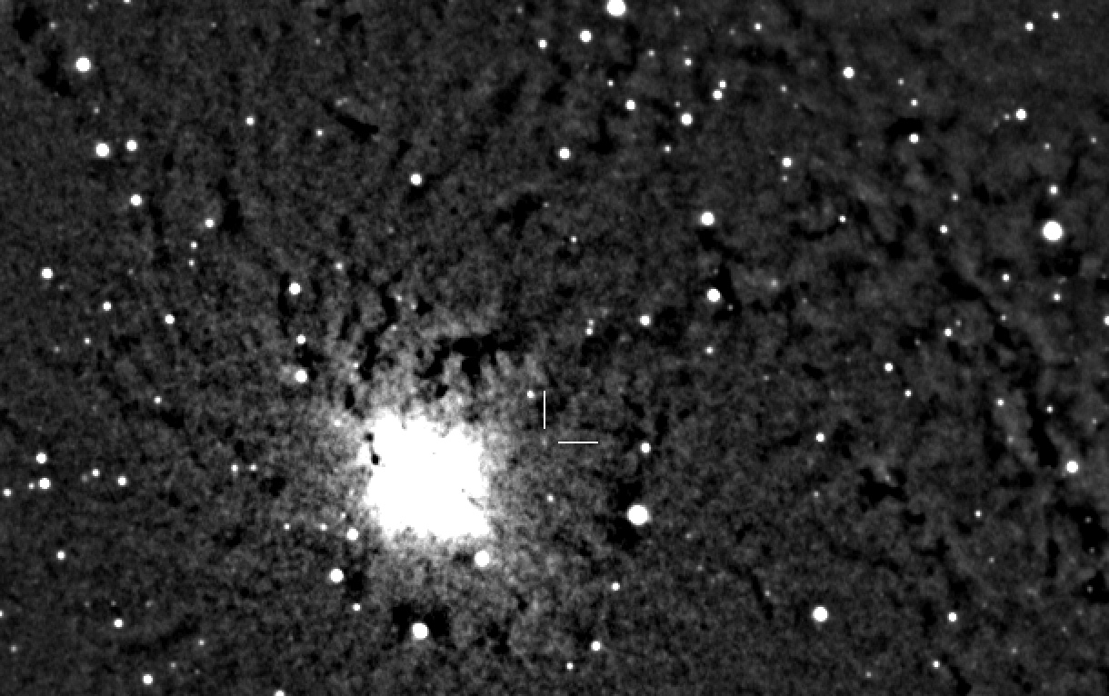 Found in M31 at R.A. = 00h44m26s.55, Decl. = +41°31'13".6 Located 1350" east and 306" north of the center of M31 Mag 17.8:10/13, Type unknown  |