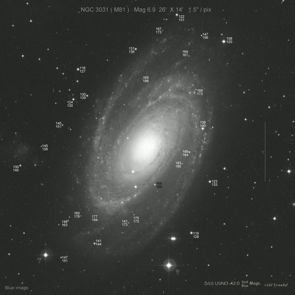 Found in M81 at R.A. = 09h55m53s.80, Decl. = +69°03'38".3 Located 110".6 east and 16".8 south of the center of M81 (Discovery image) (Joseph Brimacombe image) Mag 19.3:1/9, Type unknown (References: ATEL 3871, 3888)  |