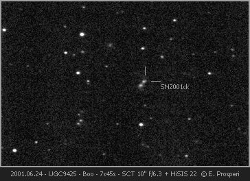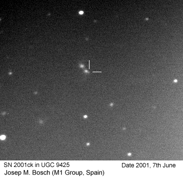 This page is devoted to information on Supernova 2001ck in UGC 9425 Basic information on this SN, including the last reported brightness, on this Supernova can be found on the main page.  Information on the original web pages for many of these images can be found on the updates and links web pages.