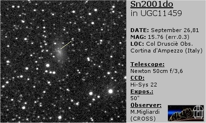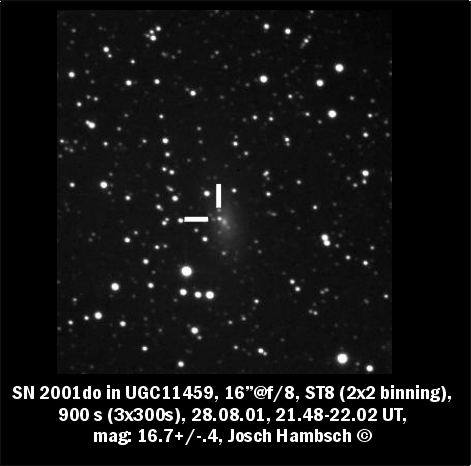 This page is devoted to information on Supernova 2001do in UGC 11459 Basic information on this SN, including the last reported brightness, on this Supernova can be found on the main page.  Information on the original web pages for many of these images can be found on the updates and links web pages.