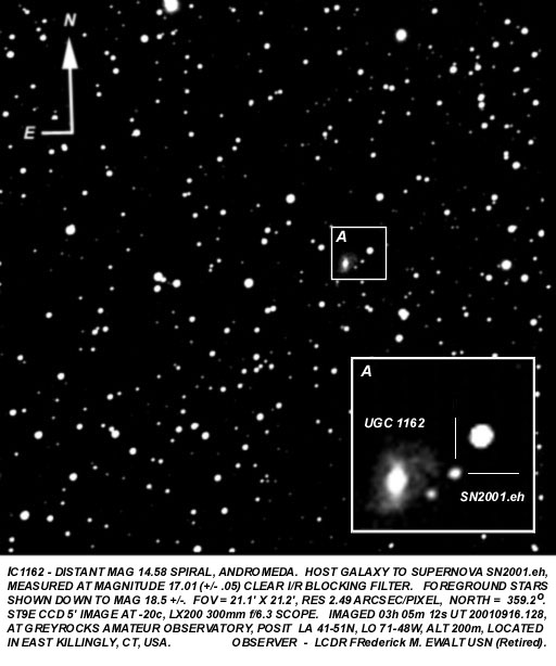 This page is devoted to information on Supernova 2001eh in UGC 1162 Basic information on this SN, including the last reported brightness, on this Supernova can be found on the main page.  Information on the original web pages for many of these images can be found on the updates and links web pages.