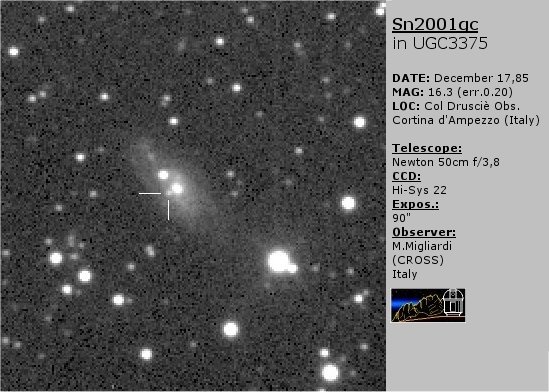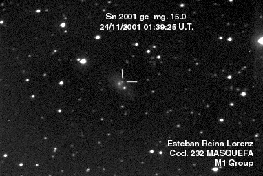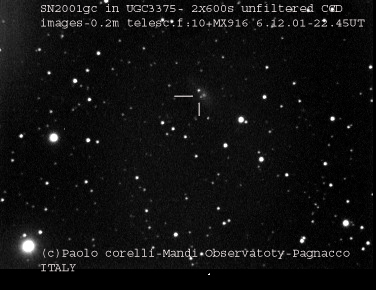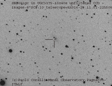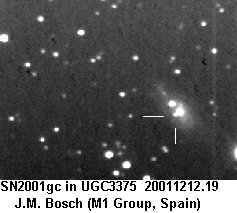 This page is devoted to information on Supernova 2001gc in UGC 3375 Basic information on this SN, including the last reported brightness, on this Supernova can be found on the main page.  Information on the original web pages for many of these images can be found on the updates and links web pages.