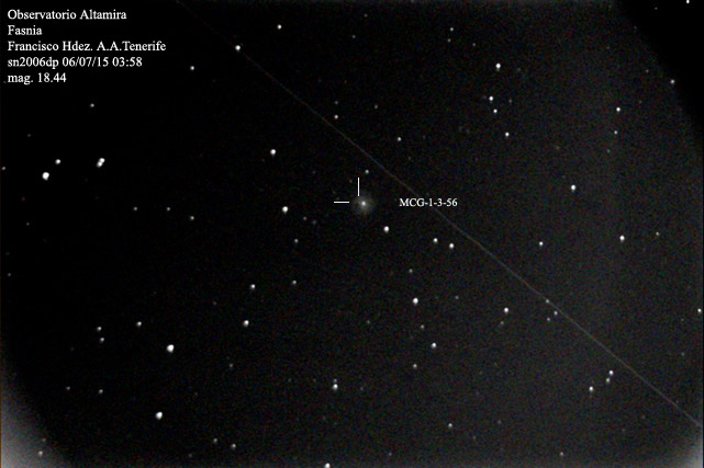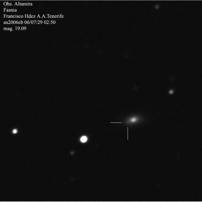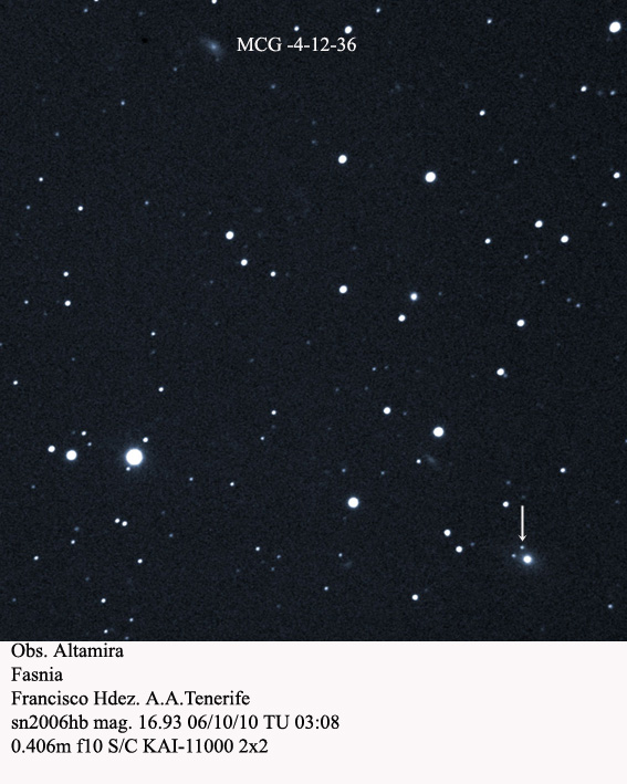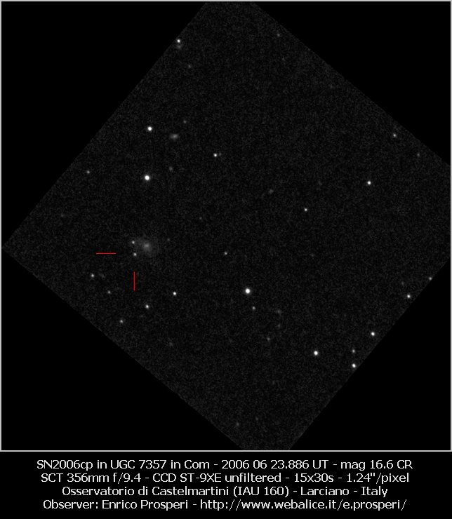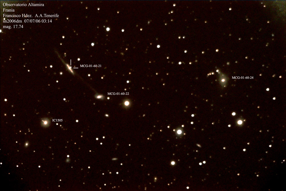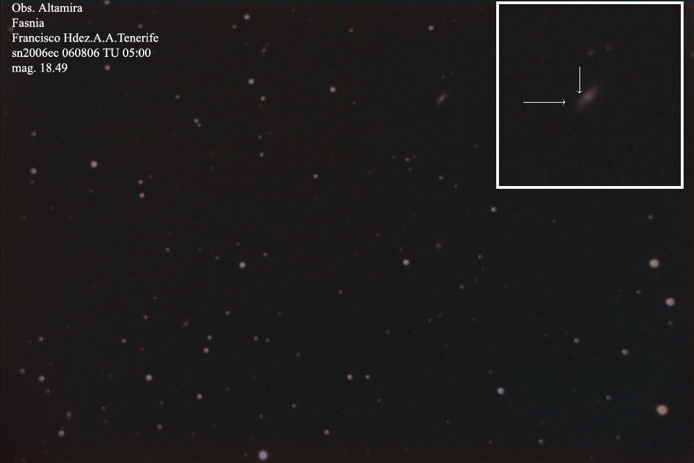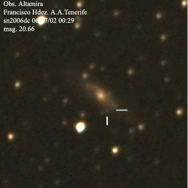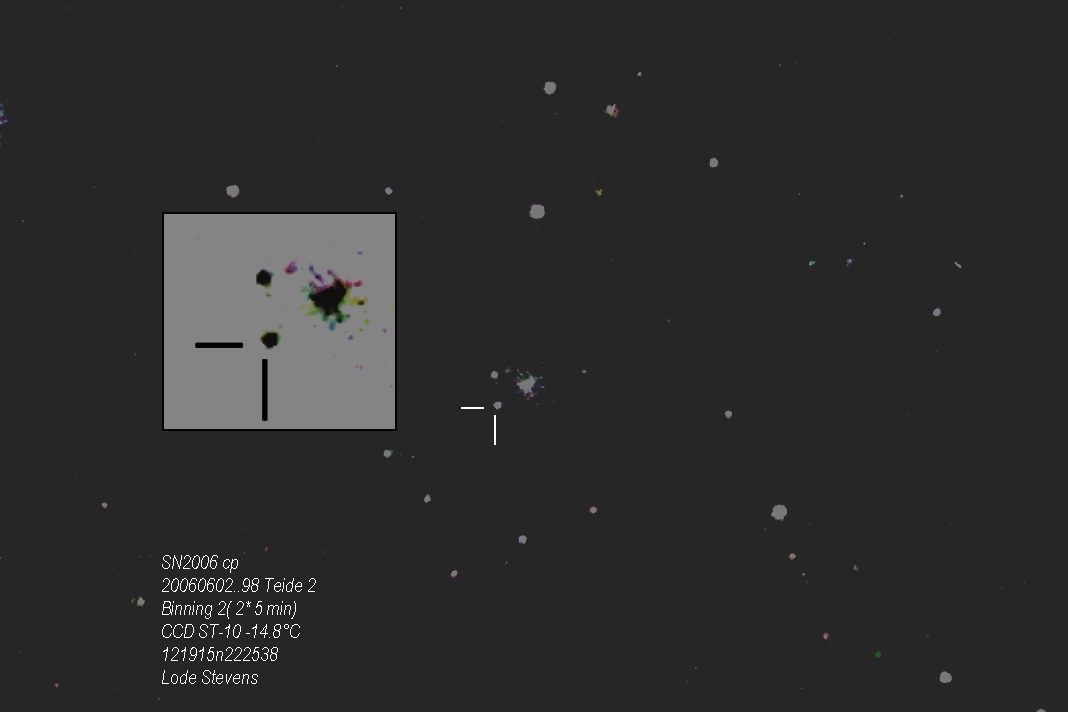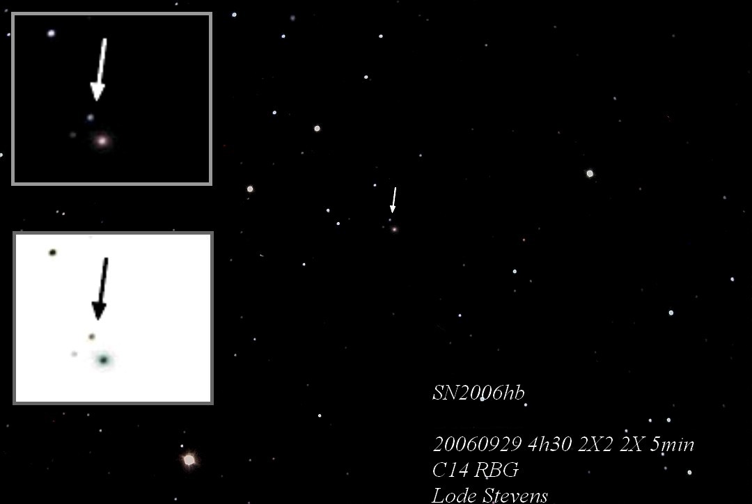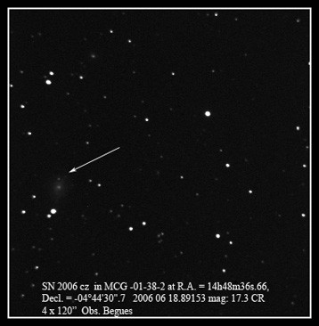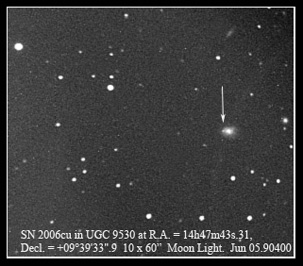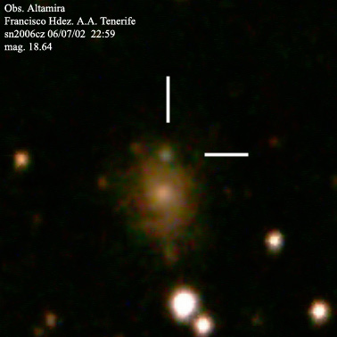 This is a list of the supernovae discovered in 2006. For supernovae which are still visible, please look at the main page for the latest data.   Note that Extra galactic Novae have been moved to a special Extra galactic novae page.   For more information, you can look at the following Supernova Catalogs: