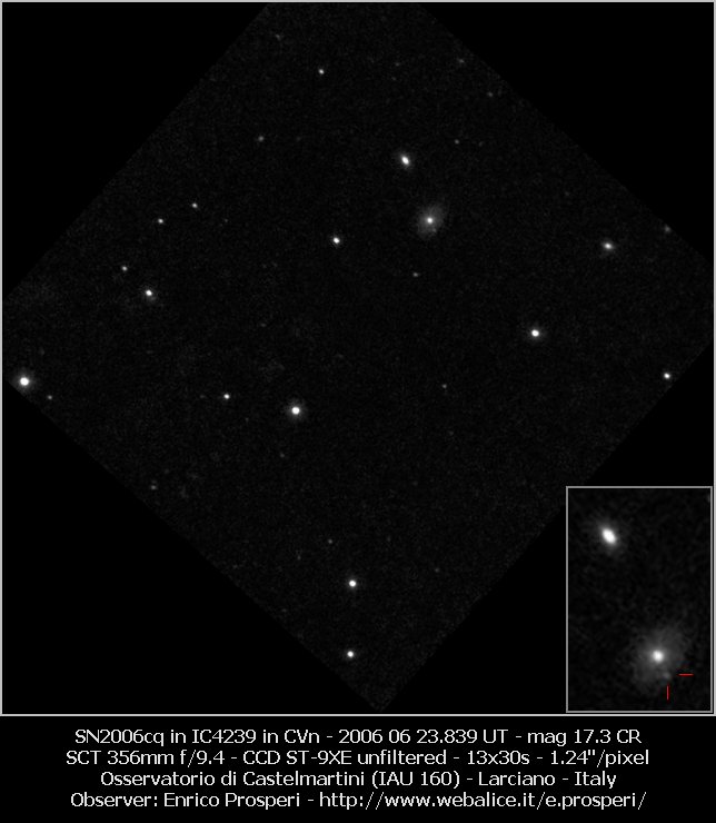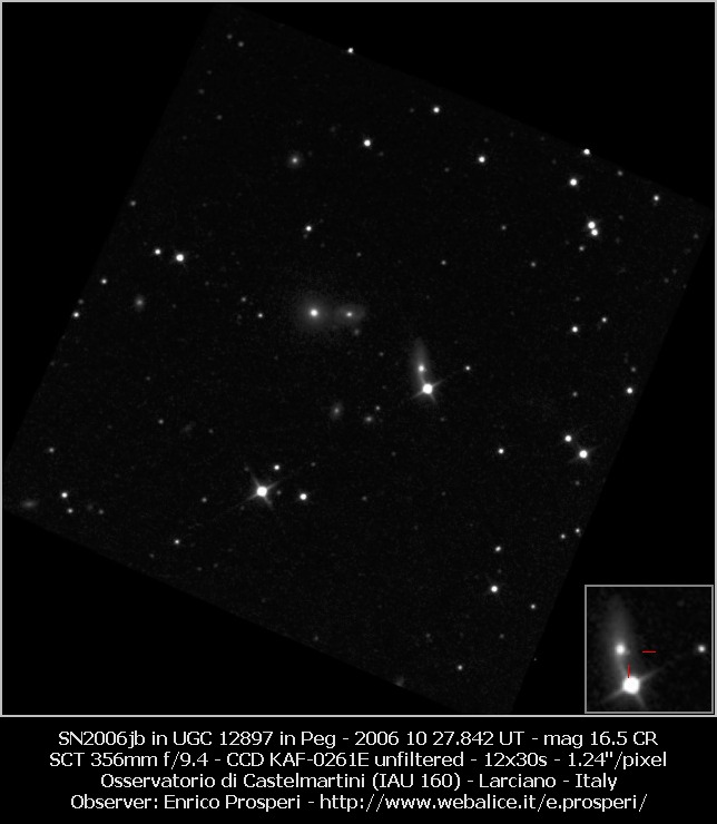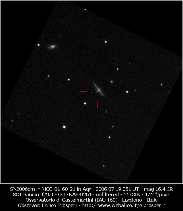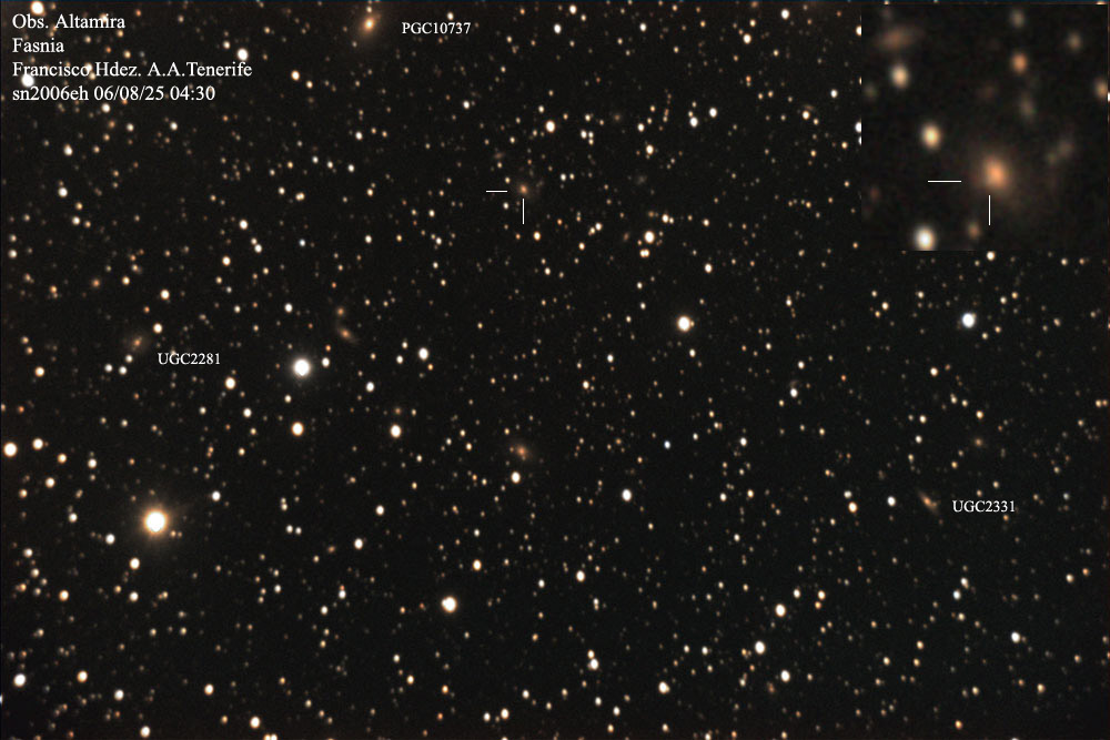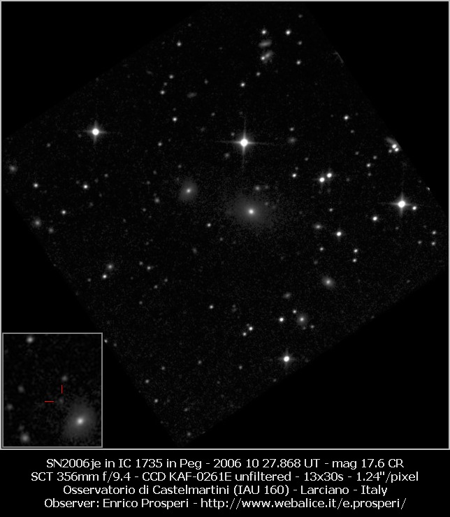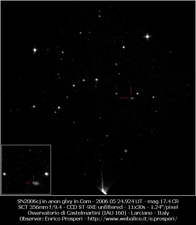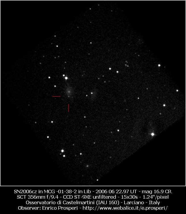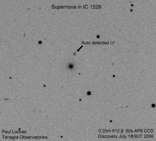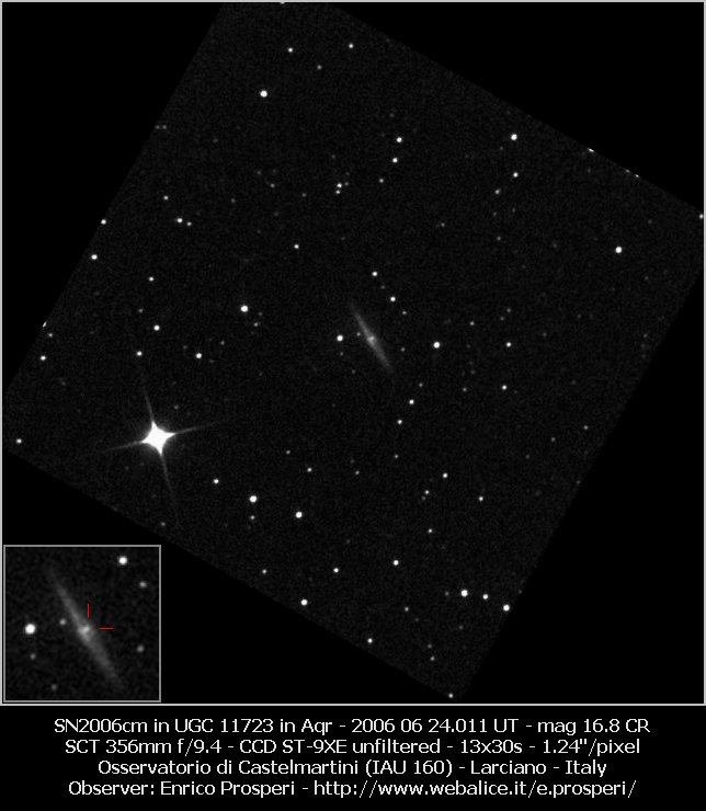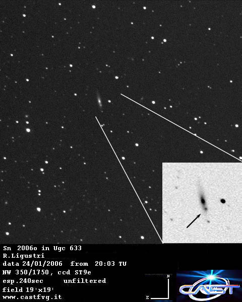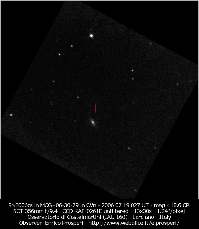 This is a list of the supernovae discovered in 2006. For supernovae which are still visible, please look at the main page for the latest data.   Note that Extra galactic Novae have been moved to a special Extra galactic novae page.   For more information, you can look at the following Supernova Catalogs:
