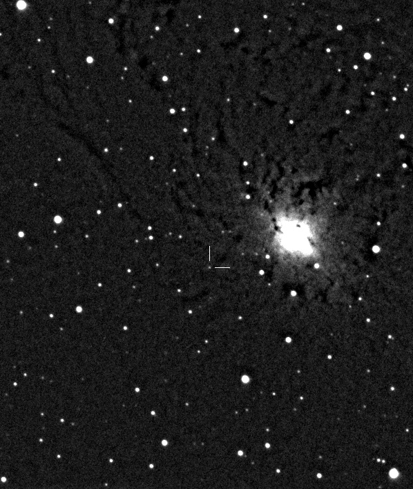 Found in M81 at R.A. = 09h55m48s.63, Decl. = +69°03'11".6 Located 82".9 east and 43".5 south of the center of NGC 3031 (= M81) (Discovery image 1) (Discovery image 2) Mag 21.3 (20.9), Type Extragalactic Nova (References: CBAT M81 page)  |