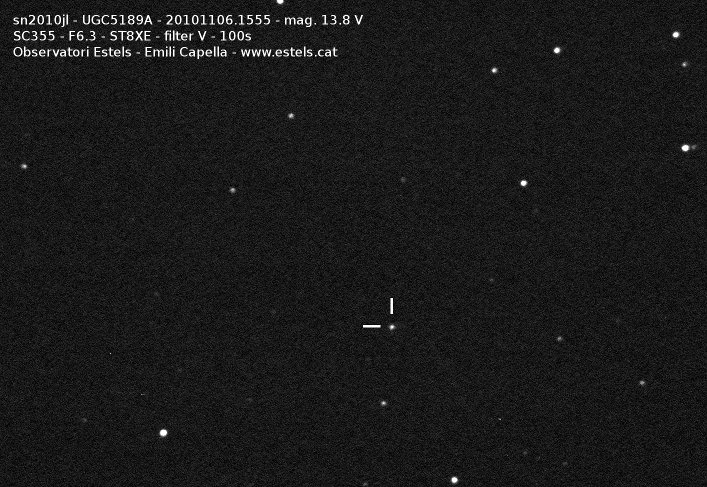 This page is devoted to information on Supernova 2010jl in UGC 5189A. Basic information on this SN, including the last reported brightness, on this Supernova can be found on the main page. Information on the original web pages for many of these images can be found on the updates and links web pages.