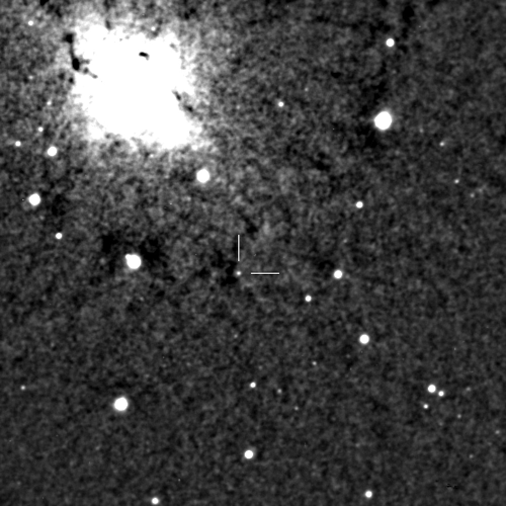 Found in M31 at R.A. = 00h43m43s.95, Decl. = +41°28'50".5 Located 707" west and 965" north of the center of M31 (Discovery image) Mag 19.2**, Type hot pixel  |