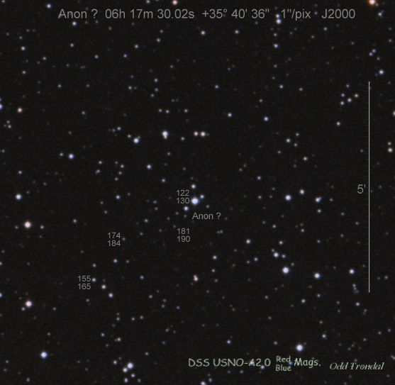 Found in an anonymous galaxy at R.A. = 06h17m30s.02, Decl. = +35°40'36".5 Located 0" east and 4" south of the center of the host galaxy (Discovery image) (Jordi Camarasa image) (Joseph Brimacombe image) (Paolo Corelli image) (William Wiethoff image) (Joseph Brimacombe image) Mag 17.3:1/14 (14.5:12/28), Type CV (References: ATEL 3869)  |