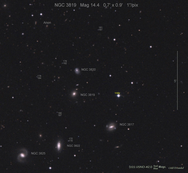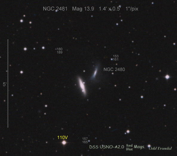 Found in NGC 2481 at R.A. = 07h57m11s.24, Decl. = +23°45'08".5 (= UGC 4118) Located 34" west and 56" south of the center of NGC 2481 (Discovery image) Mag 18.9, Type minor planet (2011 AZ70)  |