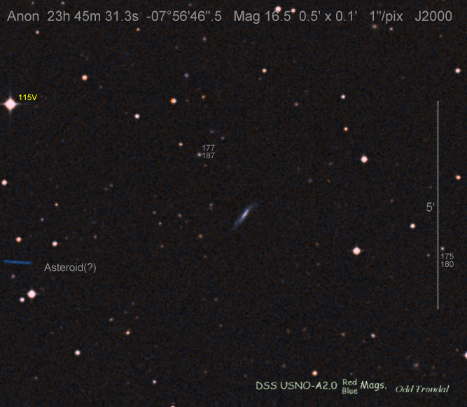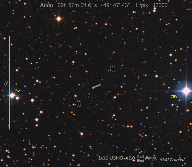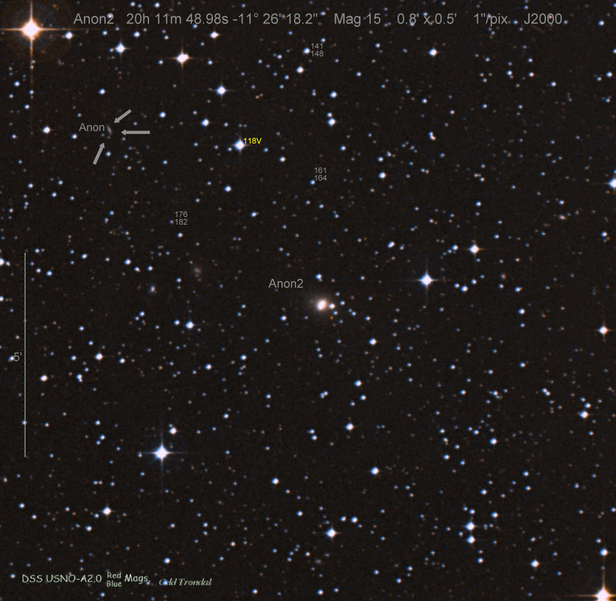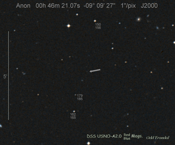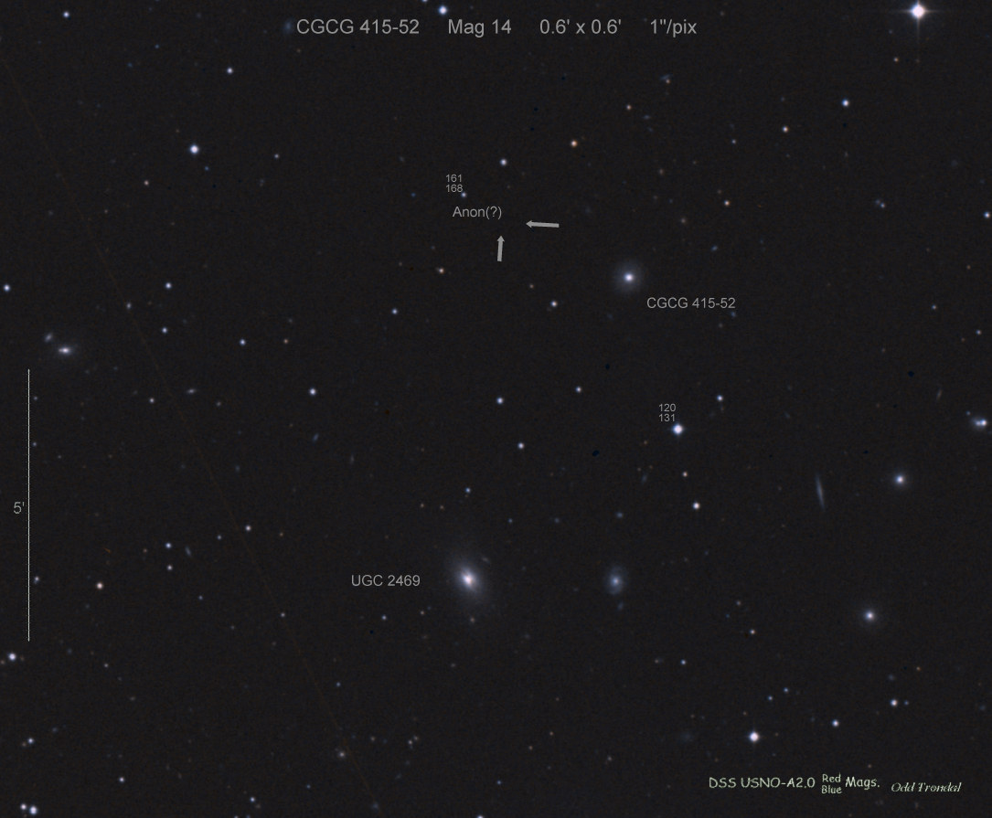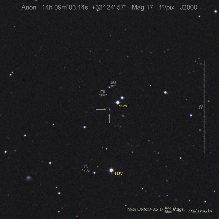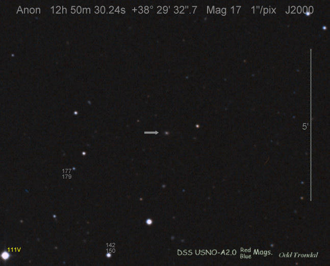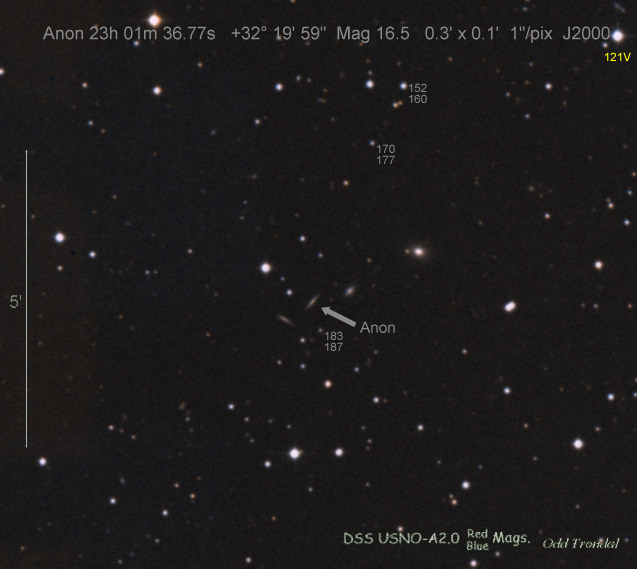 Found in IC 1748 at R.A. = 01h56m07s.19, Decl. = +17°38'46".8 Located 22" west and 16" north the center of IC 1748 (Discovery image) (Stan Howerton image) (Markku Nissinen & Veli-Pekka Hentunen image) (Joseph Brimacombe image) (Joseph Brimacombe image) (Andy Cason image) (Marc Serrau image) (Robert Koff image) Mag 18.5**, Type unknown  |