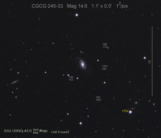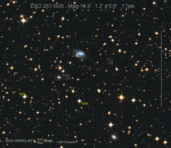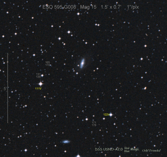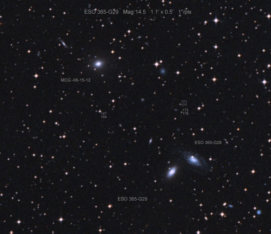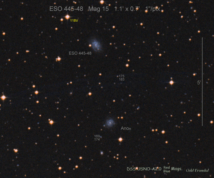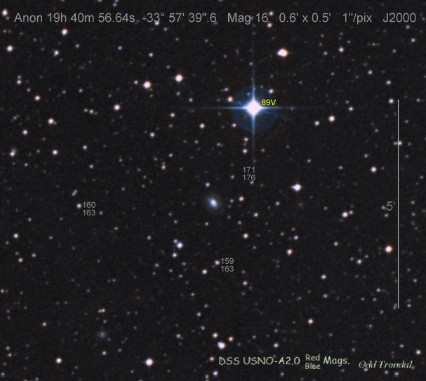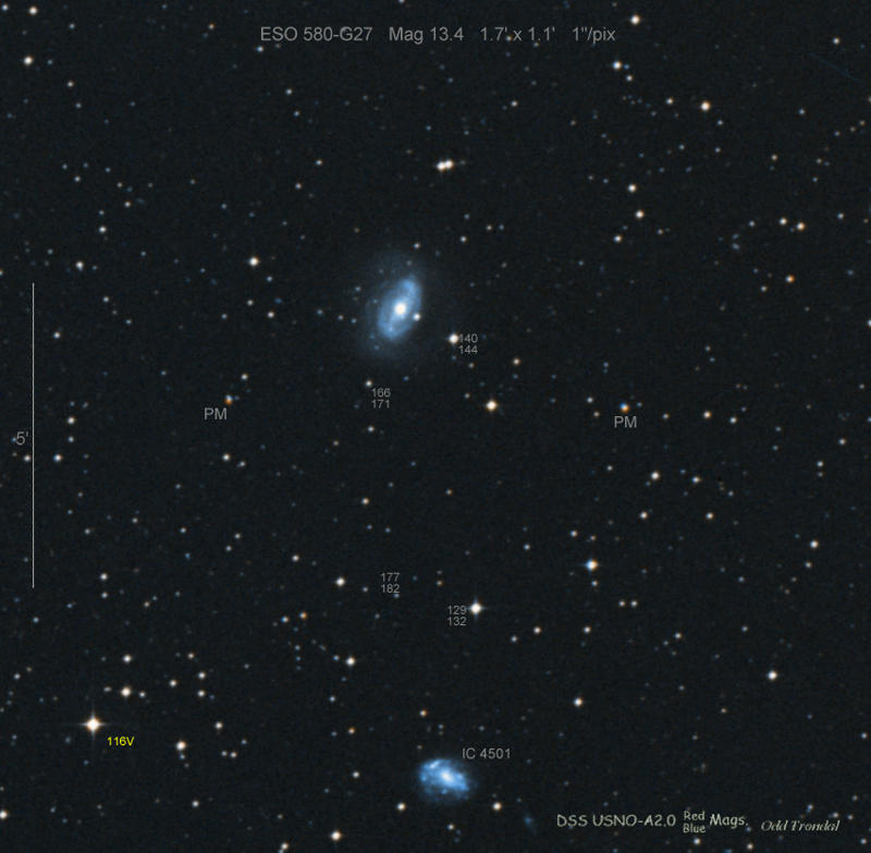 Found in ESO 310-6 at R.A. = 07h16m34s.08, Decl. = -38°29'03".7 Located 12" west and 11" north of the center of ESO 310-6 (Discovery image (Discovery page)) (Joseph Brimacombe image) Mag 16.8:11/23, Type Ib (References: CBAT TOCP)  |