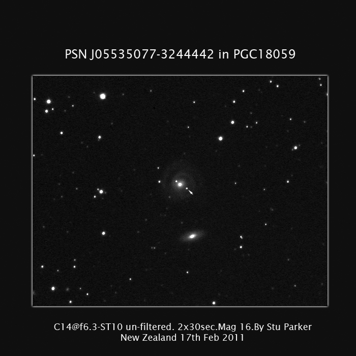 Found in UGC 2498 at R.A. = 03h02m14s.53, Decl. = +17°20'58".3 Located 34".4 east and 14".8 north the center of UGC 2498 (Discovery image) (Stan Howerton image) (Joseph Brimacombe image) (LOSS image) (Joseph Brimacombe image) (Martin Mobberley image (mirror)) (Ivan Curtis image) (Marc Serrau image) (Marc Serrau image) (Joel Nicolas image) Mag 18.1 (17.3), Type IIb  |