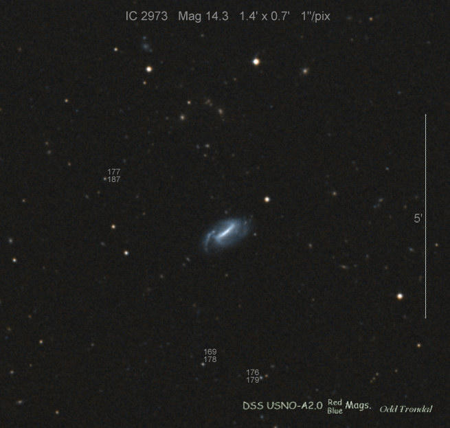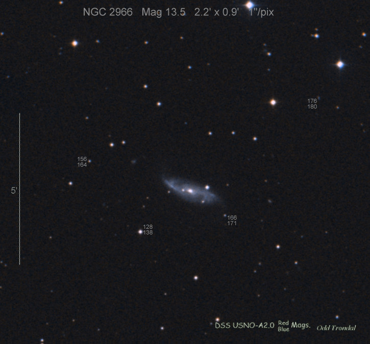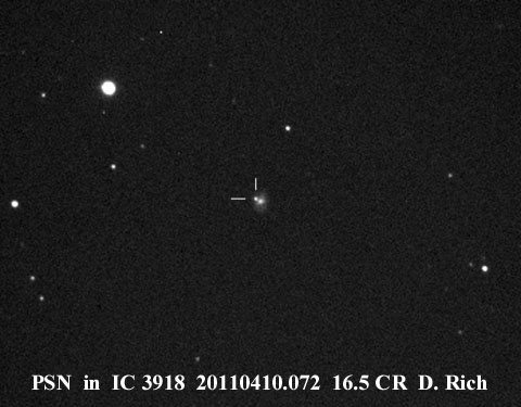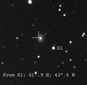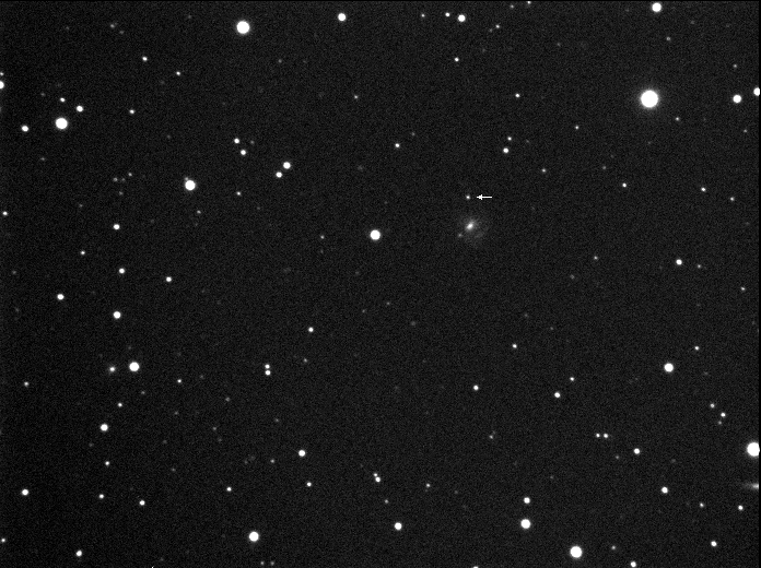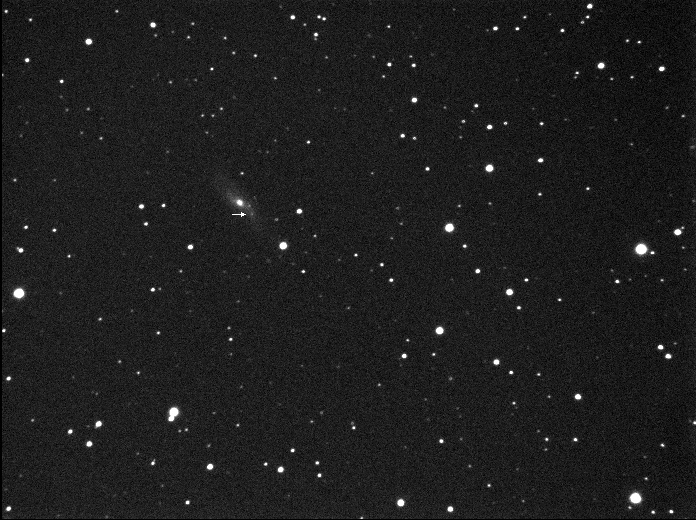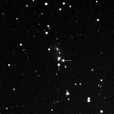 Found in NGC 2966 at R.A. = 09h42m11s.35, Decl. = +04°40'23".1 Located 1".8 west and 0".6 south of the center of NGC 2966 (Joseph Brimacombe image) (Joseph Brimacombe image) Mag 16.1:11/10, Type II (References: CBAT TOCP)  |