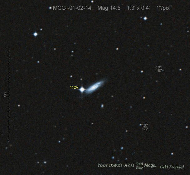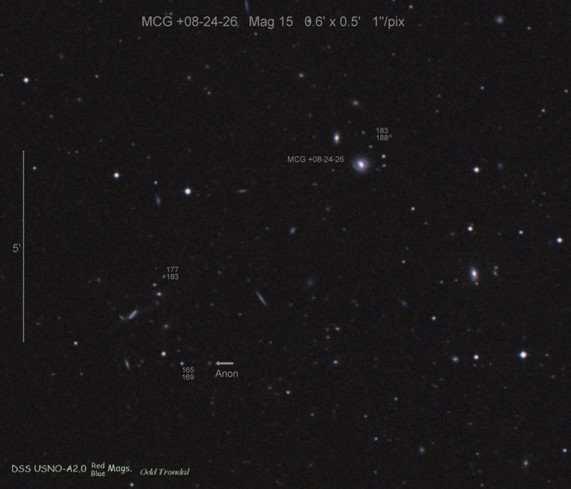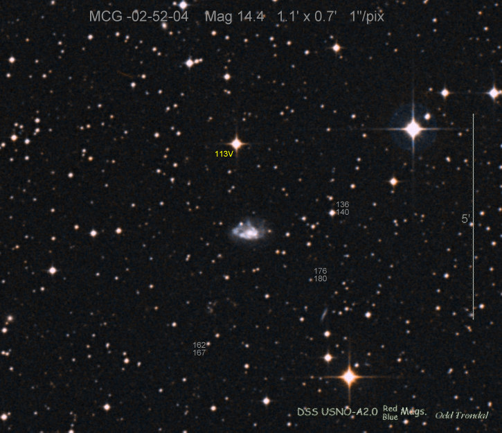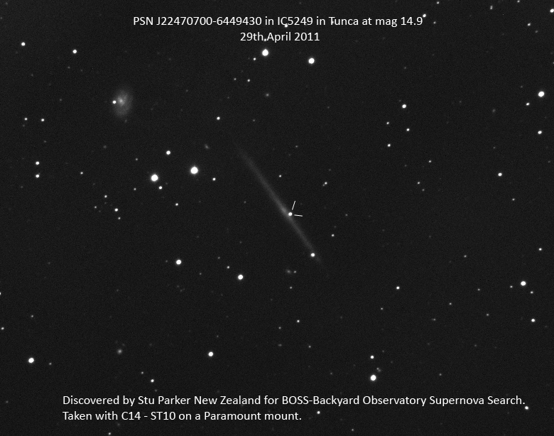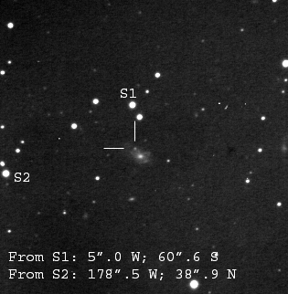 Found in MCG -1-2-14 at R.A. = 00h26m19s.23, Decl. = -04°29'42".4 Located 28".1 east and 11".2 south of the center of MCG -01-2-14 (Discovery image) (Joseph Brimacombe image) (JM Llapasset image) (Stan Howerton image) (Diego Rodríguez image) (JM Llapasset image) Mag 14.8**, Type II  |