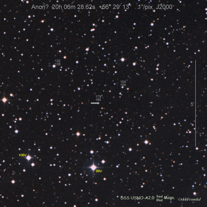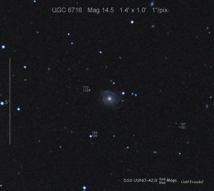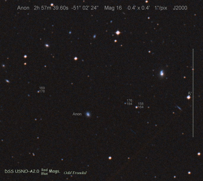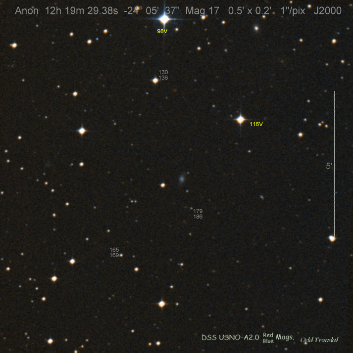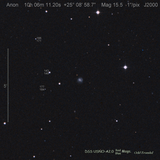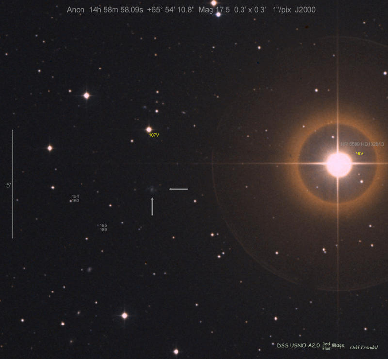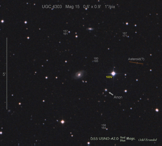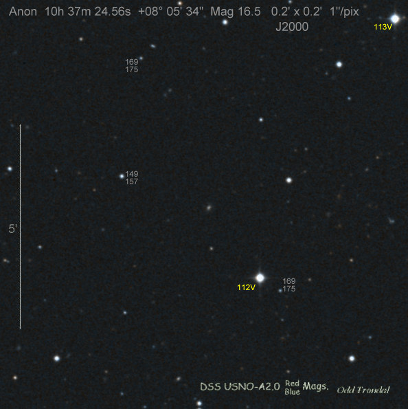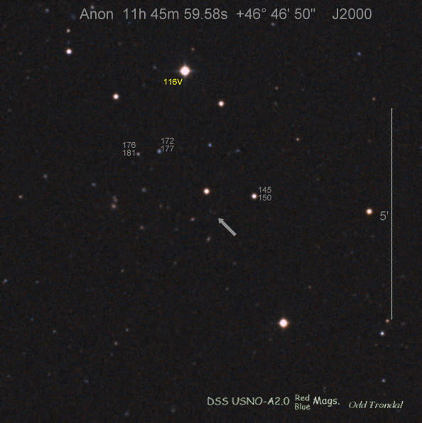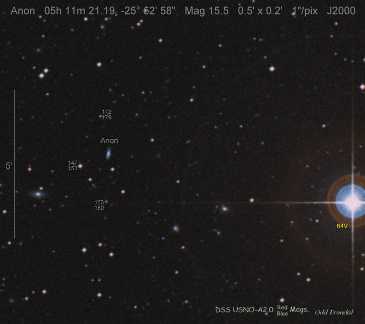 Found in an anonymous galaxy at R.A. = 06h47m38s.81, Decl. = +45°57'42".5 Located 0" west and 0" north of the center of the anonymous galaxy (Discovery image) (Joseph Brimacombe image) (Thomas Langhans image) Mag > 20.2 (15.2:11/4), Type unknown  |