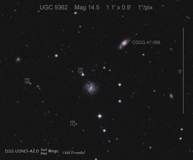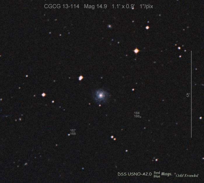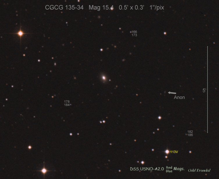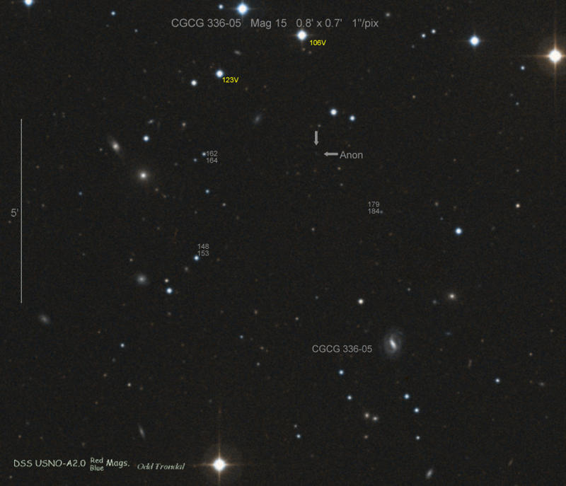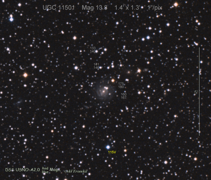 Found in UGC 323 at R.A. = 00h32m51s.24, Decl. = +11°44'07".5 Located 12".0 east and 4".8 south of the center of UGC 323 (Discovery image) (Joseph Brimacombe image) (Joseph Brimacombe image) Mag 18.6, Type II  |