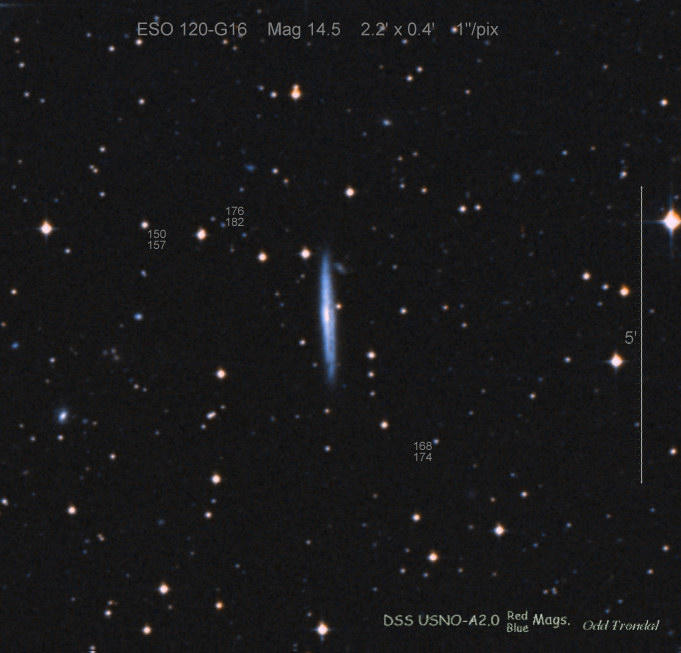 Found in ESO 120-16 at R.A. = 05h51m35s.18, Decl. = -59°02'51".3 Located 0".6 west and 7".4 south of the center of ESO 120-16 (Discovery image (Discovery page)) (Joseph Brimacombe image) (Ivan Curtis image) Mag 16.5**, Type Ic  |