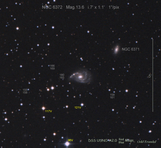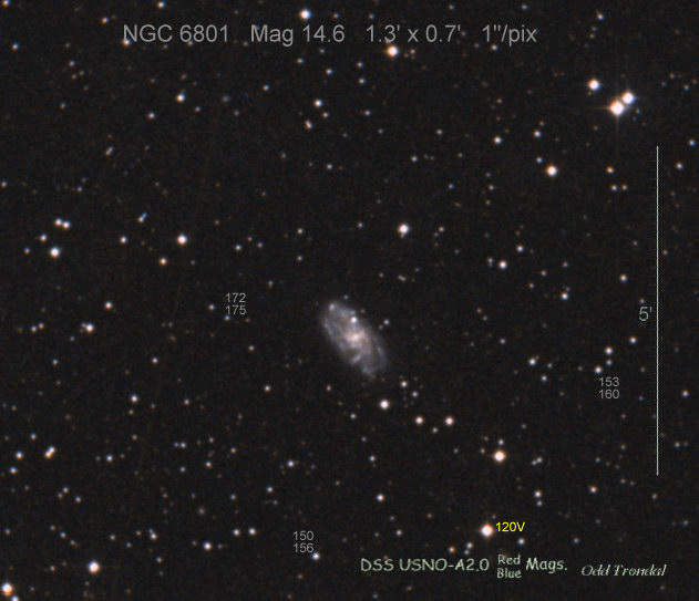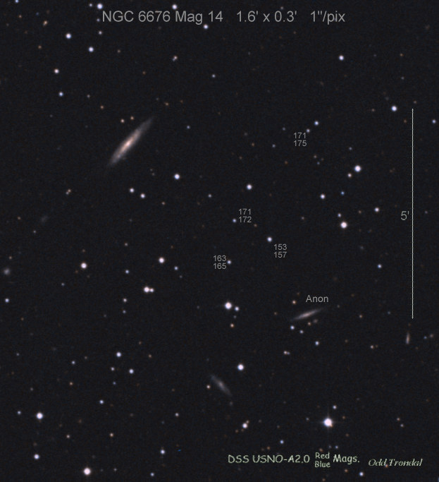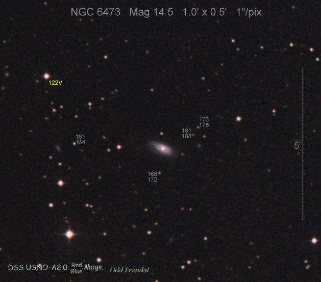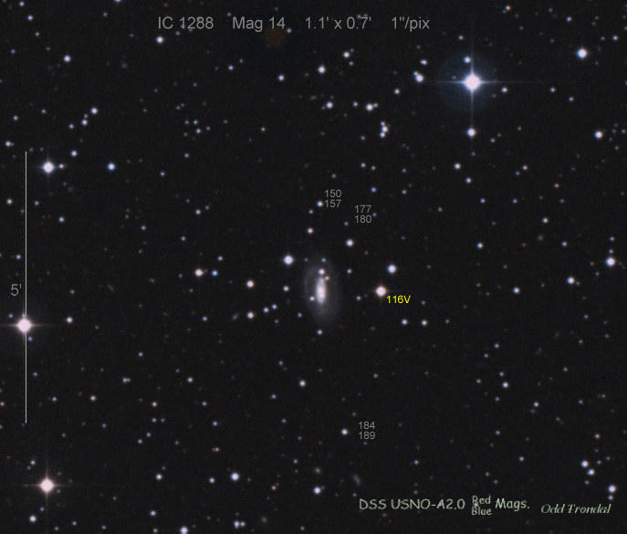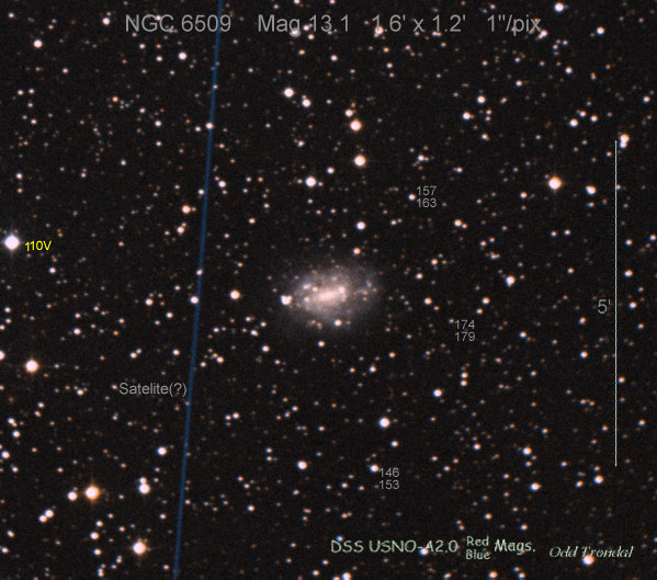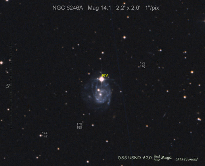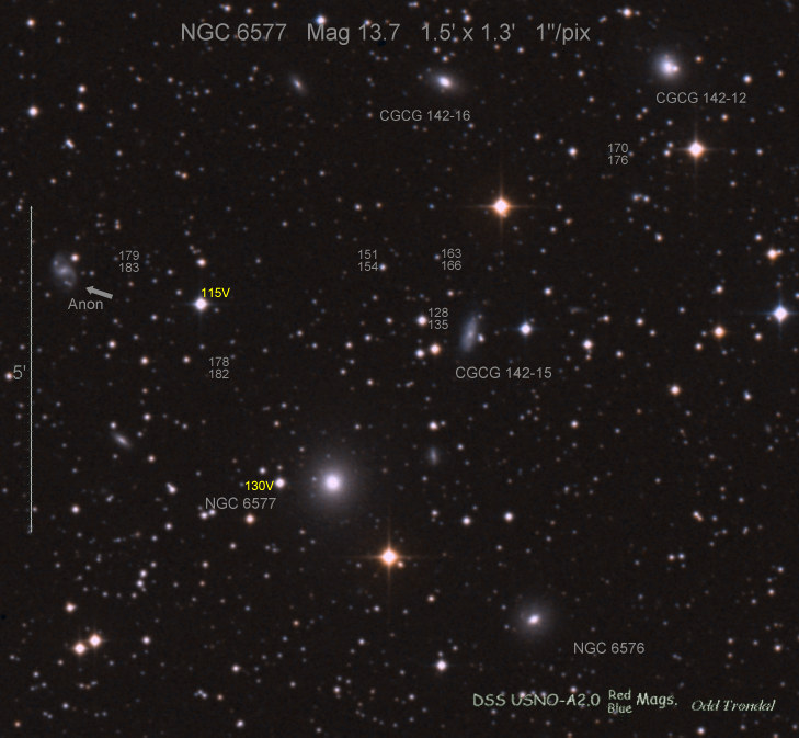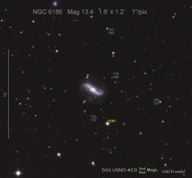 Found in NGC 6350 at R.A. = 17h18m43s.77, Decl. = +41°41'10".0 Located 17" east and 30" south of the center of NGC 6350 (Discovery image) (Giancarlo Cortini image) (Joseph Brimacombe image) (Stan Howerton image) Mag 19.7:11/23 (18.2:11/17), Type unknown (References: SN 2010je)  |