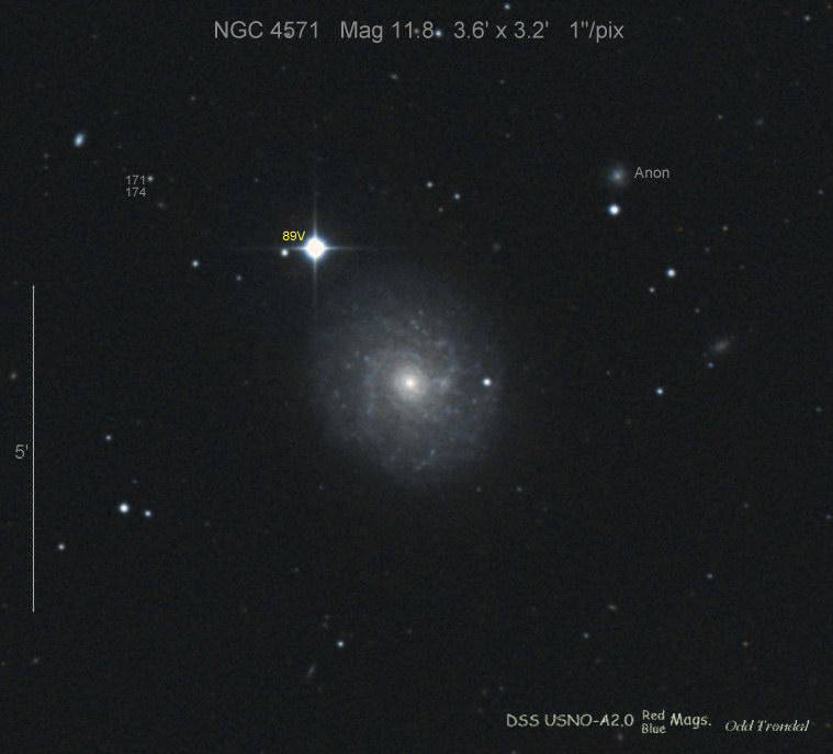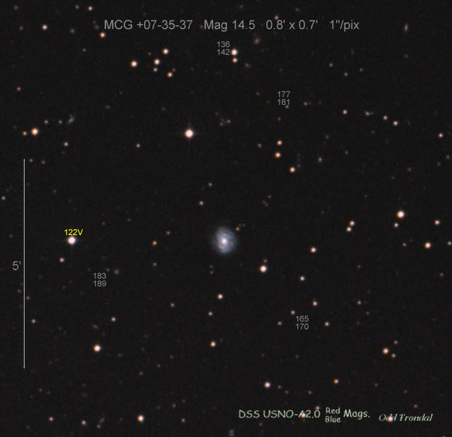 Found in UGC 7799 at R.A. = 12h37m57s.35, Decl. = +34°01'09".0 Located 20".1 east and 10".2 south of the center of UGC 7799 (Discovery image) (Joseph Brimacombe image) Mag 18.9, Type II (References: SN 2008aa)  |