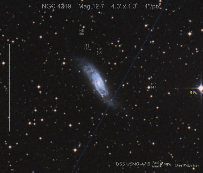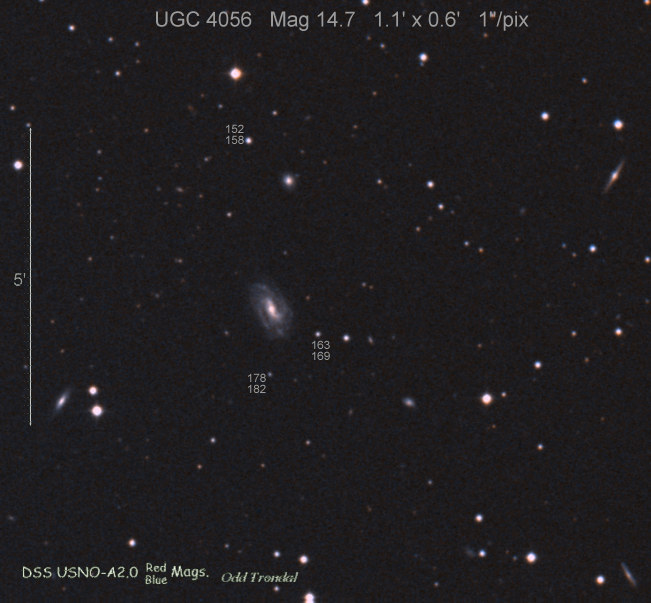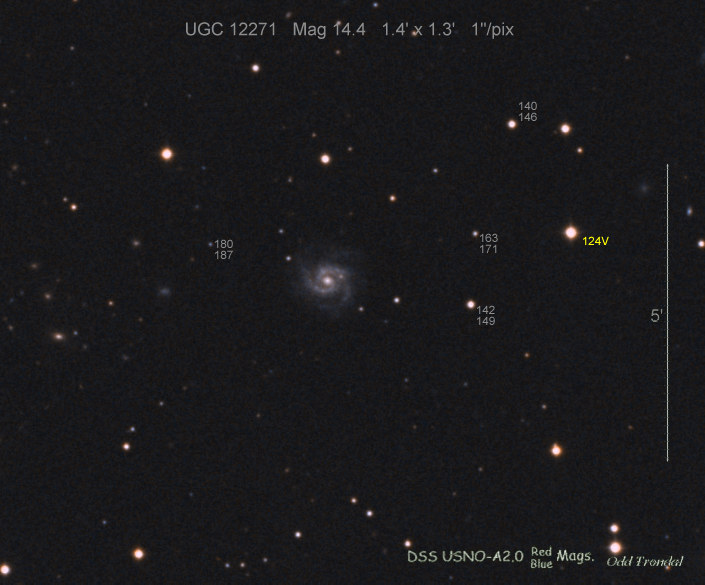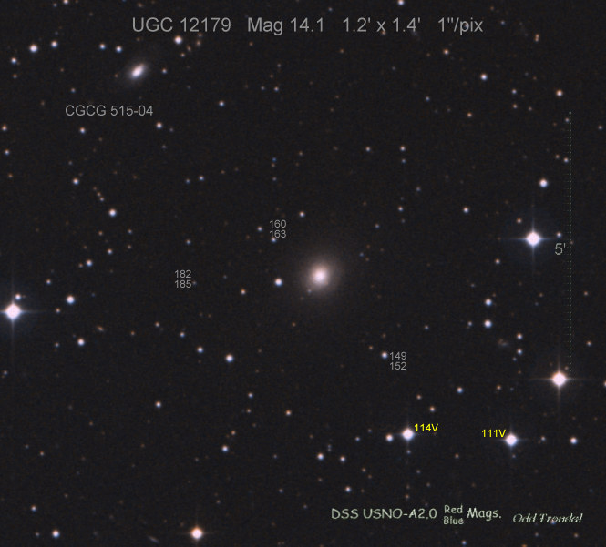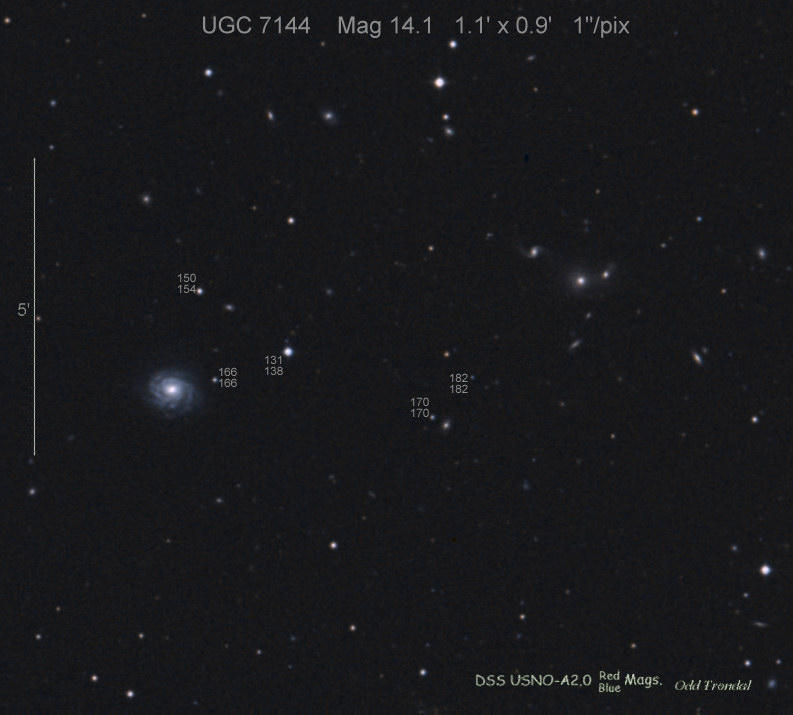 Found in UGC 7144 at R.A. = 12h09m41s.81, Decl. = +56°31'11".4 Located 28".3 west and 13".0 south of the center of UGC 7144 (Discovery image) (Joseph Brimacombe image) Mag 19.1 (18.7), Type Ia  |