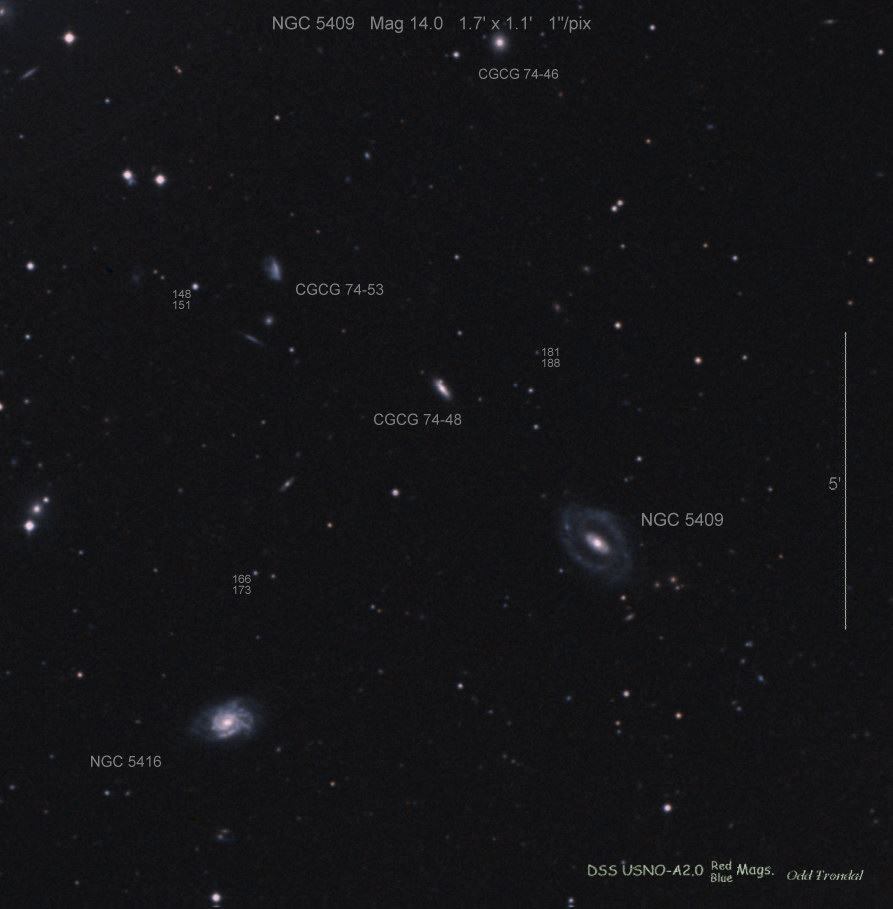 Found in NGC 5409 at R.A. = 14h01m47s.20, Decl. = +09°29'45".36 Located 16" east and 24" north of the center of NGC 5409 (Discovery image) (Joseph Brimacombe image) (Federica Luppi and Luca Buzzi image) (Alessandro Dimai image) Mag 16.9:11/27 (16.0:11/21), Type Ia (References: CBET 2935 CBAT TOCP)  |