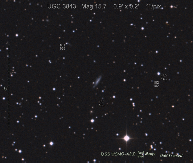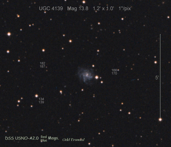 Found in UGC 3843 at R.A. = 07h25m43s.04, Decl. = +20°06'21".7 Located 10".5 west and 13".7 north of the center of UGC 3843 (Discovery image) (Joseph Brimacombe image) Mag 19.2:11/27, Type IIP  |