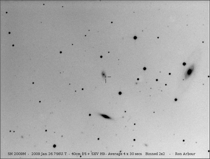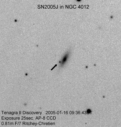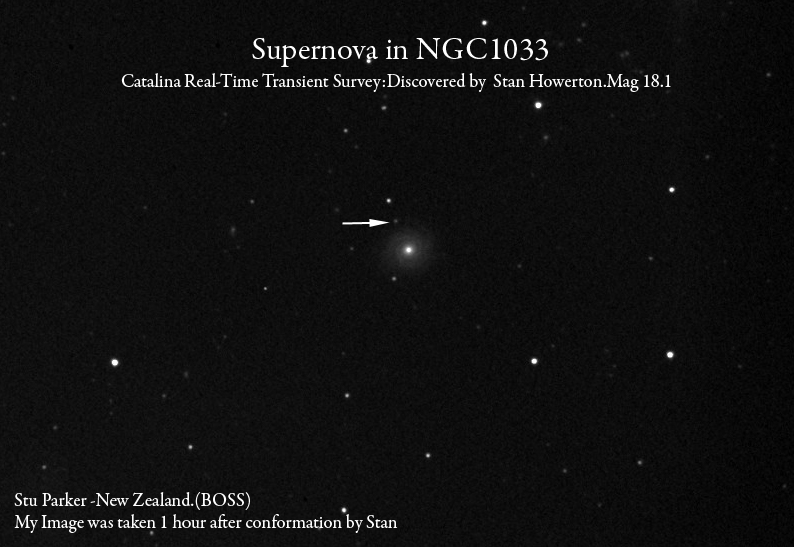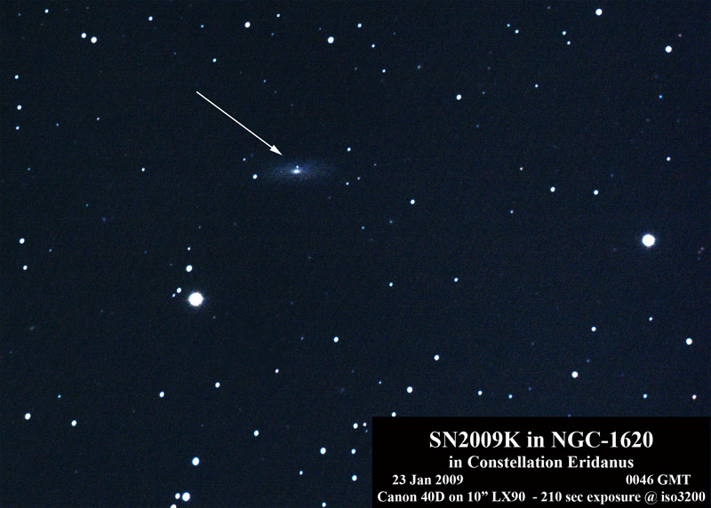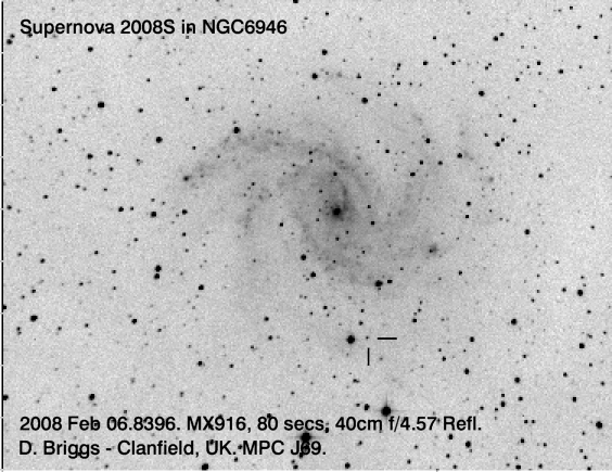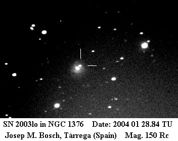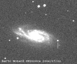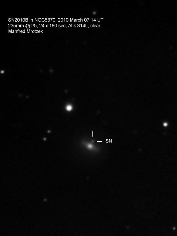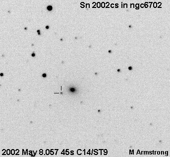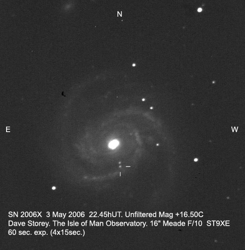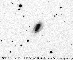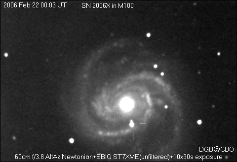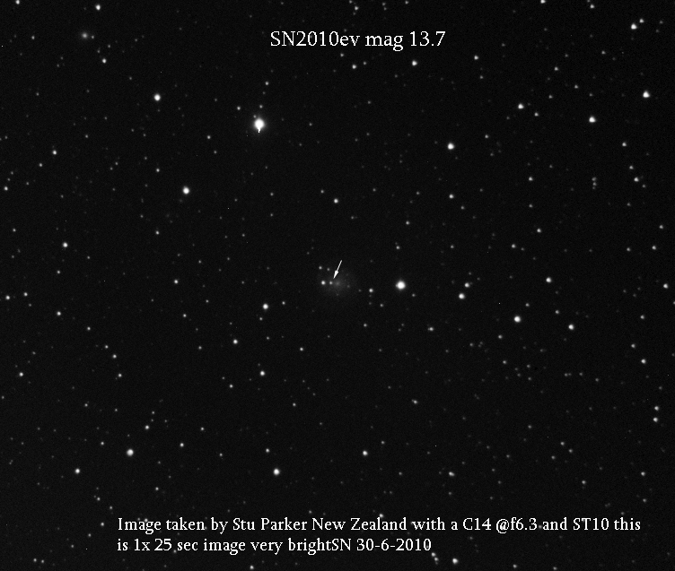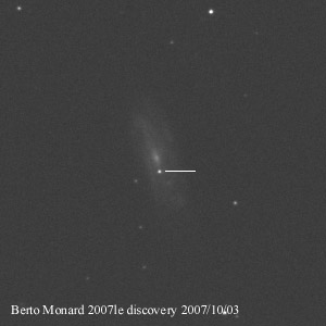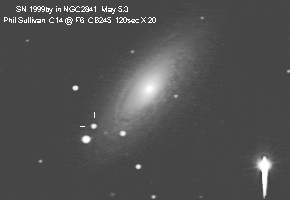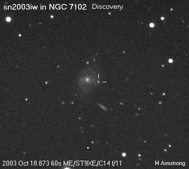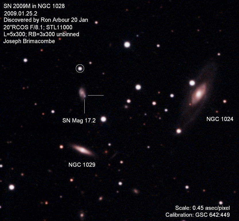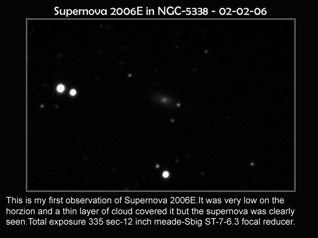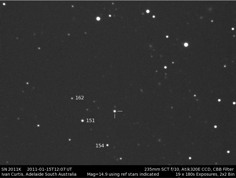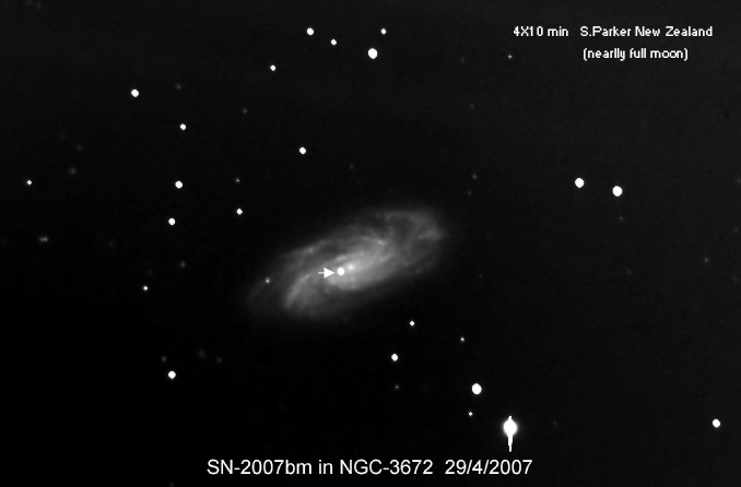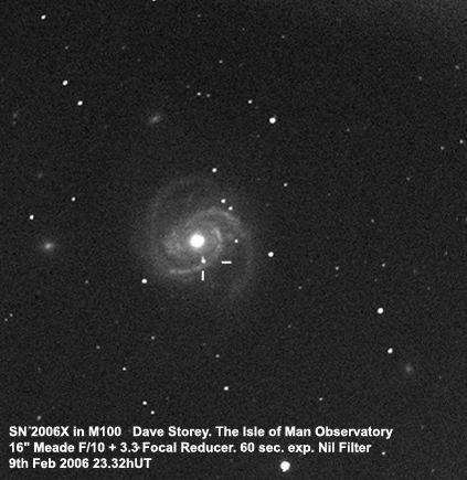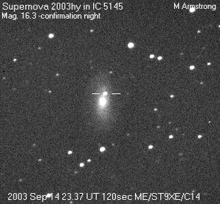 On this web page you will find a list of all the images that have been e-mailed to me for the Bright Supernovae webpages. If an image already exist on a web site, I will usually just create a link to it. However for people who do not have web sites I will accept images which I will then publish on my pages (which I sometimes crop). It should be noted that these images were given to me for use on the web page with the understanding that the copyright remains with the person who originally took them. My thanks to all of the people who donated images. For a list of the best SN images I have found out on the net, please check my Best SN images on the net page.