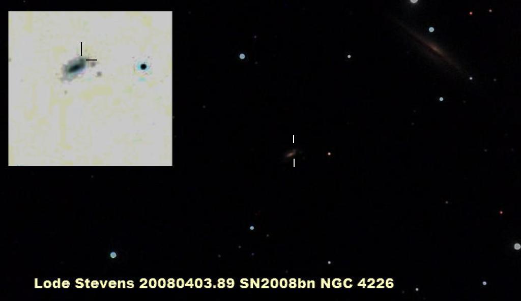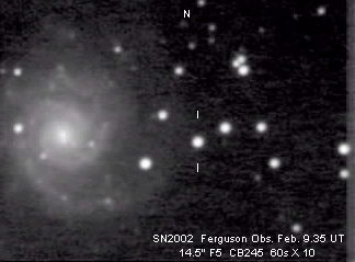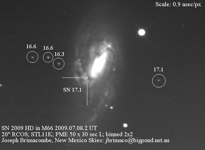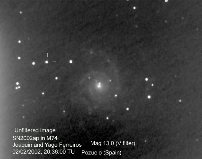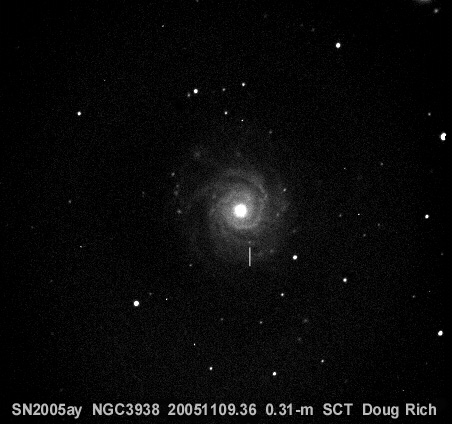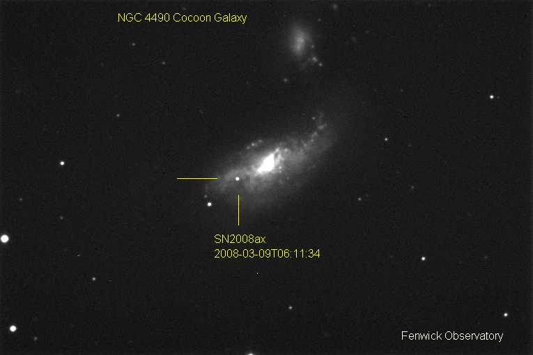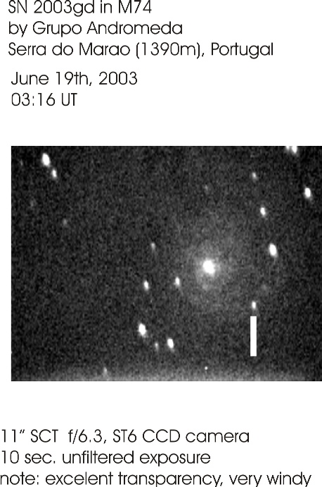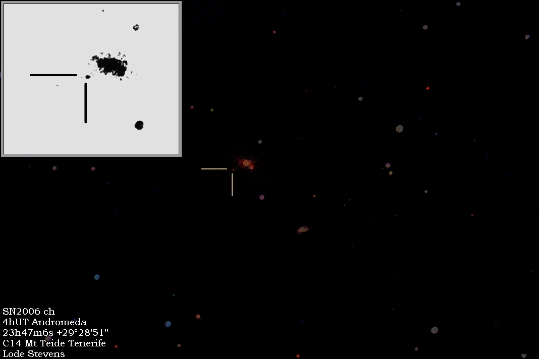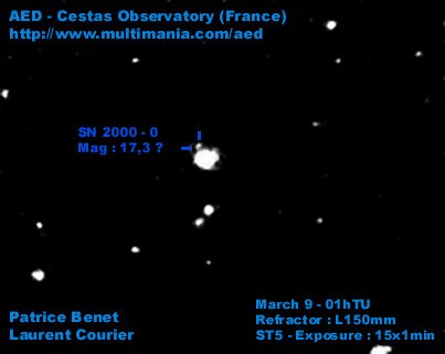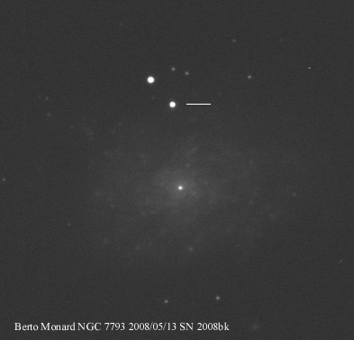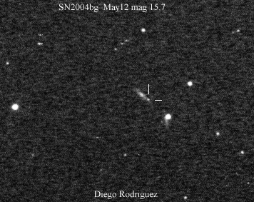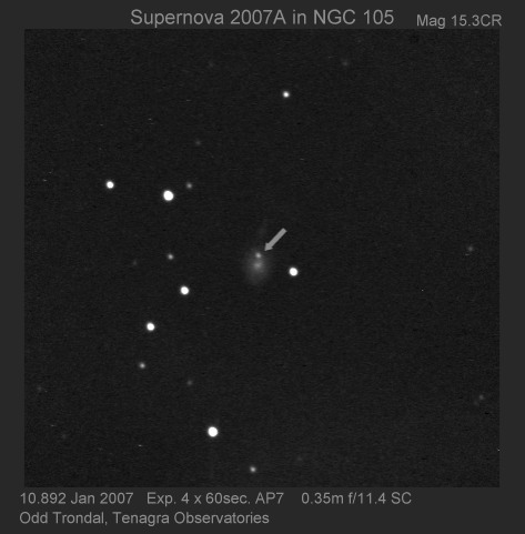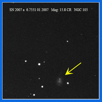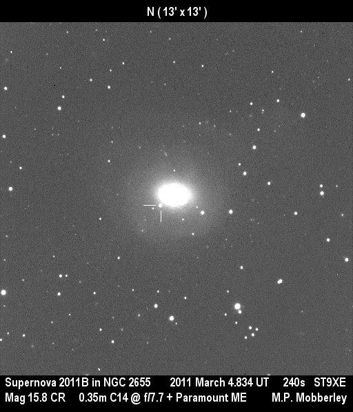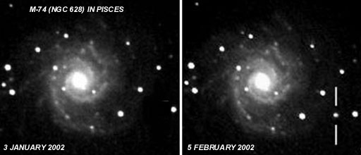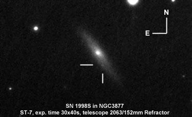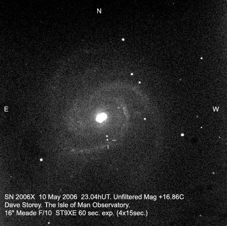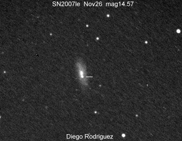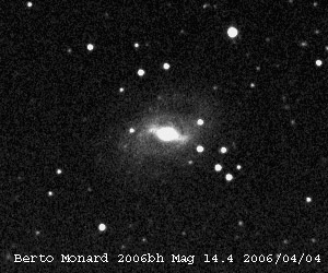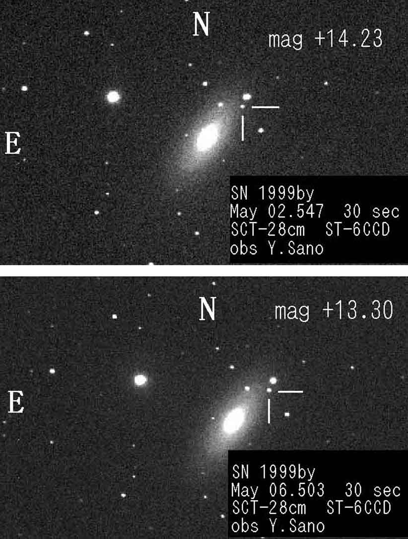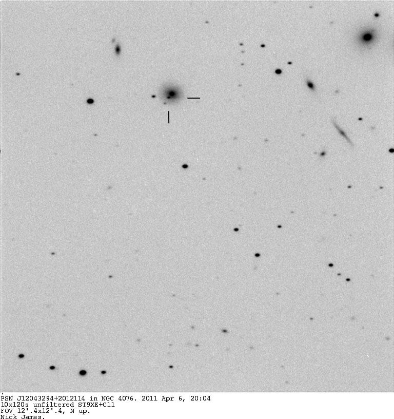 On this web page you will find a list of all the images that have been e-mailed to me for the Bright Supernovae webpages. If an image already exist on a web site, I will usually just create a link to it. However for people who do not have web sites I will accept images which I will then publish on my pages (which I sometimes crop). It should be noted that these images were given to me for use on the web page with the understanding that the copyright remains with the person who originally took them. My thanks to all of the people who donated images. For a list of the best SN images I have found out on the net, please check my Best SN images on the net page.