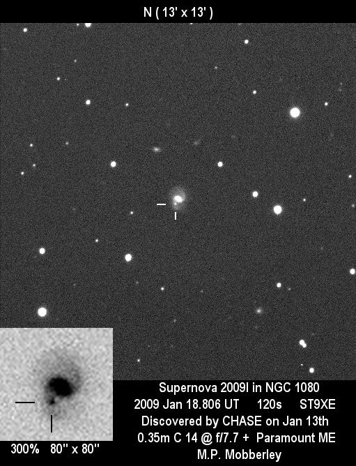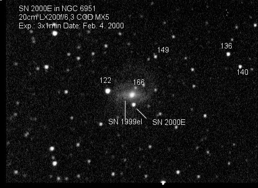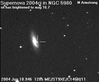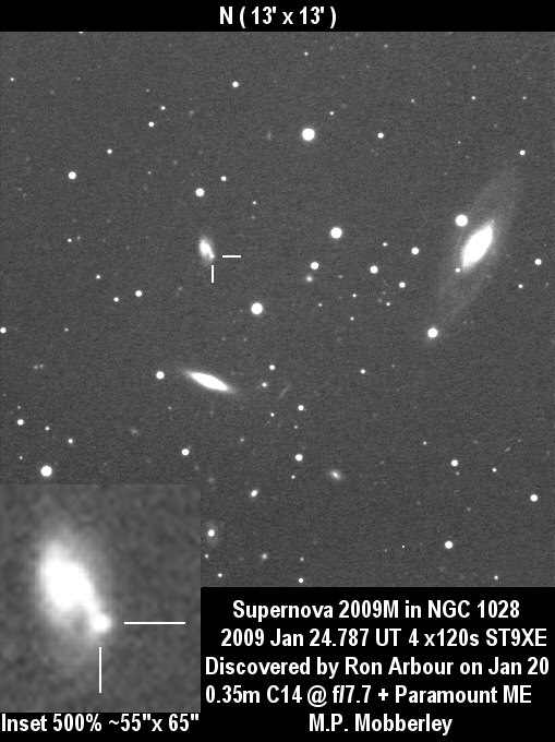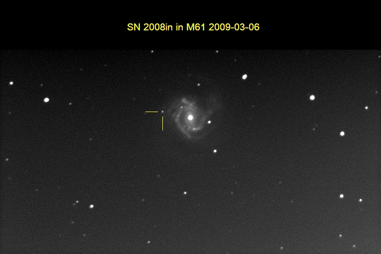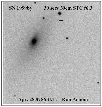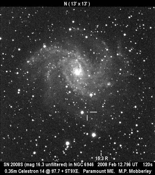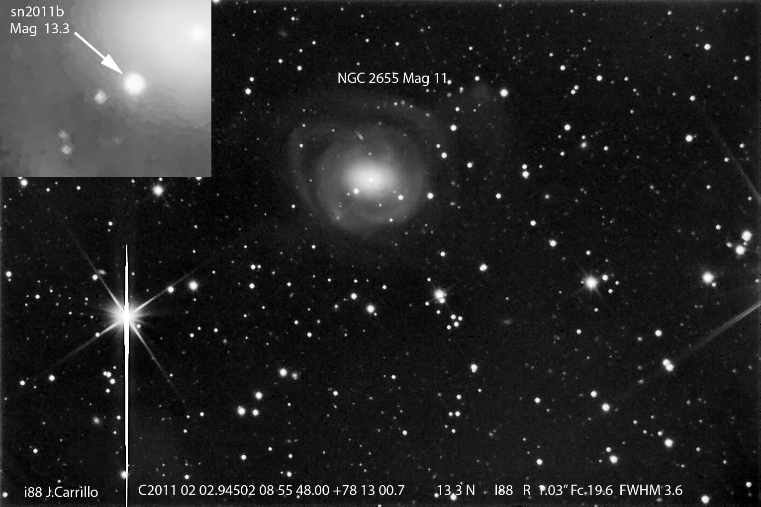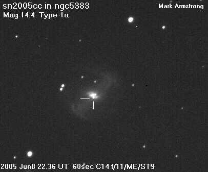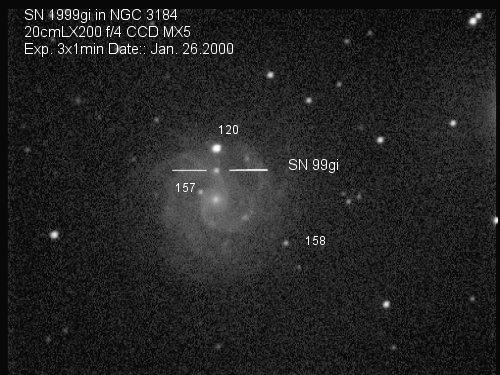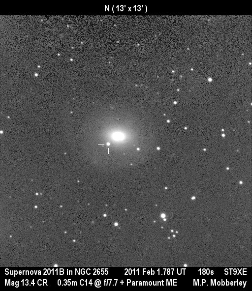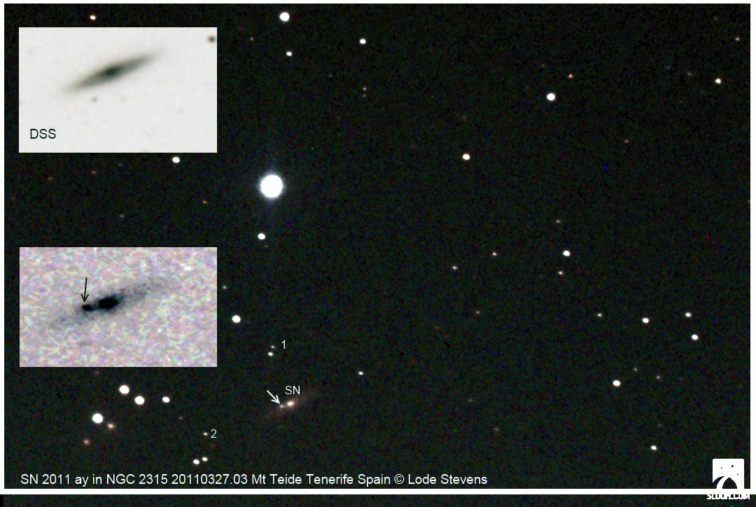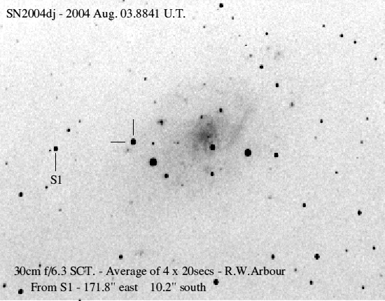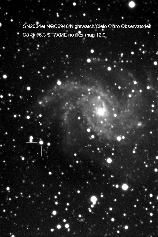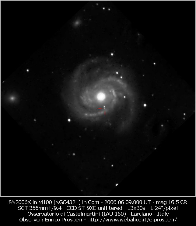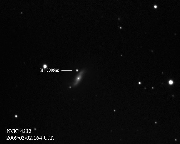 On this web page you will find a list of all the images that have been e-mailed to me for the Bright Supernovae webpages. If an image already exist on a web site, I will usually just create a link to it. However for people who do not have web sites I will accept images which I will then publish on my pages (which I sometimes crop). It should be noted that these images were given to me for use on the web page with the understanding that the copyright remains with the person who originally took them. My thanks to all of the people who donated images. For a list of the best SN images I have found out on the net, please check my Best SN images on the net page.