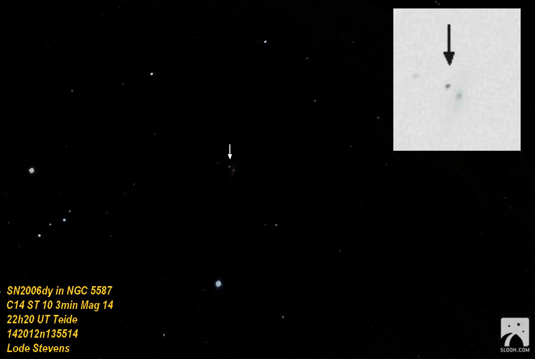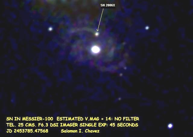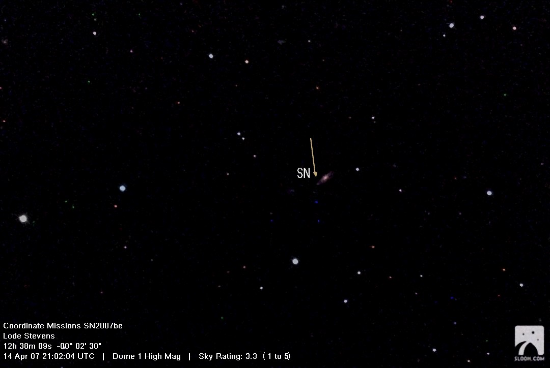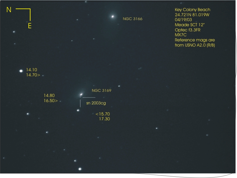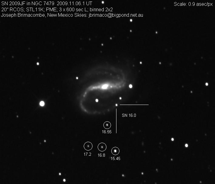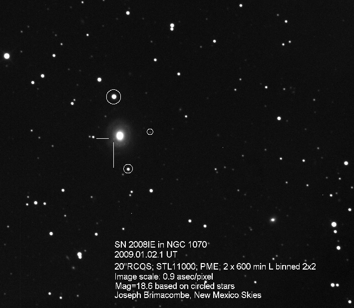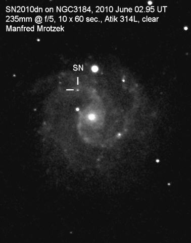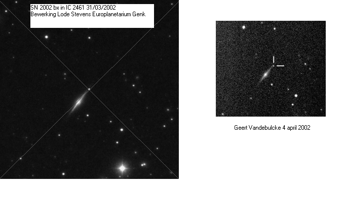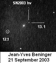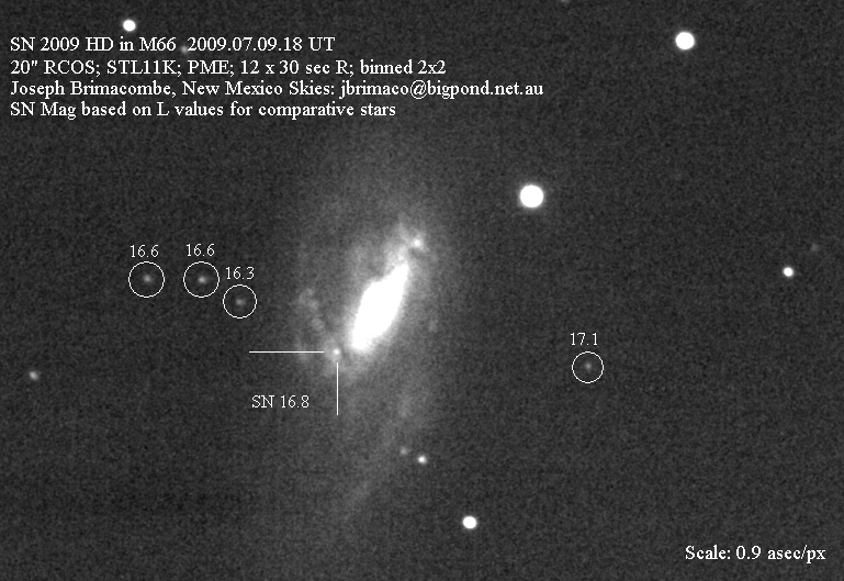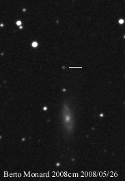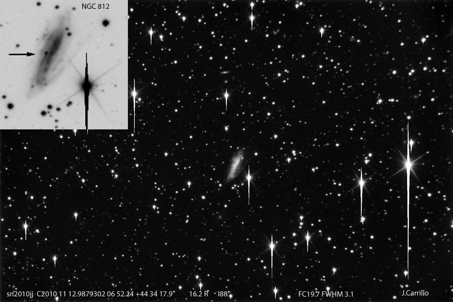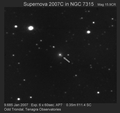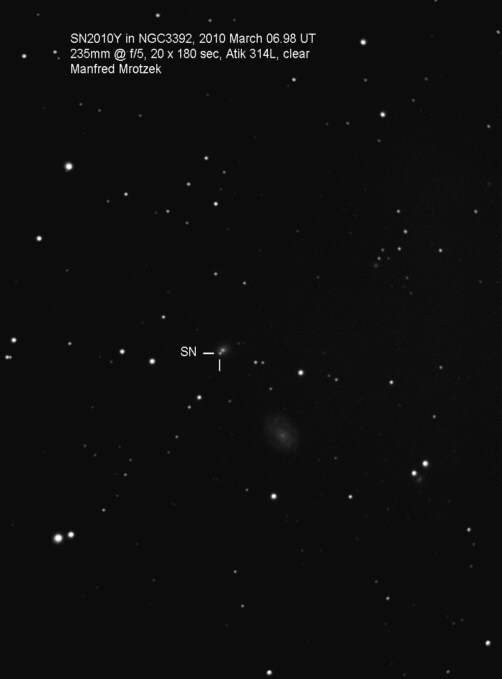 On this web page you will find a list of all the images that have been e-mailed to me for the Bright Supernovae webpages. If an image already exist on a web site, I will usually just create a link to it. However for people who do not have web sites I will accept images which I will then publish on my pages (which I sometimes crop). It should be noted that these images were given to me for use on the web page with the understanding that the copyright remains with the person who originally took them. My thanks to all of the people who donated images. For a list of the best SN images I have found out on the net, please check my Best SN images on the net page.