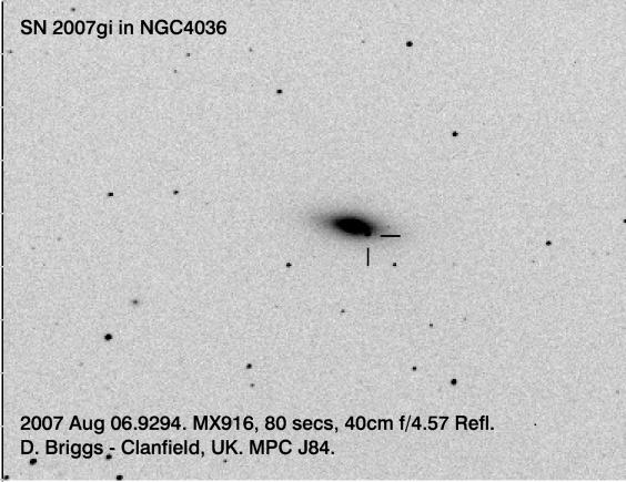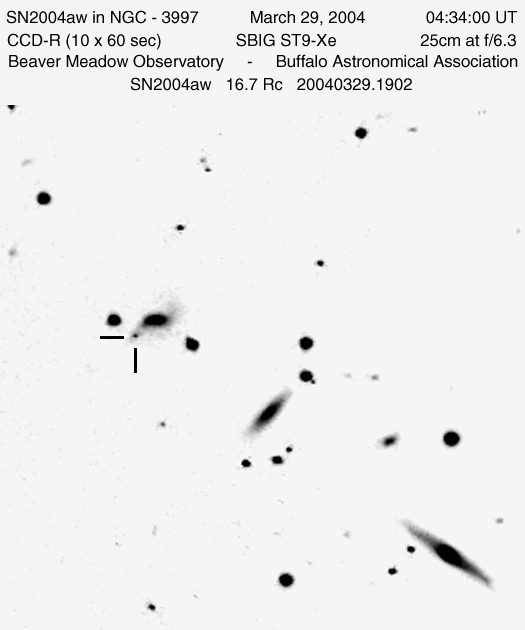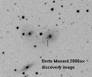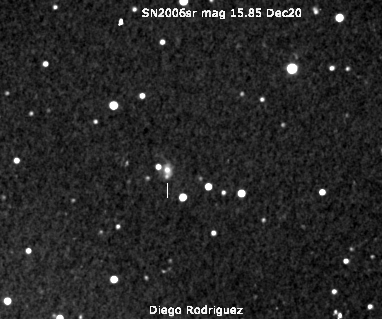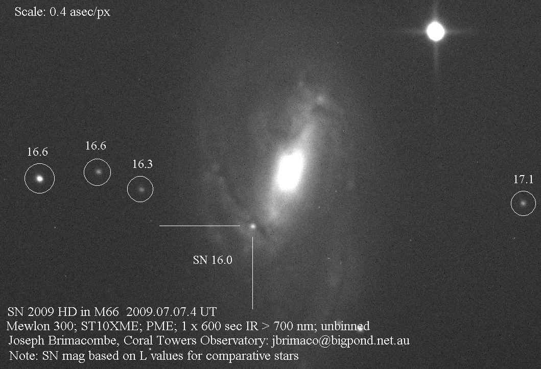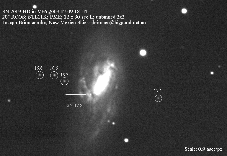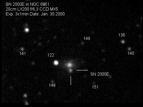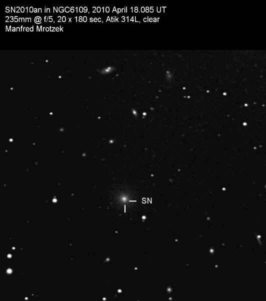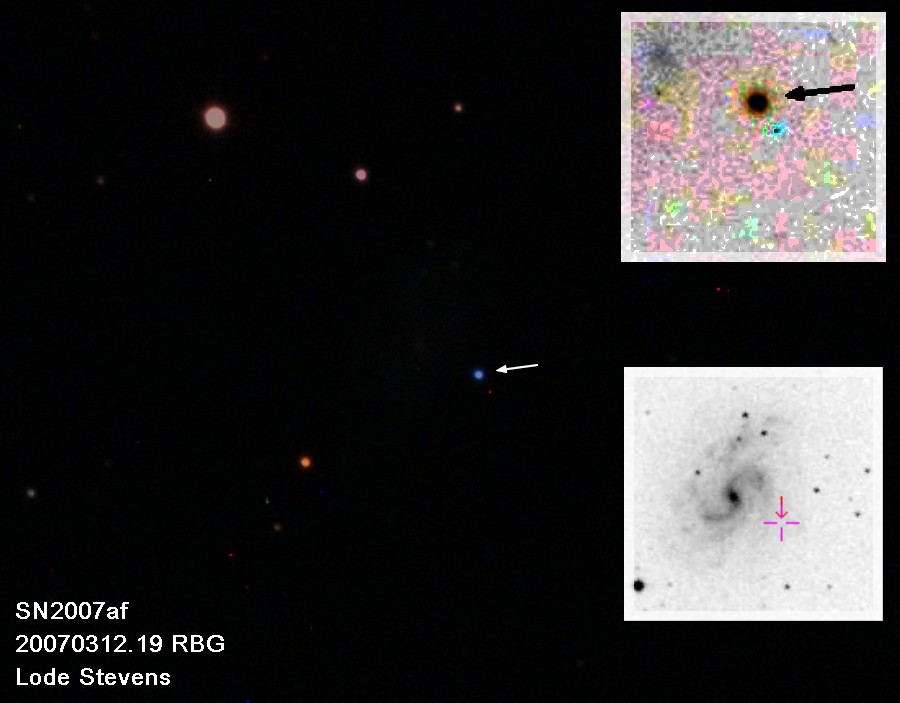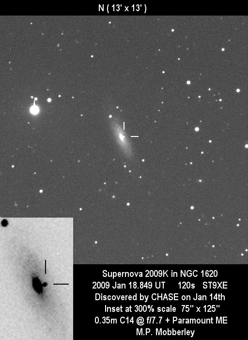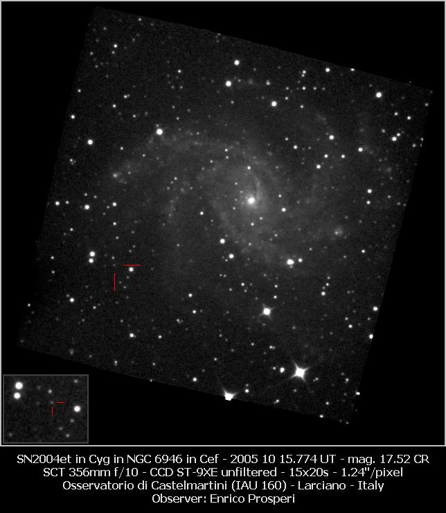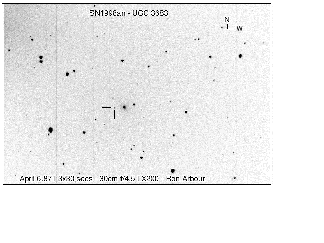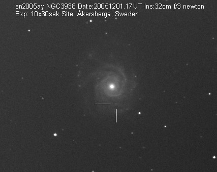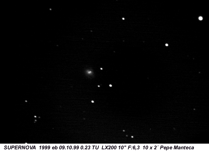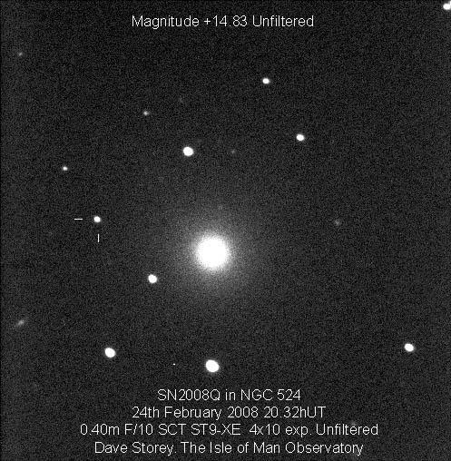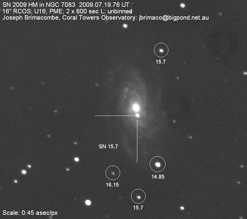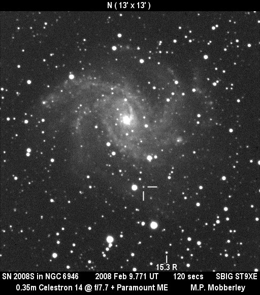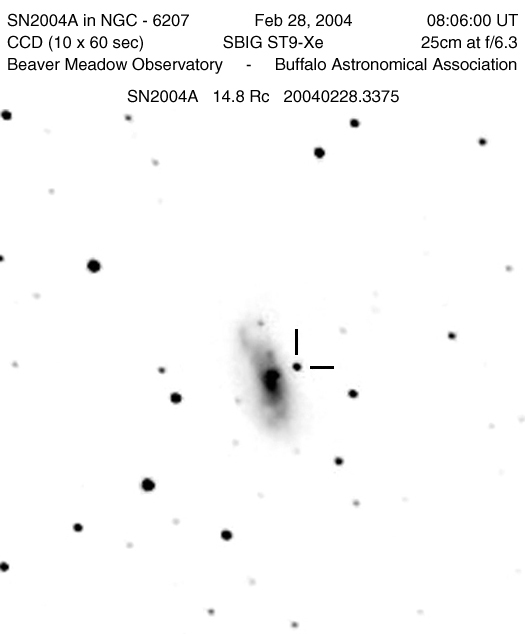 On this web page you will find a list of all the images that have been e-mailed to me for the Bright Supernovae webpages. If an image already exist on a web site, I will usually just create a link to it. However for people who do not have web sites I will accept images which I will then publish on my pages (which I sometimes crop). It should be noted that these images were given to me for use on the web page with the understanding that the copyright remains with the person who originally took them. My thanks to all of the people who donated images. For a list of the best SN images I have found out on the net, please check my Best SN images on the net page.