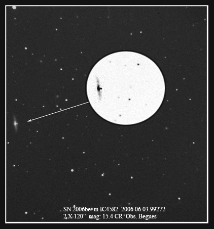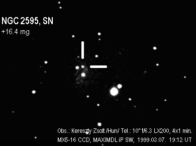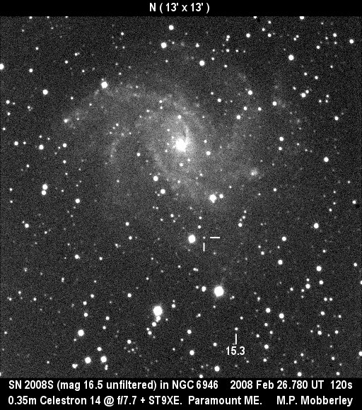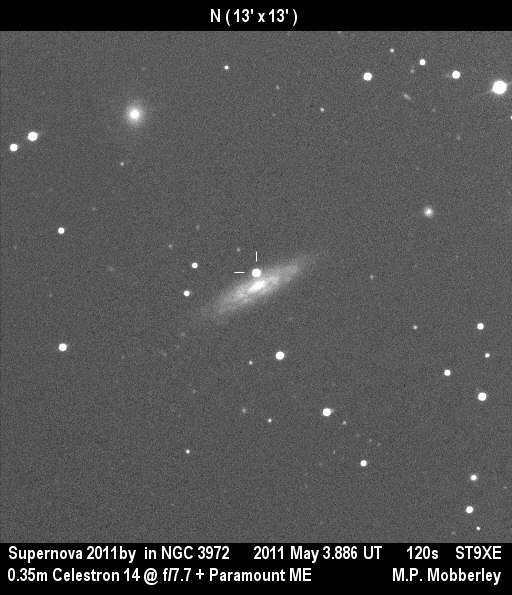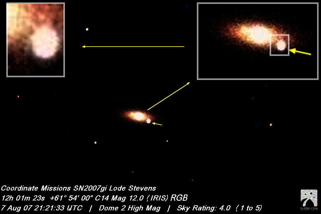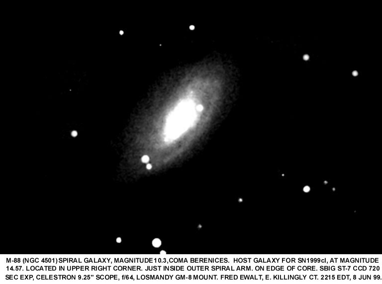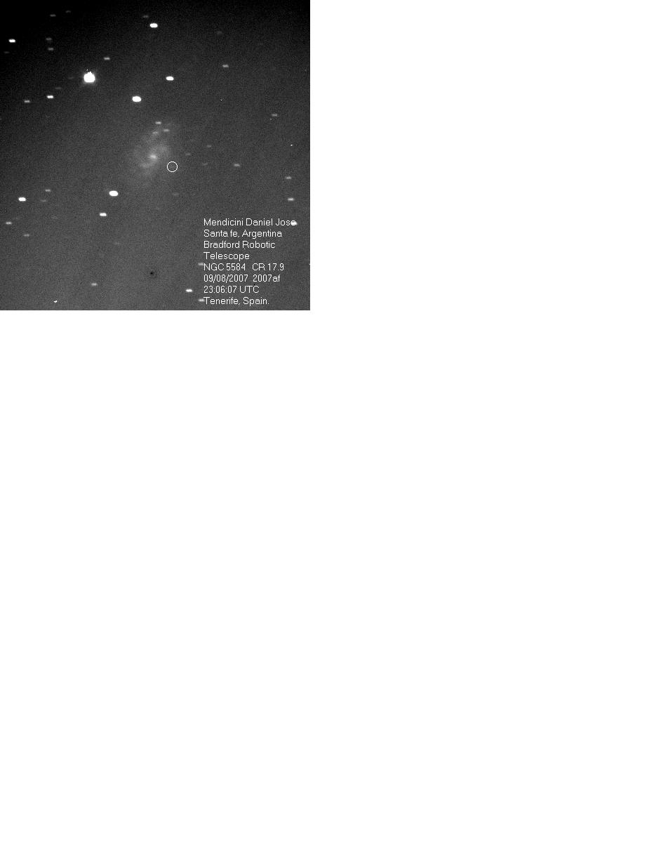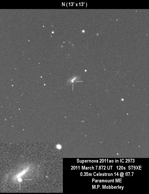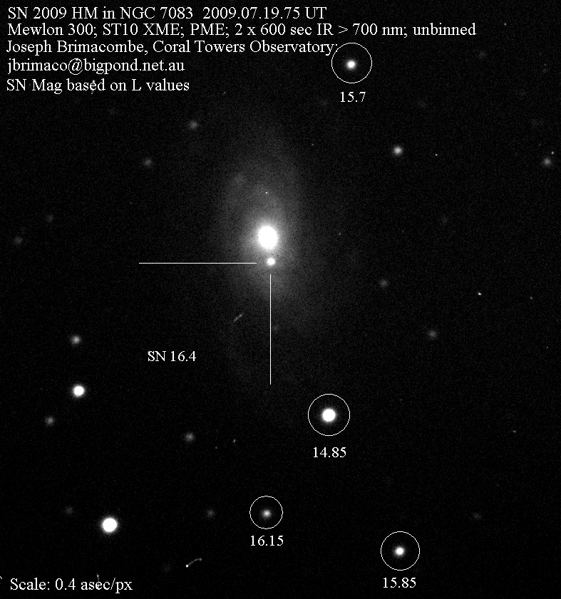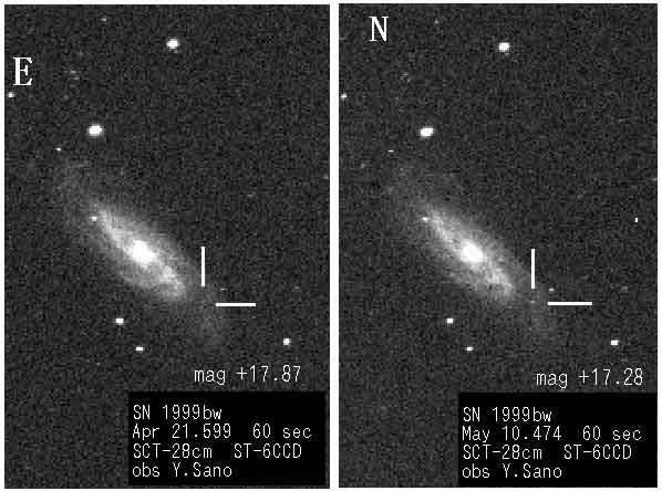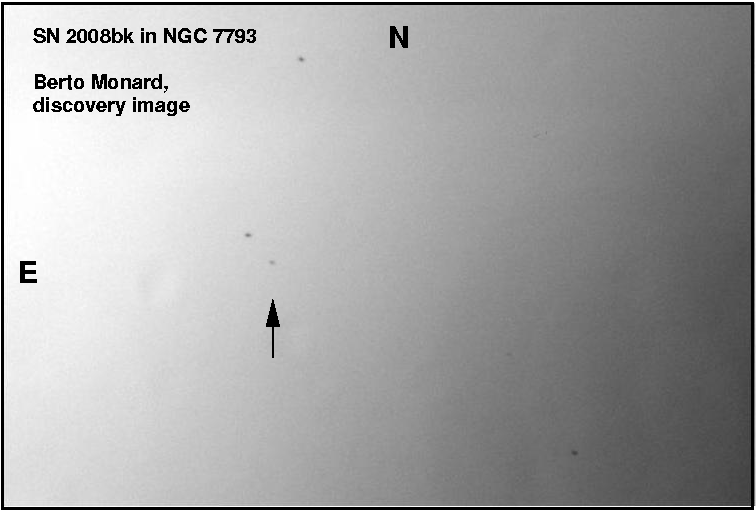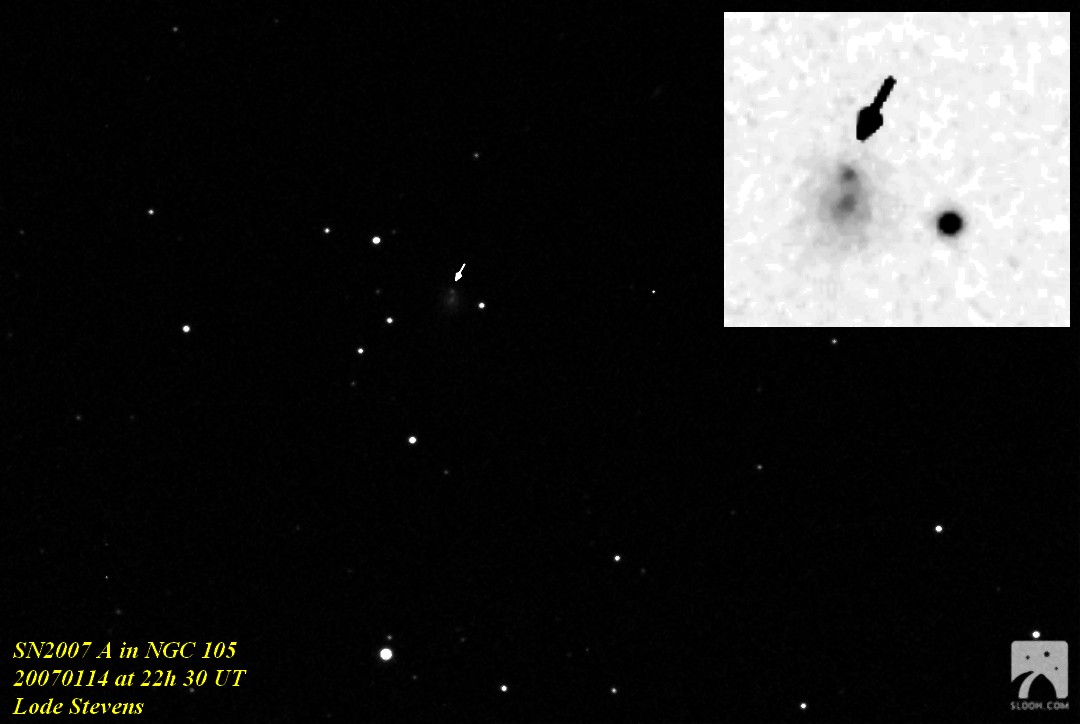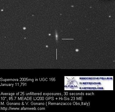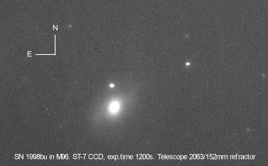 On this web page you will find a list of all the images that have been e-mailed to me for the Bright Supernovae webpages. If an image already exist on a web site, I will usually just create a link to it. However for people who do not have web sites I will accept images which I will then publish on my pages (which I sometimes crop). It should be noted that these images were given to me for use on the web page with the understanding that the copyright remains with the person who originally took them. My thanks to all of the people who donated images. For a list of the best SN images I have found out on the net, please check my Best SN images on the net page.