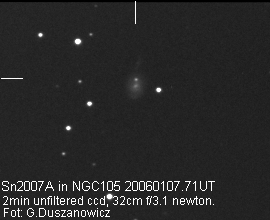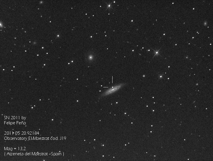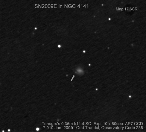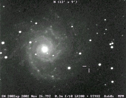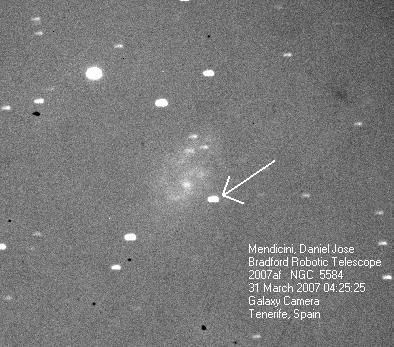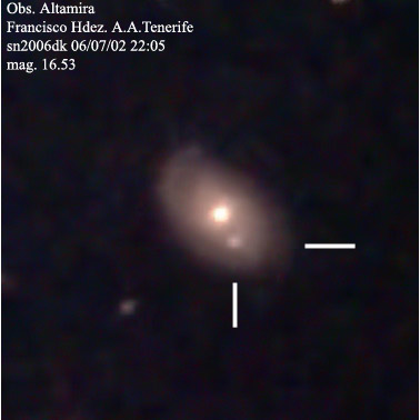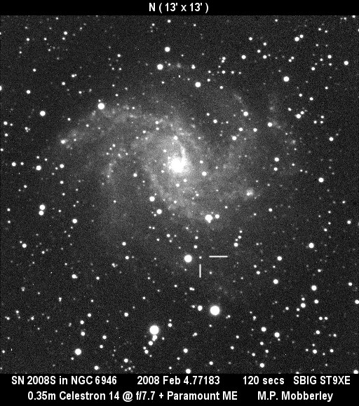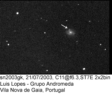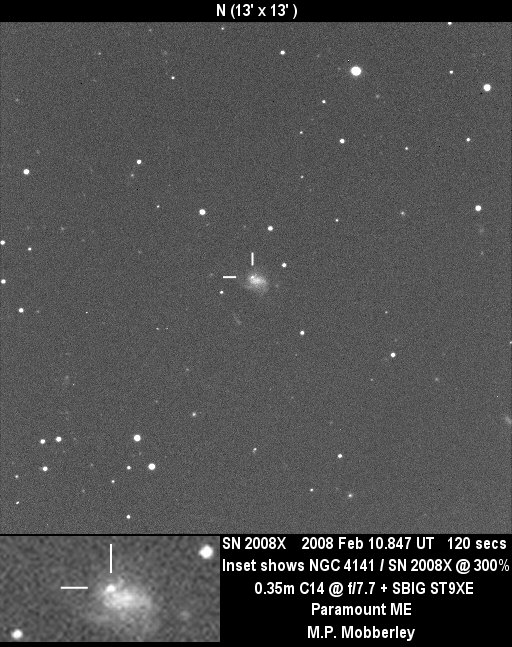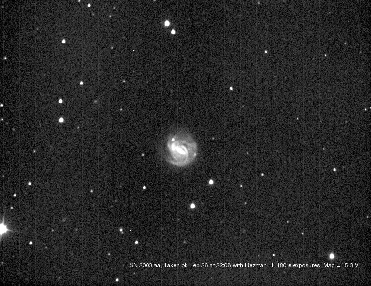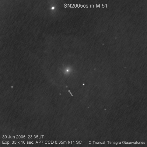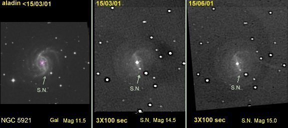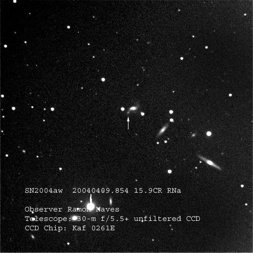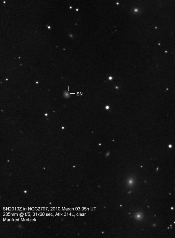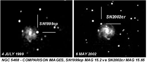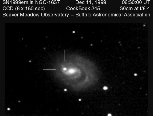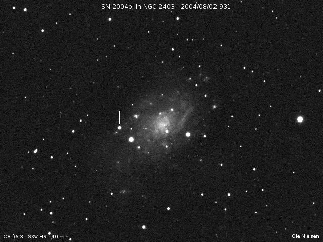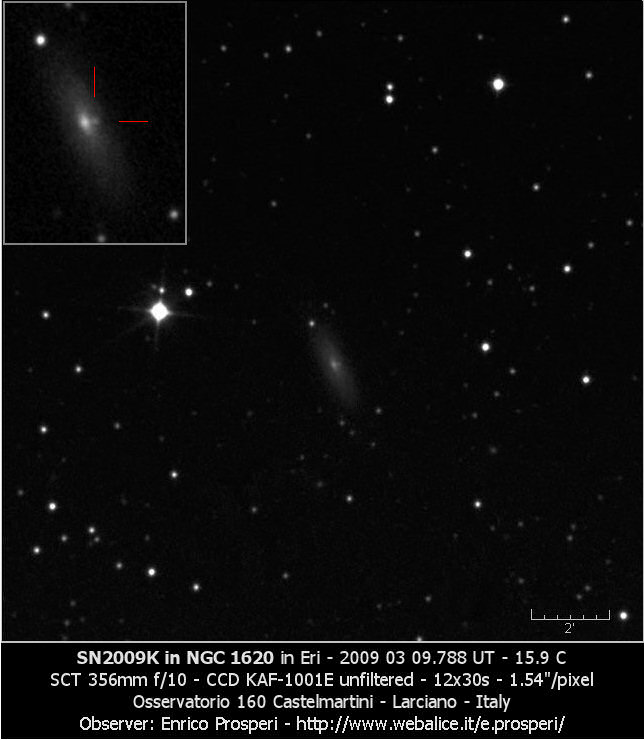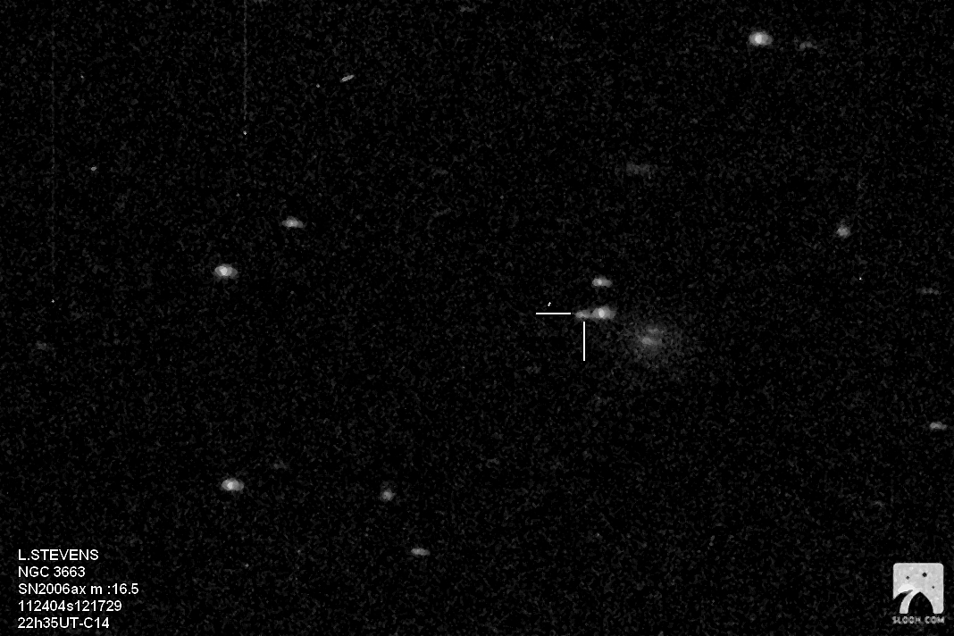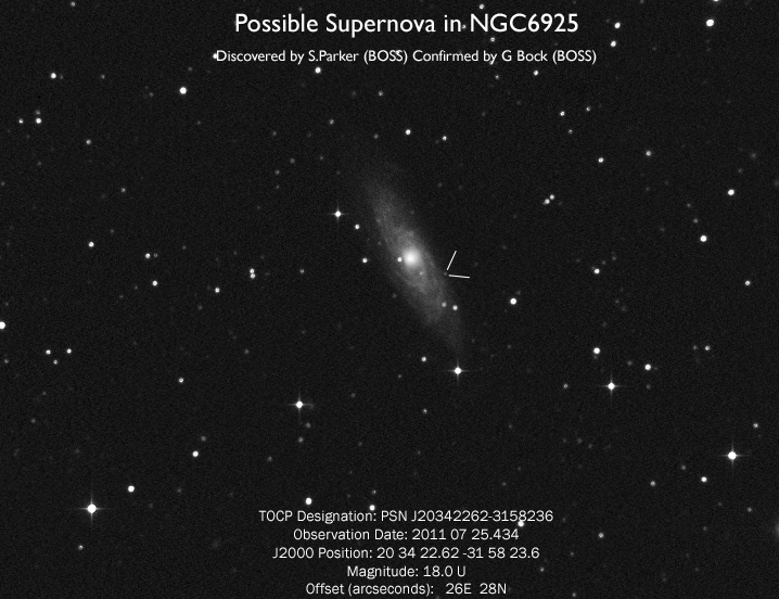 On this web page you will find a list of all the images that have been e-mailed to me for the Bright Supernovae webpages. If an image already exist on a web site, I will usually just create a link to it. However for people who do not have web sites I will accept images which I will then publish on my pages (which I sometimes crop). It should be noted that these images were given to me for use on the web page with the understanding that the copyright remains with the person who originally took them. My thanks to all of the people who donated images. For a list of the best SN images I have found out on the net, please check my Best SN images on the net page.