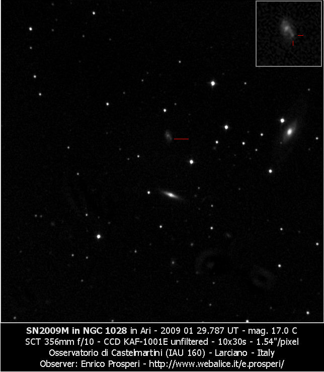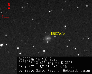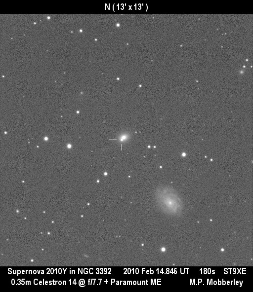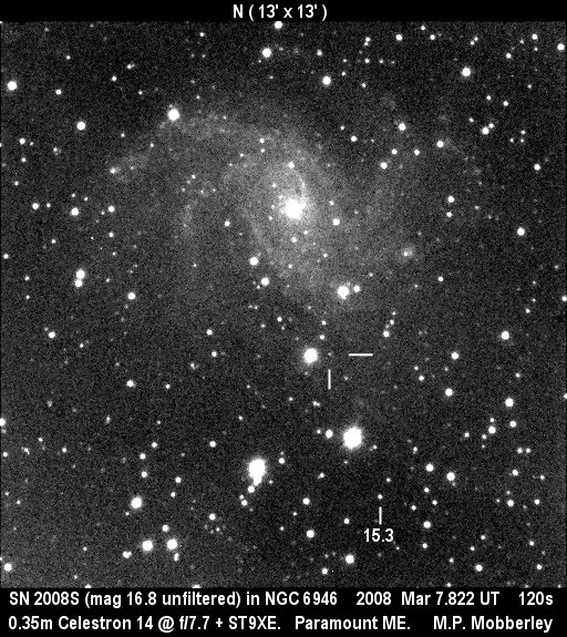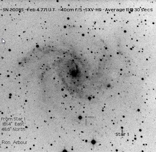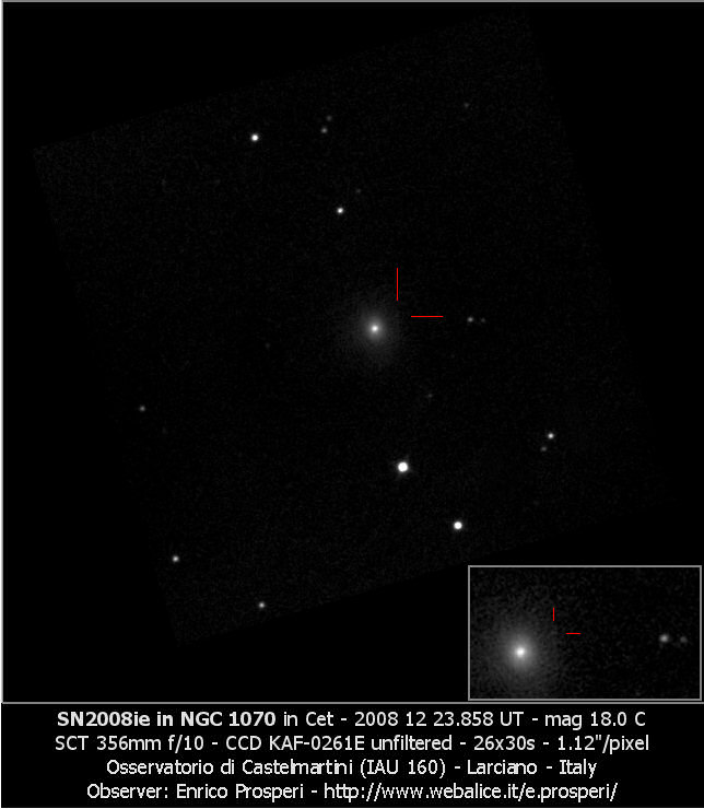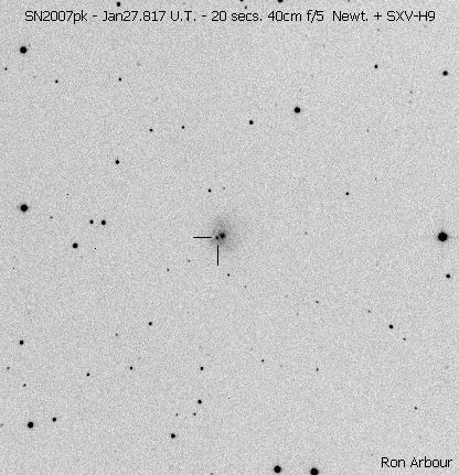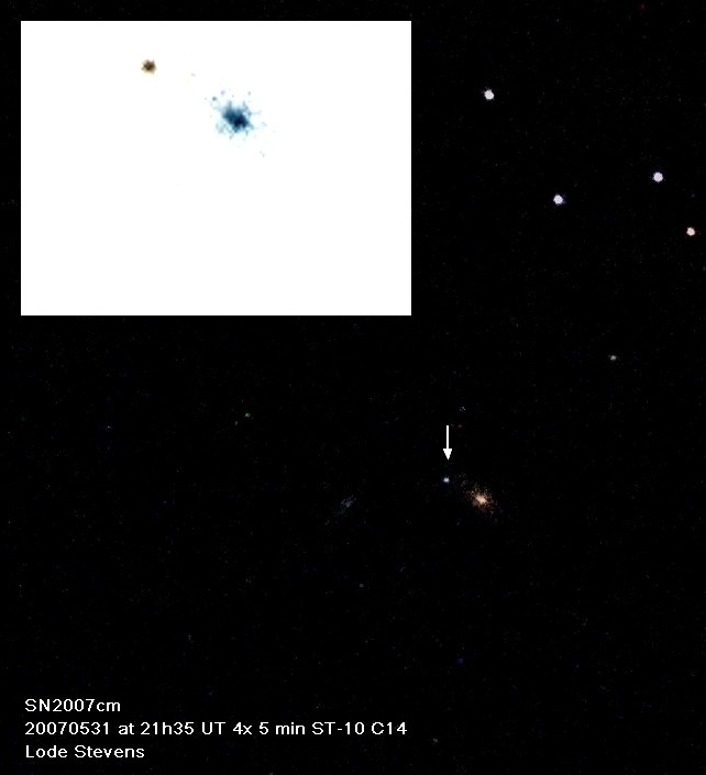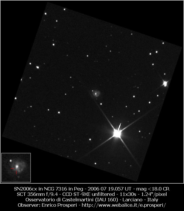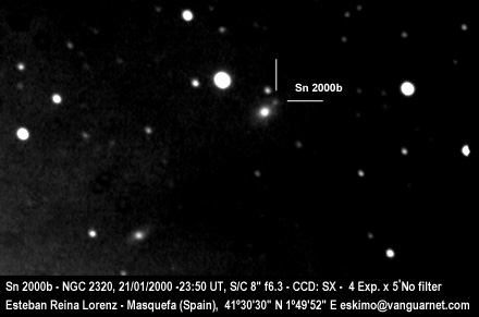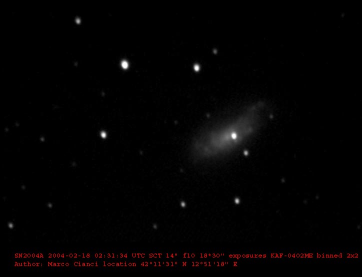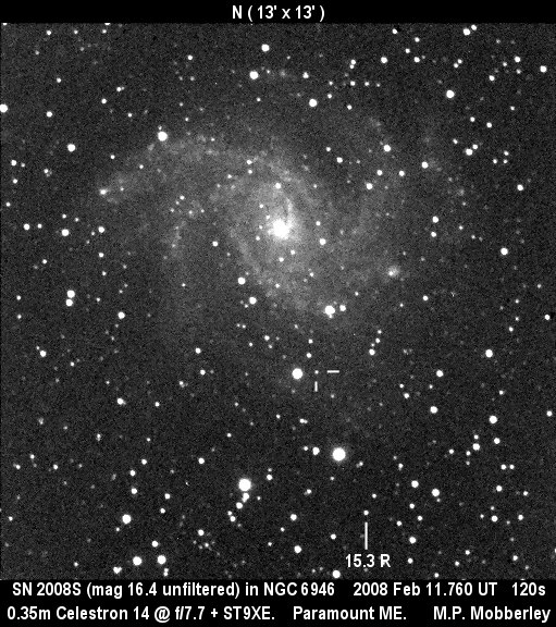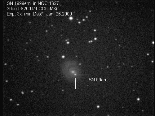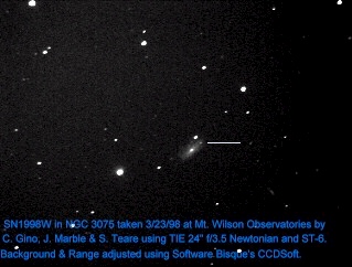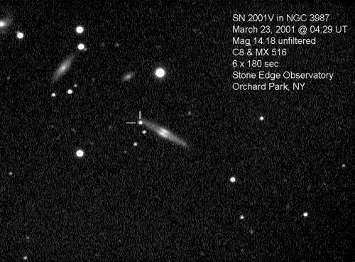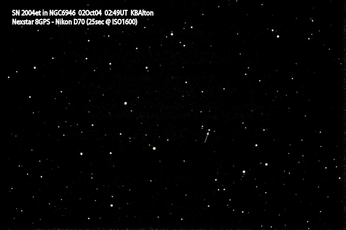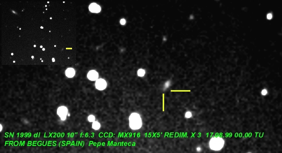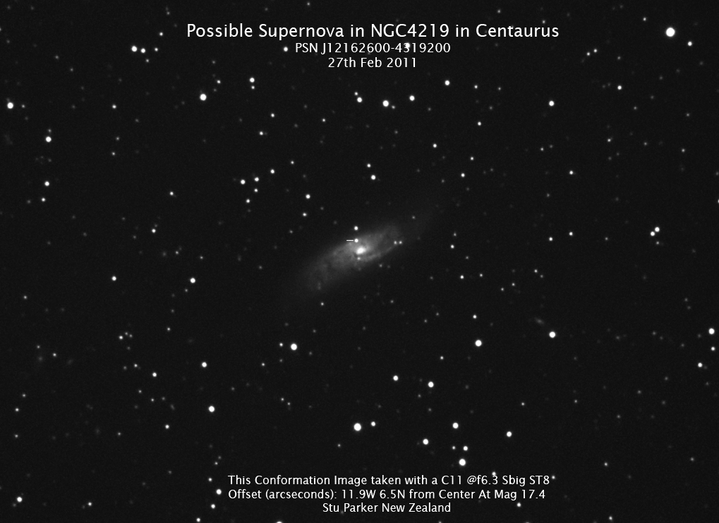 On this web page you will find a list of all the images that have been e-mailed to me for the Bright Supernovae webpages. If an image already exist on a web site, I will usually just create a link to it. However for people who do not have web sites I will accept images which I will then publish on my pages (which I sometimes crop). It should be noted that these images were given to me for use on the web page with the understanding that the copyright remains with the person who originally took them. My thanks to all of the people who donated images. For a list of the best SN images I have found out on the net, please check my Best SN images on the net page.