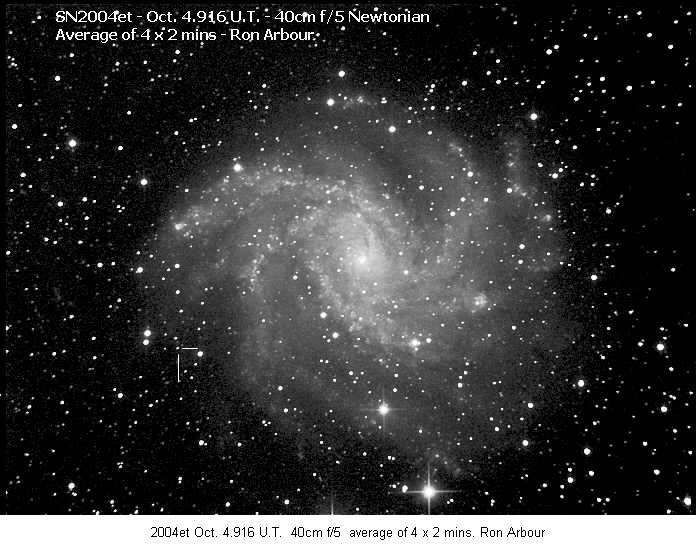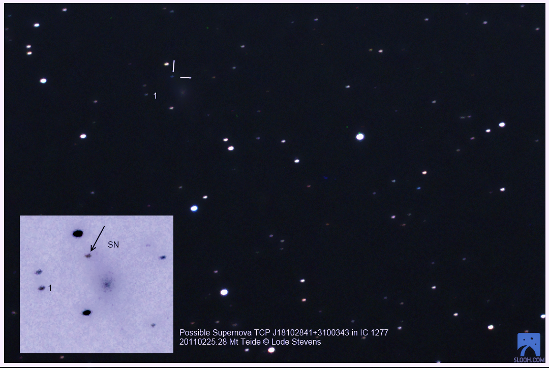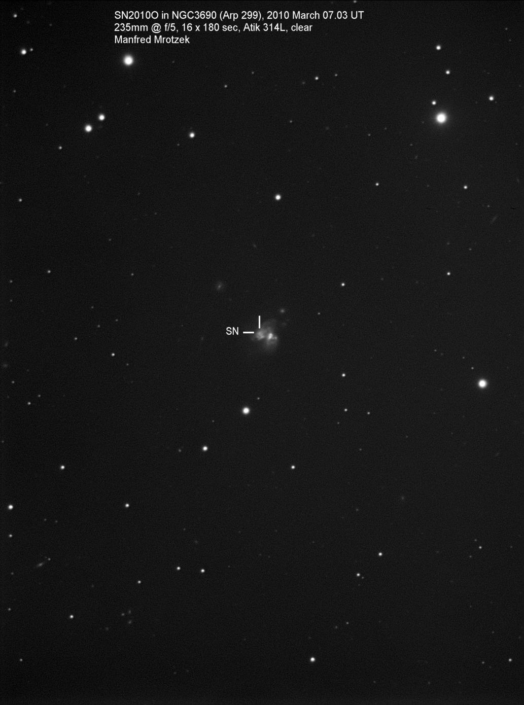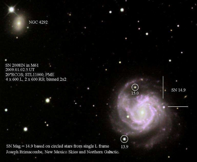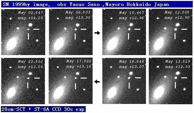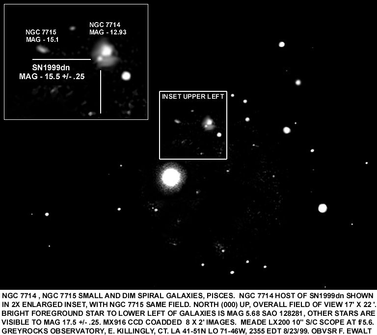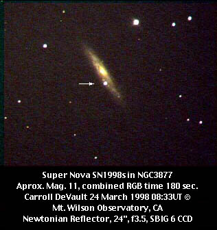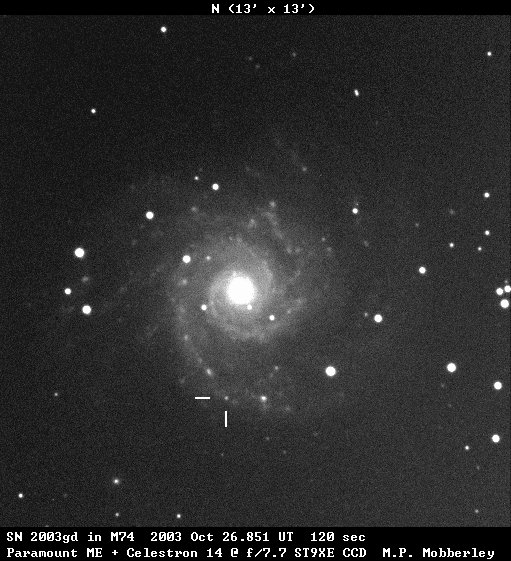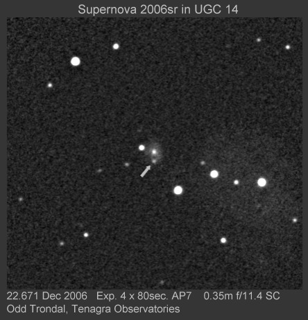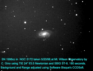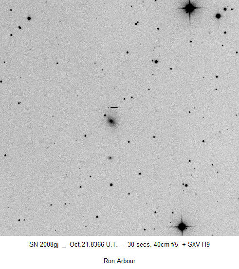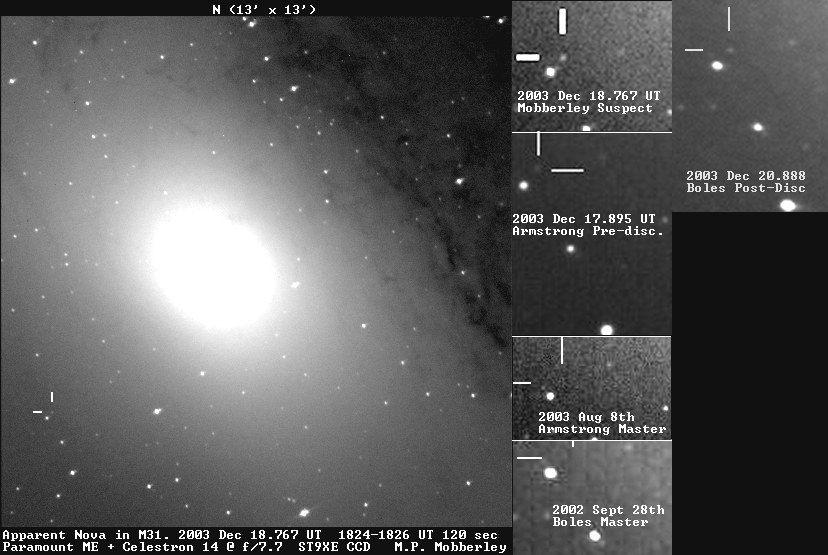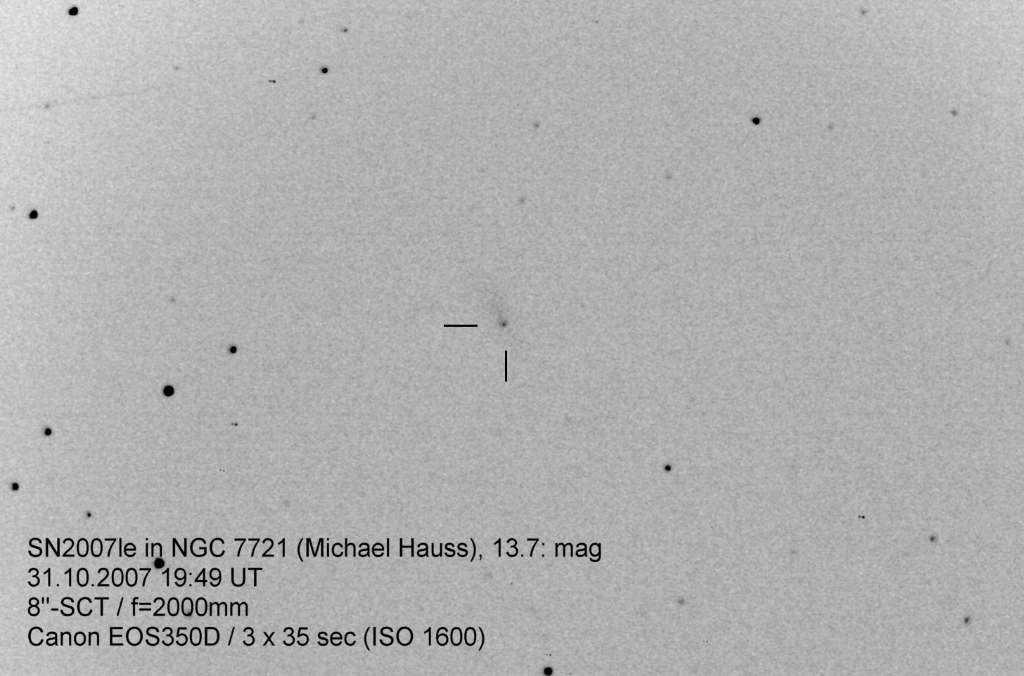 On this web page you will find a list of all the images that have been e-mailed to me for the Bright Supernovae webpages. If an image already exist on a web site, I will usually just create a link to it. However for people who do not have web sites I will accept images which I will then publish on my pages (which I sometimes crop). It should be noted that these images were given to me for use on the web page with the understanding that the copyright remains with the person who originally took them. My thanks to all of the people who donated images. For a list of the best SN images I have found out on the net, please check my Best SN images on the net page.
