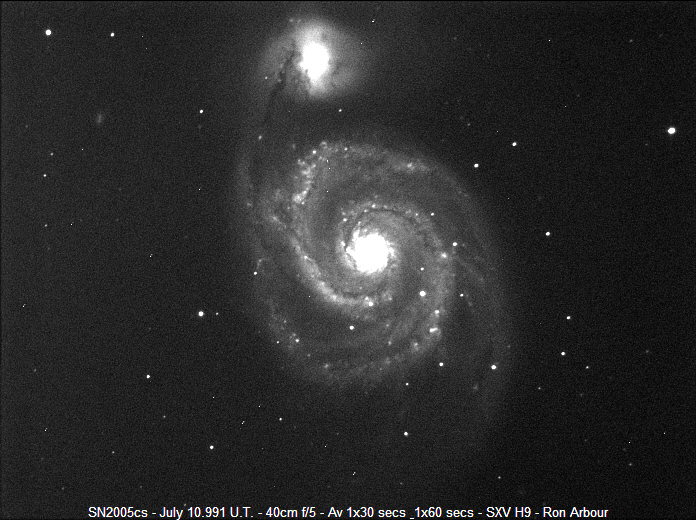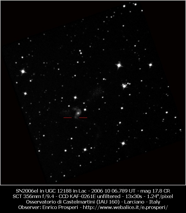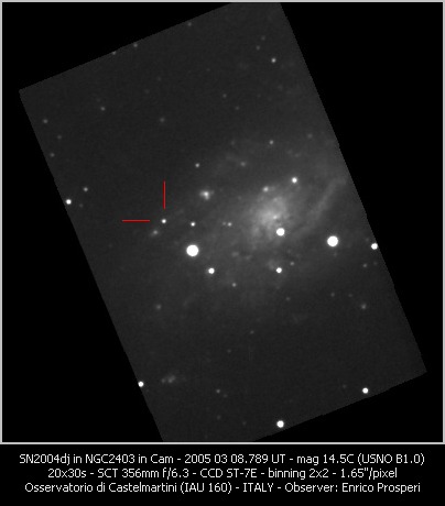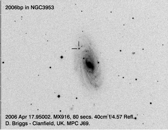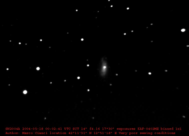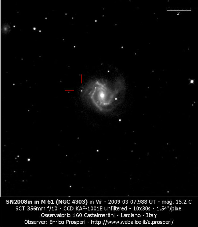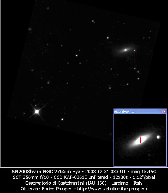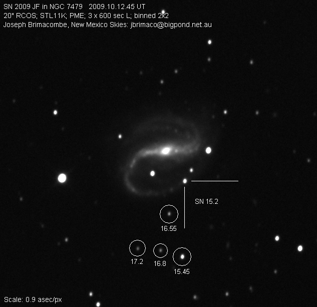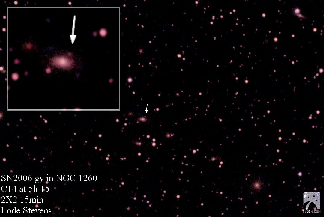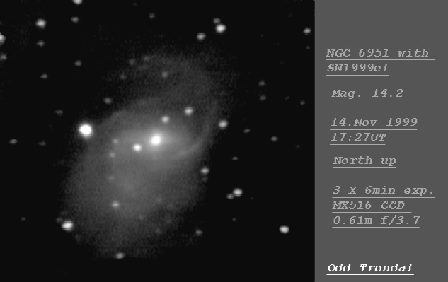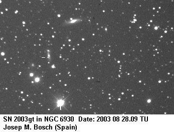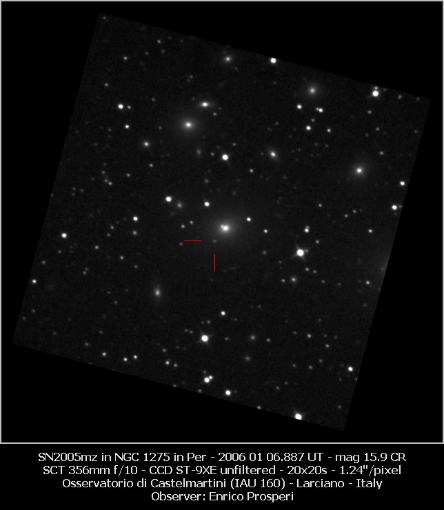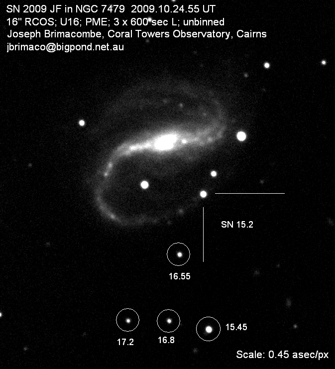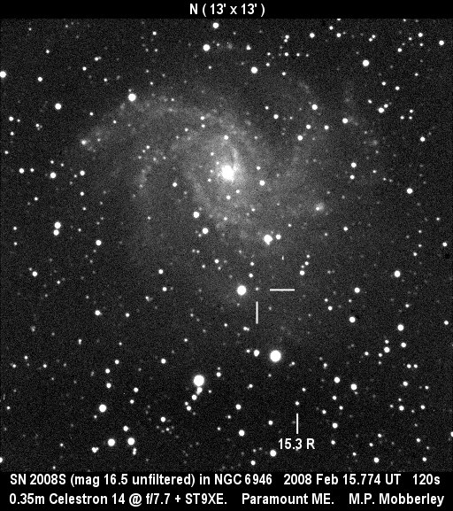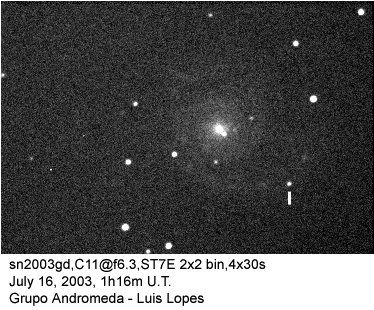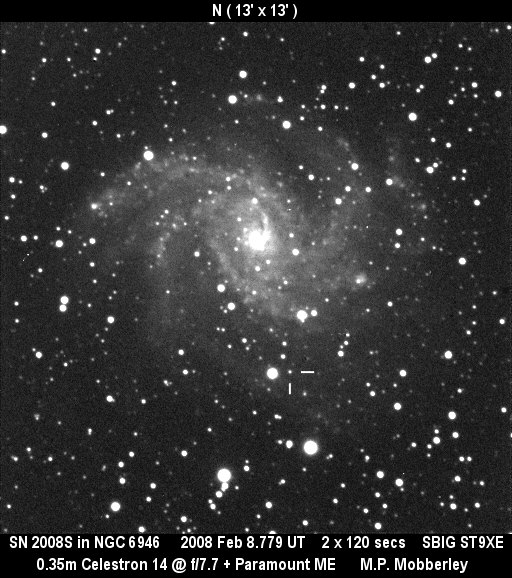 On this web page you will find a list of all the images that have been e-mailed to me for the Bright Supernovae webpages. If an image already exist on a web site, I will usually just create a link to it. However for people who do not have web sites I will accept images which I will then publish on my pages (which I sometimes crop). It should be noted that these images were given to me for use on the web page with the understanding that the copyright remains with the person who originally took them. My thanks to all of the people who donated images. For a list of the best SN images I have found out on the net, please check my Best SN images on the net page.