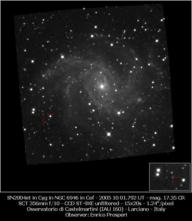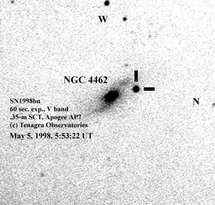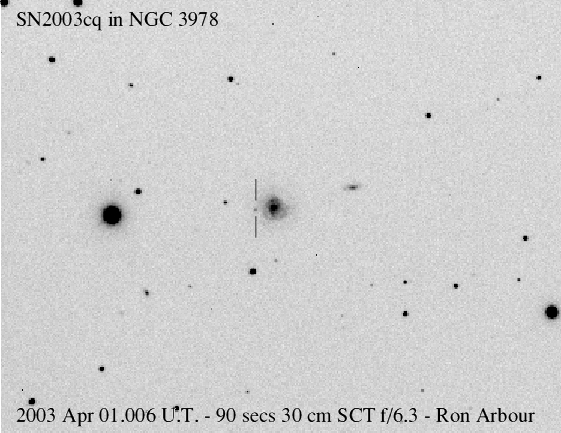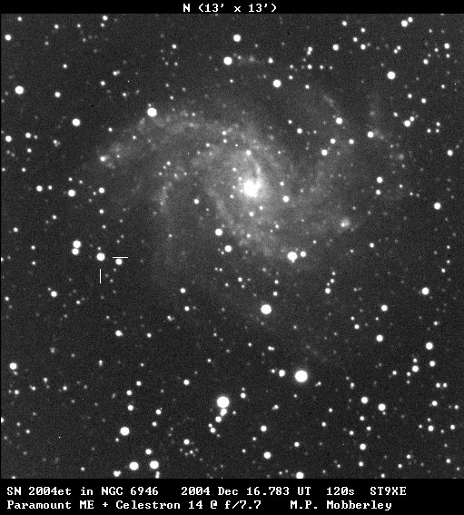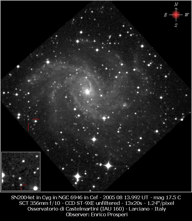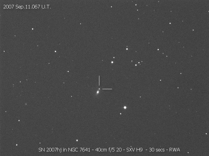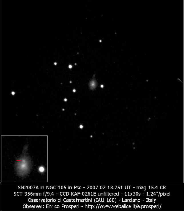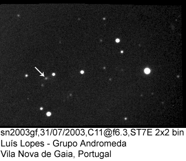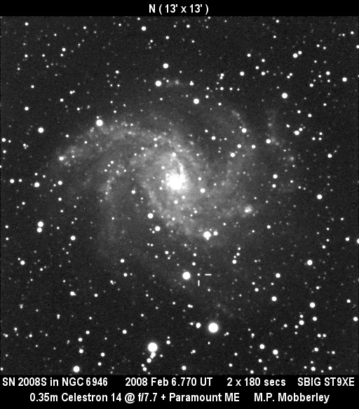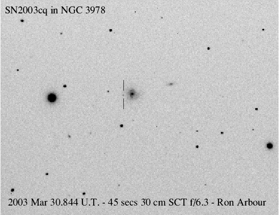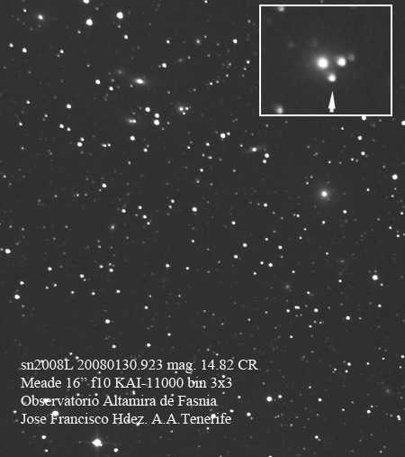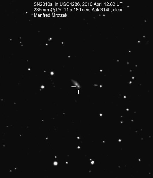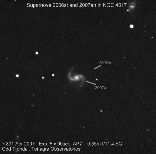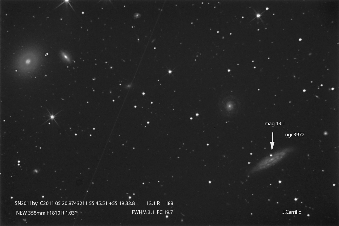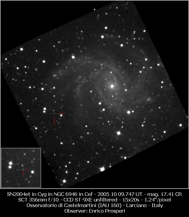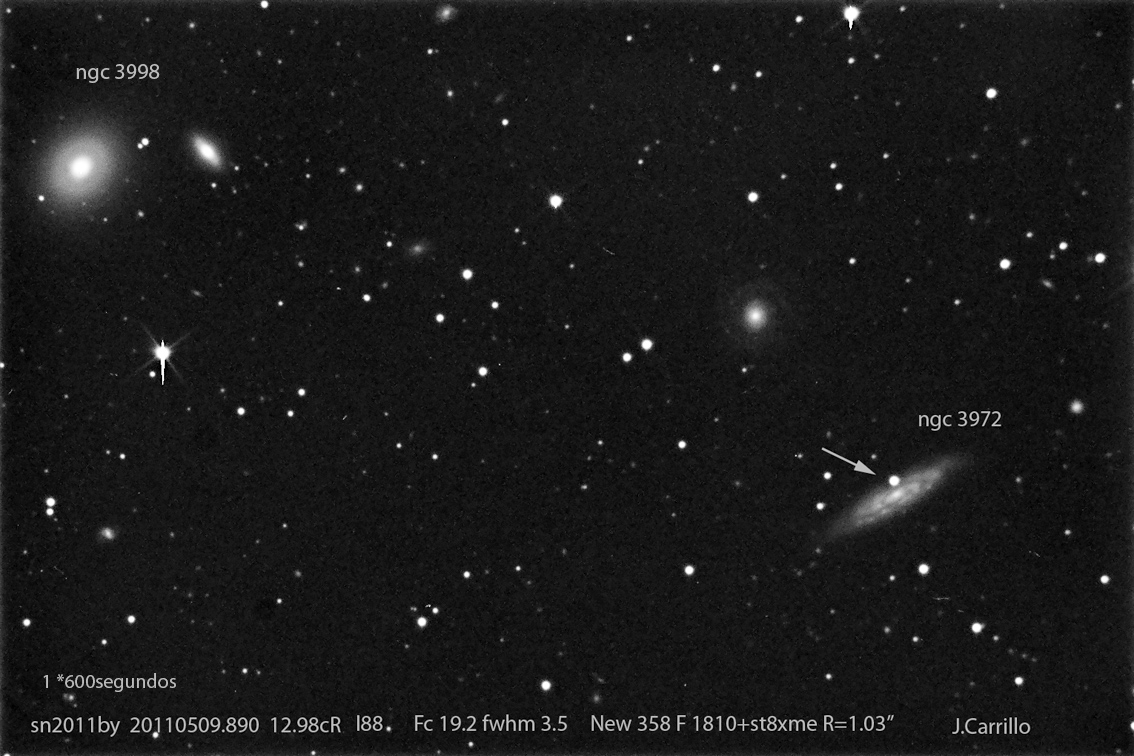 On this web page you will find a list of all the images that have been e-mailed to me for the Bright Supernovae webpages. If an image already exist on a web site, I will usually just create a link to it. However for people who do not have web sites I will accept images which I will then publish on my pages (which I sometimes crop). It should be noted that these images were given to me for use on the web page with the understanding that the copyright remains with the person who originally took them. My thanks to all of the people who donated images. For a list of the best SN images I have found out on the net, please check my Best SN images on the net page.