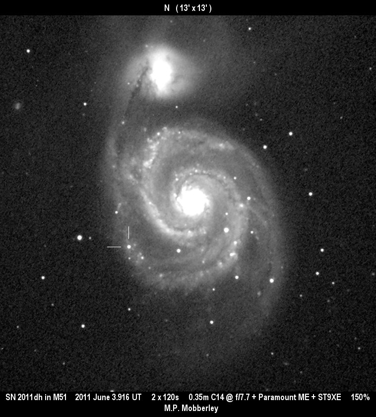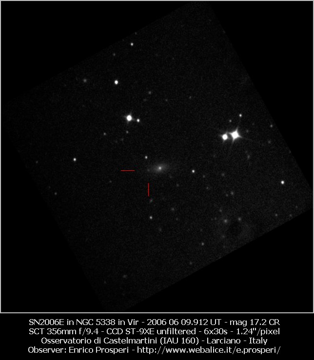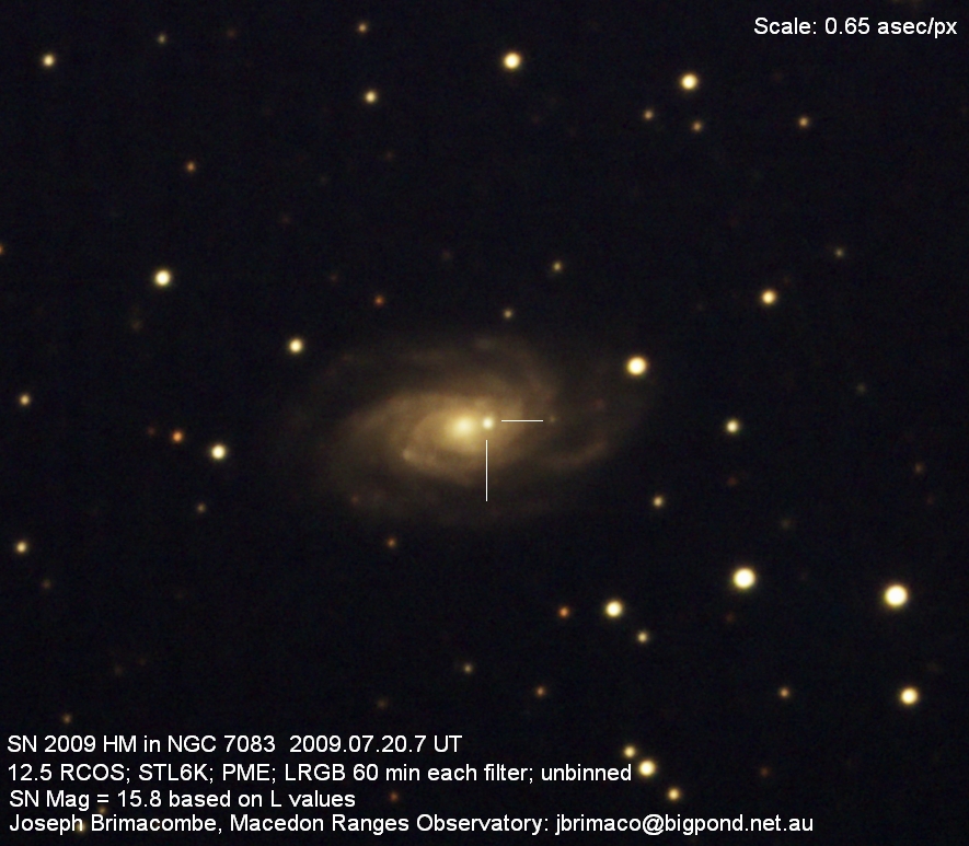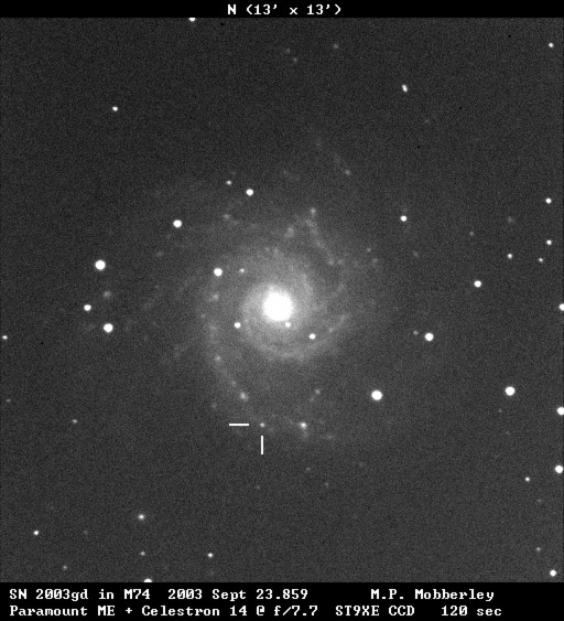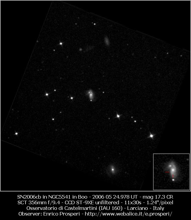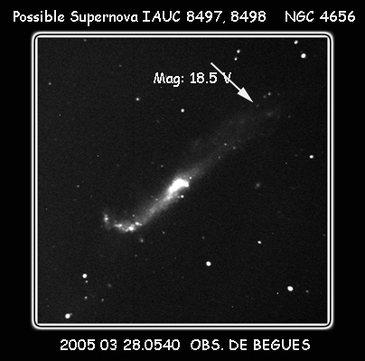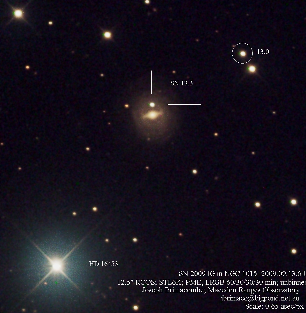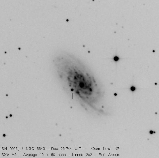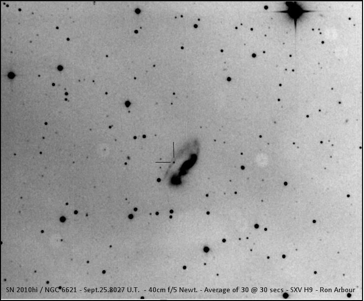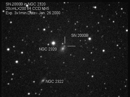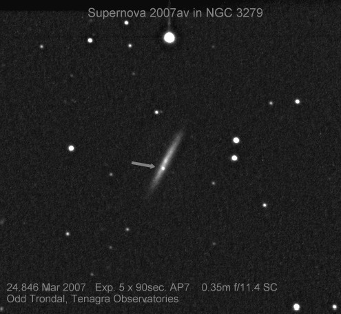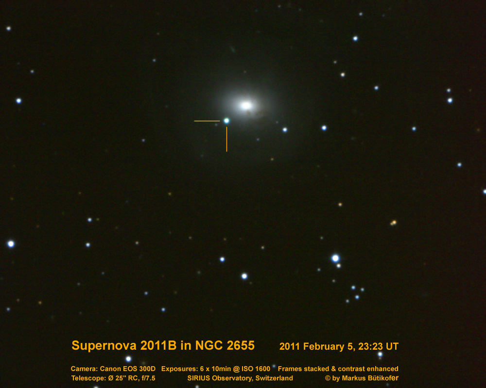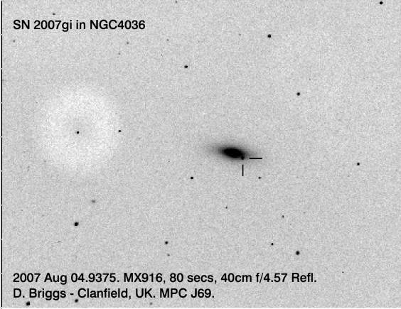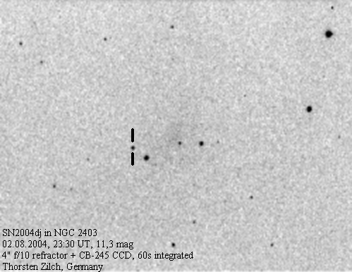 On this web page you will find a list of all the images that have been e-mailed to me for the Bright Supernovae webpages. If an image already exist on a web site, I will usually just create a link to it. However for people who do not have web sites I will accept images which I will then publish on my pages (which I sometimes crop). It should be noted that these images were given to me for use on the web page with the understanding that the copyright remains with the person who originally took them. My thanks to all of the people who donated images. For a list of the best SN images I have found out on the net, please check my Best SN images on the net page.