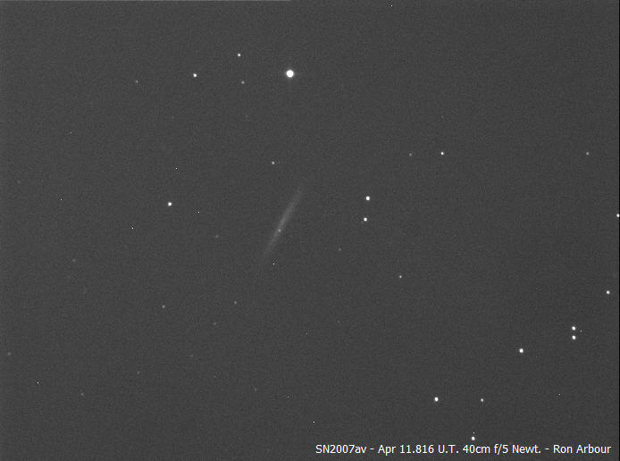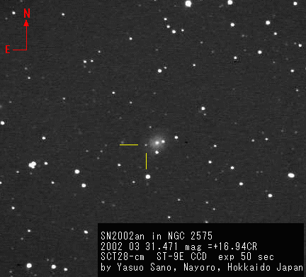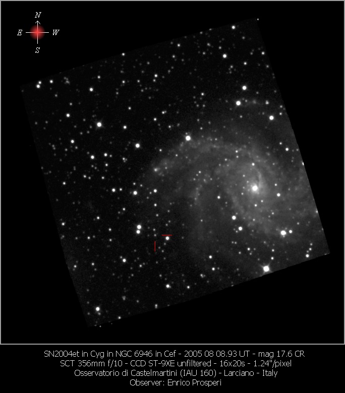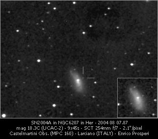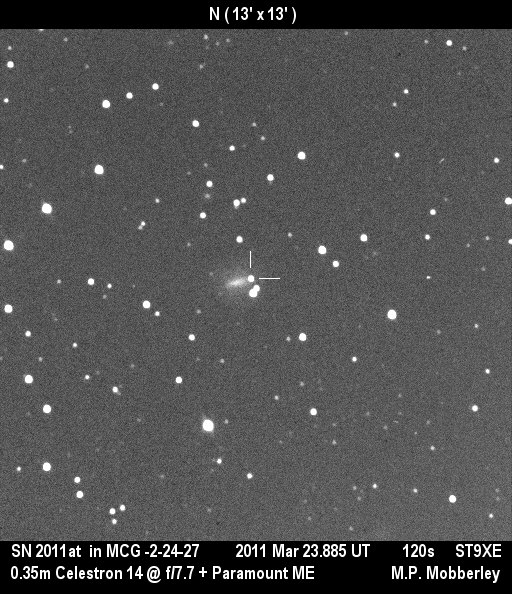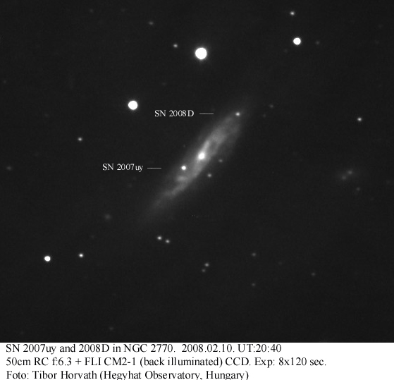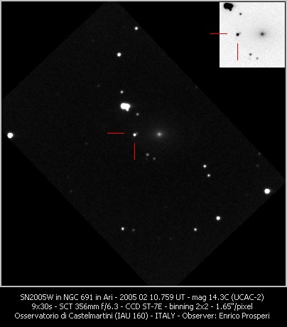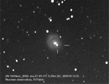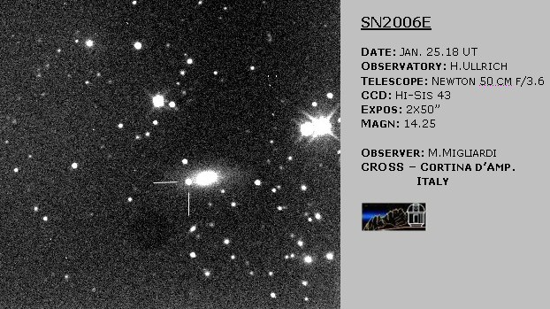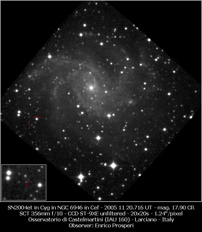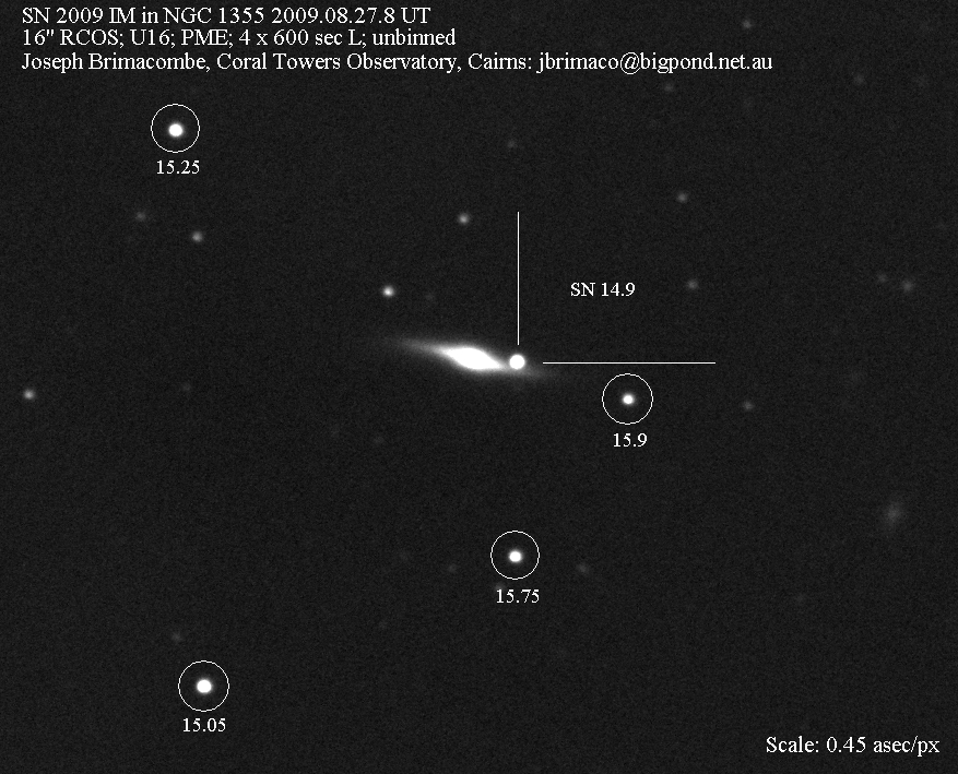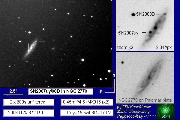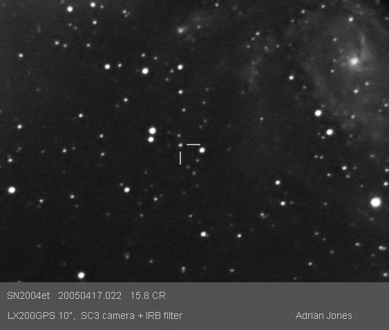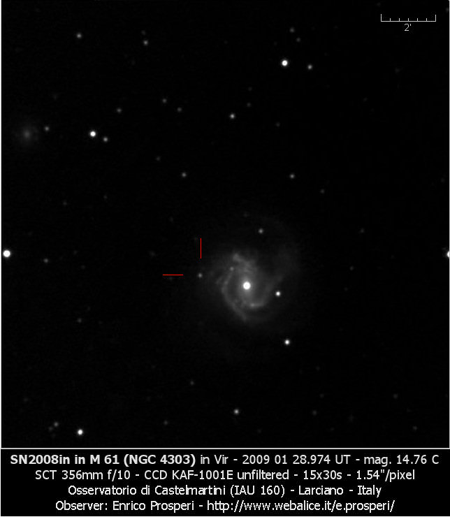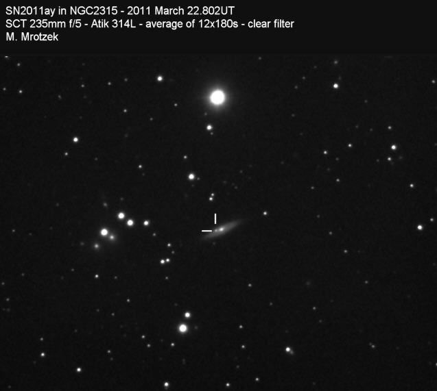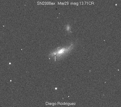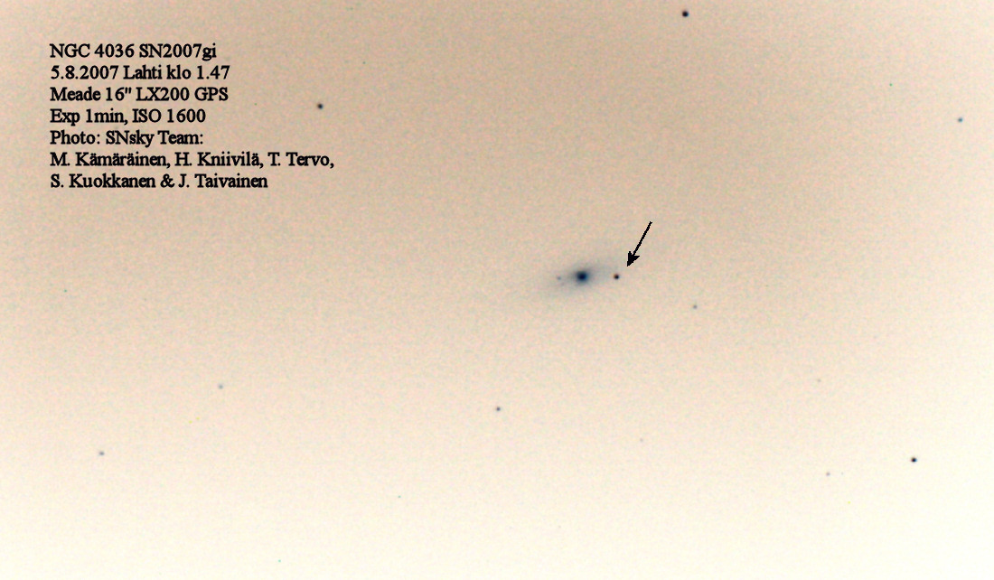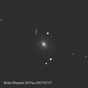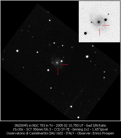 On this web page you will find a list of all the images that have been e-mailed to me for the Bright Supernovae webpages. If an image already exist on a web site, I will usually just create a link to it. However for people who do not have web sites I will accept images which I will then publish on my pages (which I sometimes crop). It should be noted that these images were given to me for use on the web page with the understanding that the copyright remains with the person who originally took them. My thanks to all of the people who donated images. For a list of the best SN images I have found out on the net, please check my Best SN images on the net page.