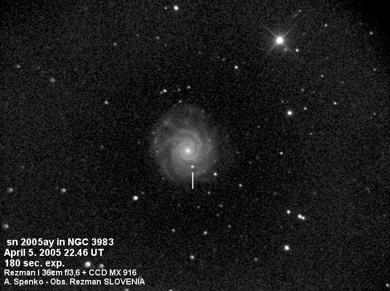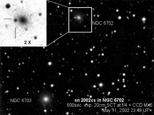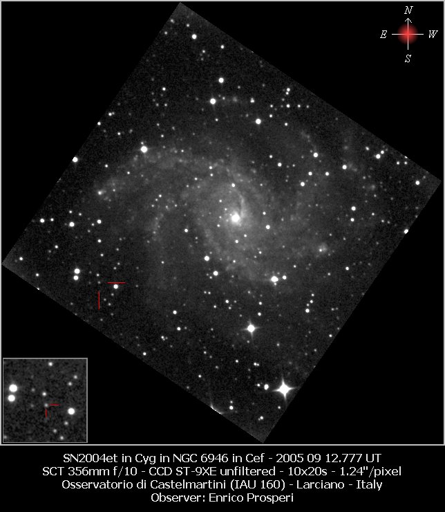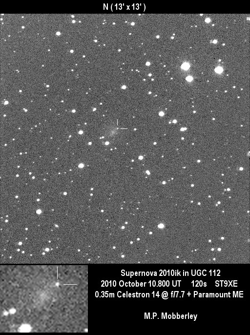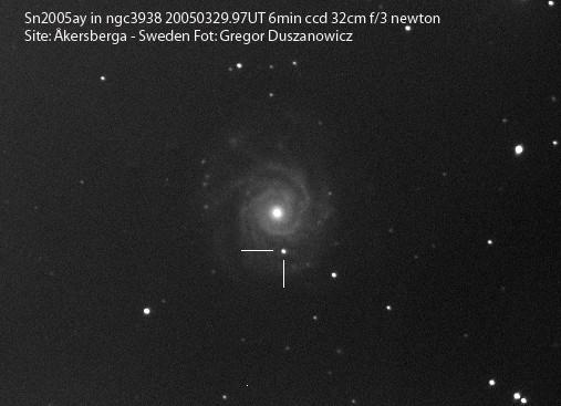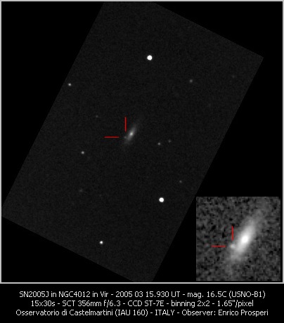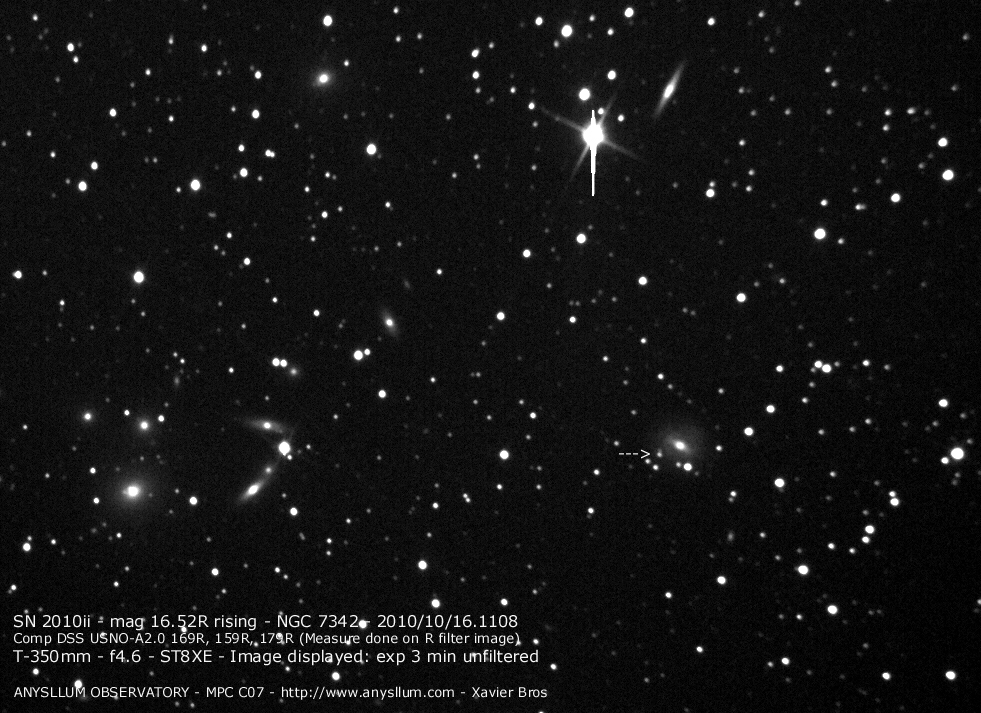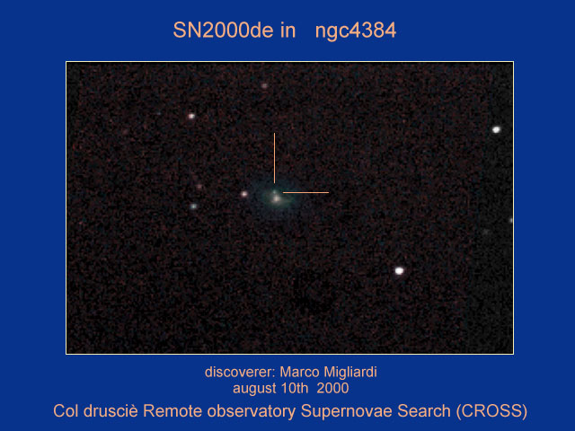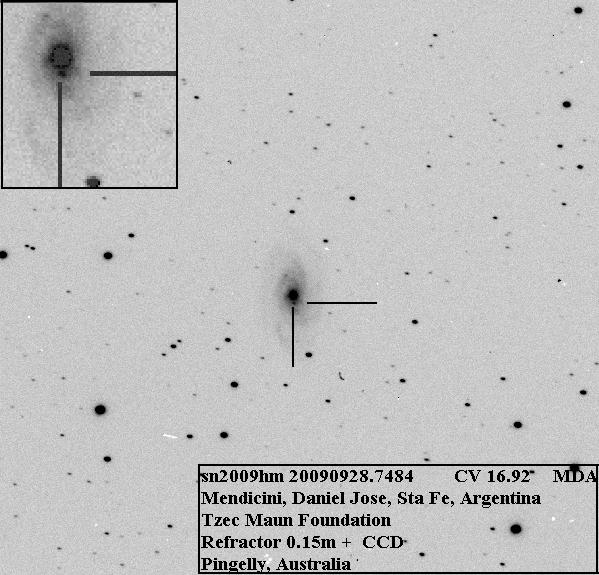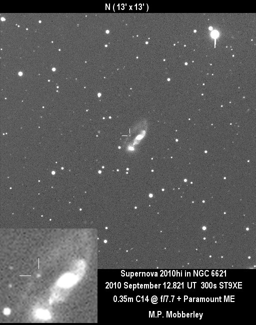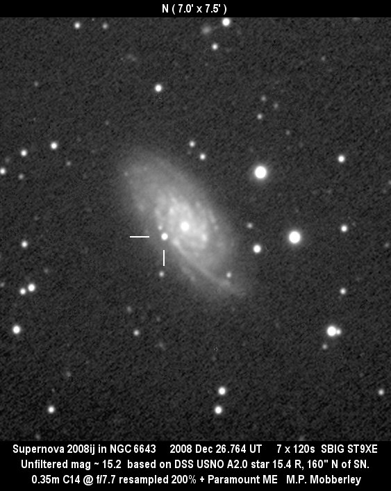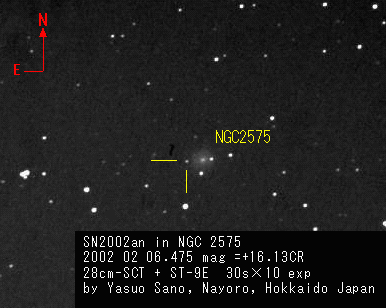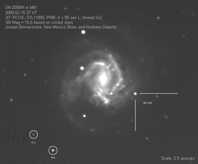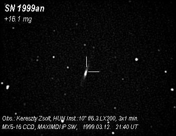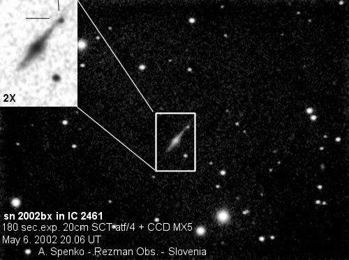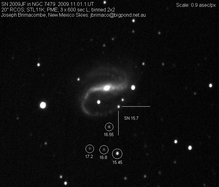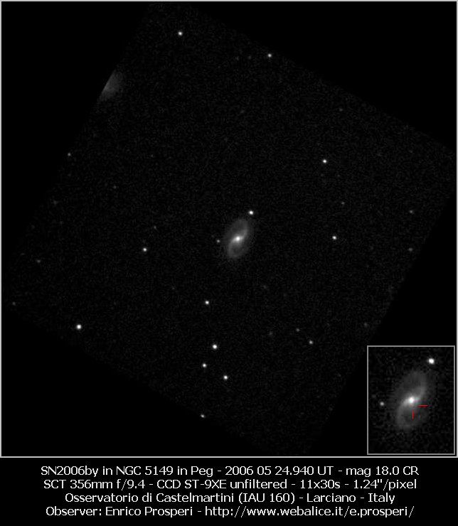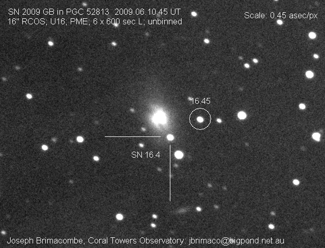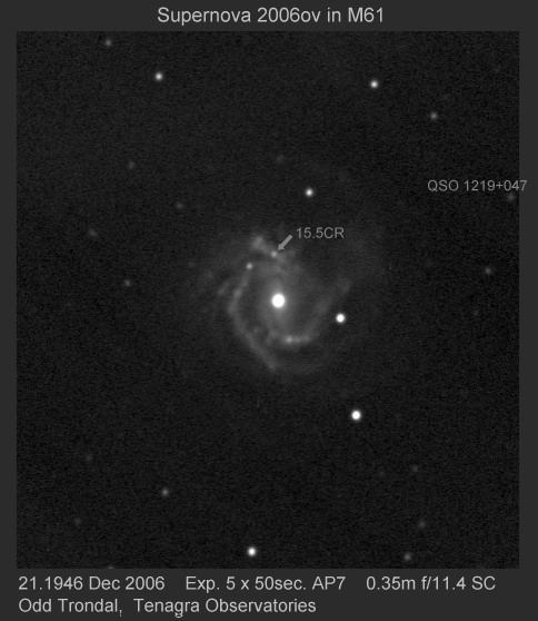 On this web page you will find a list of all the images that have been e-mailed to me for the Bright Supernovae webpages. If an image already exist on a web site, I will usually just create a link to it. However for people who do not have web sites I will accept images which I will then publish on my pages (which I sometimes crop). It should be noted that these images were given to me for use on the web page with the understanding that the copyright remains with the person who originally took them. My thanks to all of the people who donated images. For a list of the best SN images I have found out on the net, please check my Best SN images on the net page.