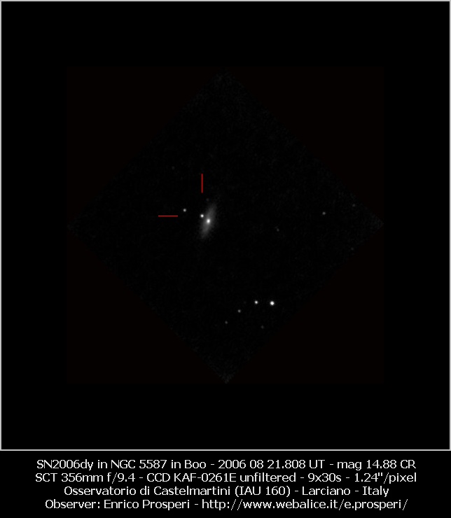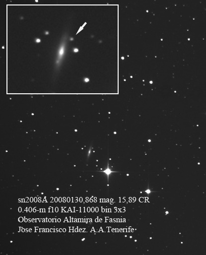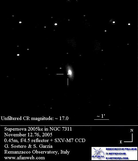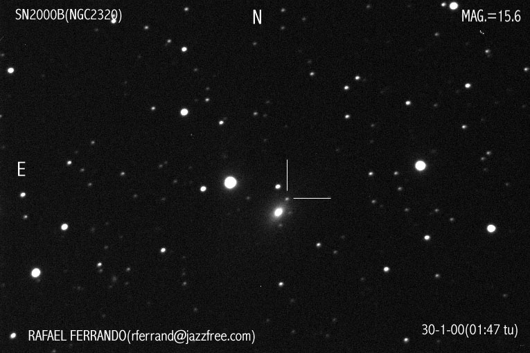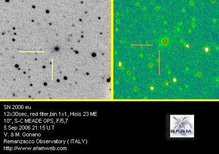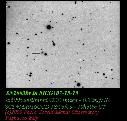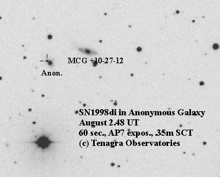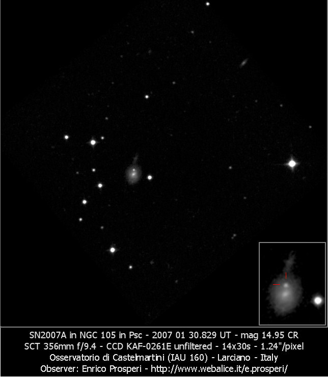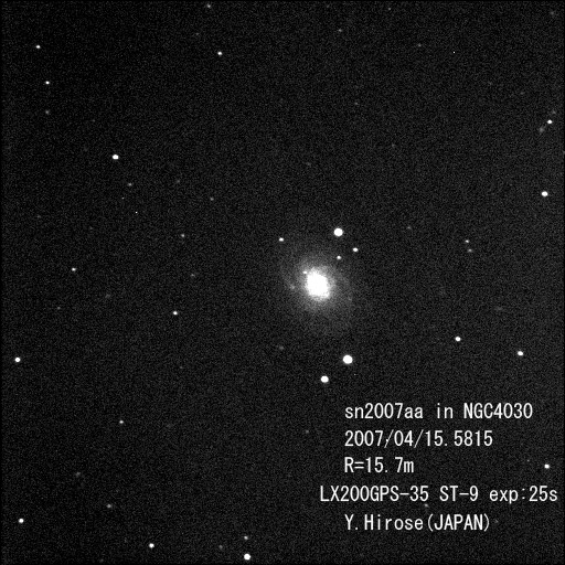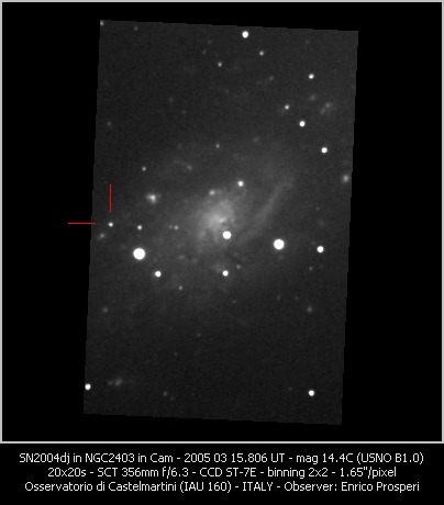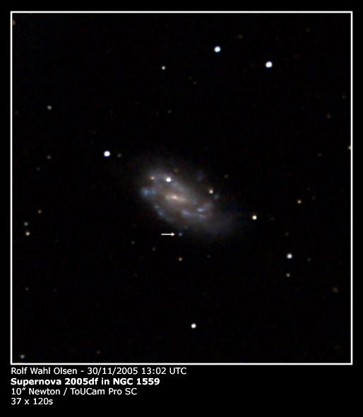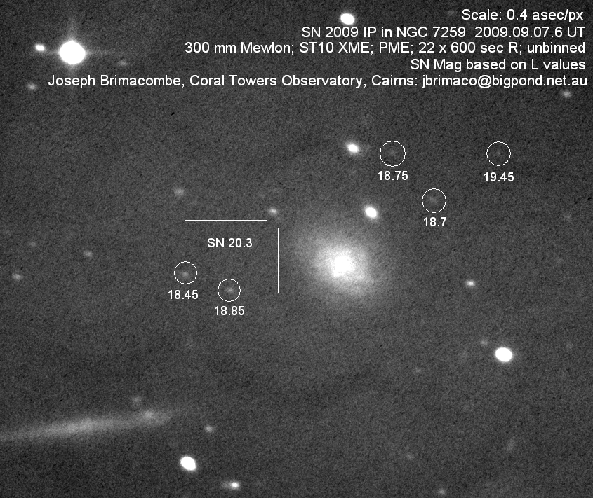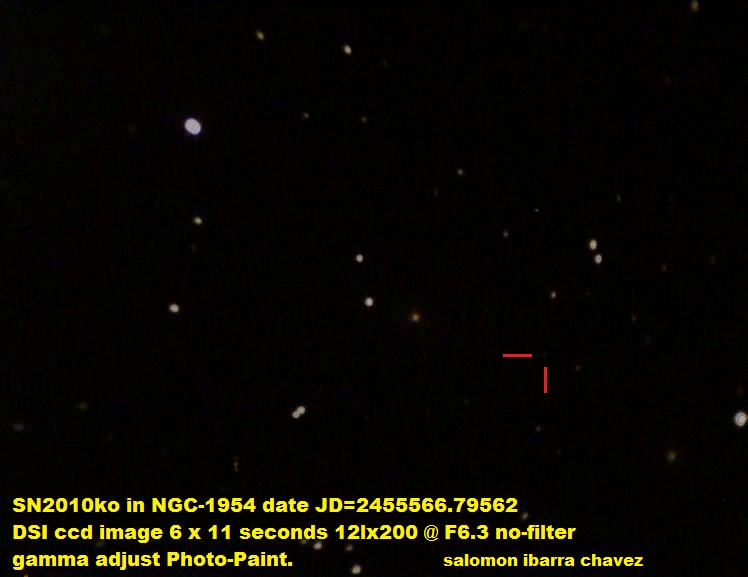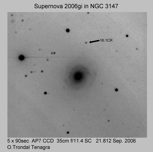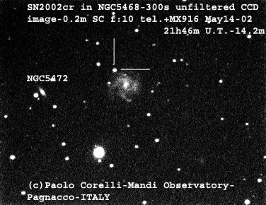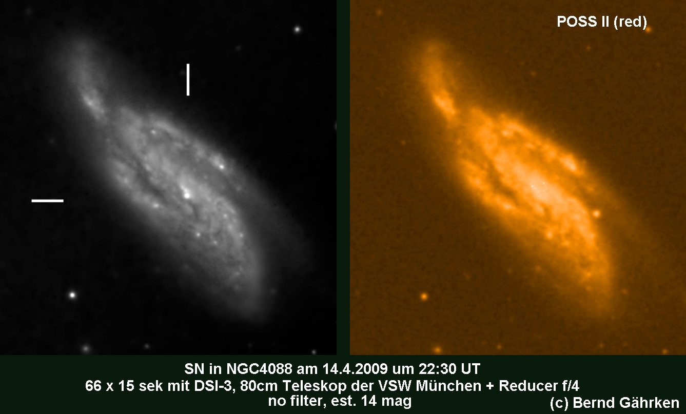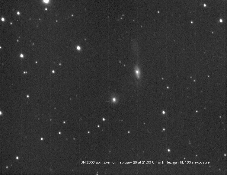 On this web page you will find a list of all the images that have been e-mailed to me for the Bright Supernovae webpages. If an image already exist on a web site, I will usually just create a link to it. However for people who do not have web sites I will accept images which I will then publish on my pages (which I sometimes crop). It should be noted that these images were given to me for use on the web page with the understanding that the copyright remains with the person who originally took them. My thanks to all of the people who donated images. For a list of the best SN images I have found out on the net, please check my Best SN images on the net page.