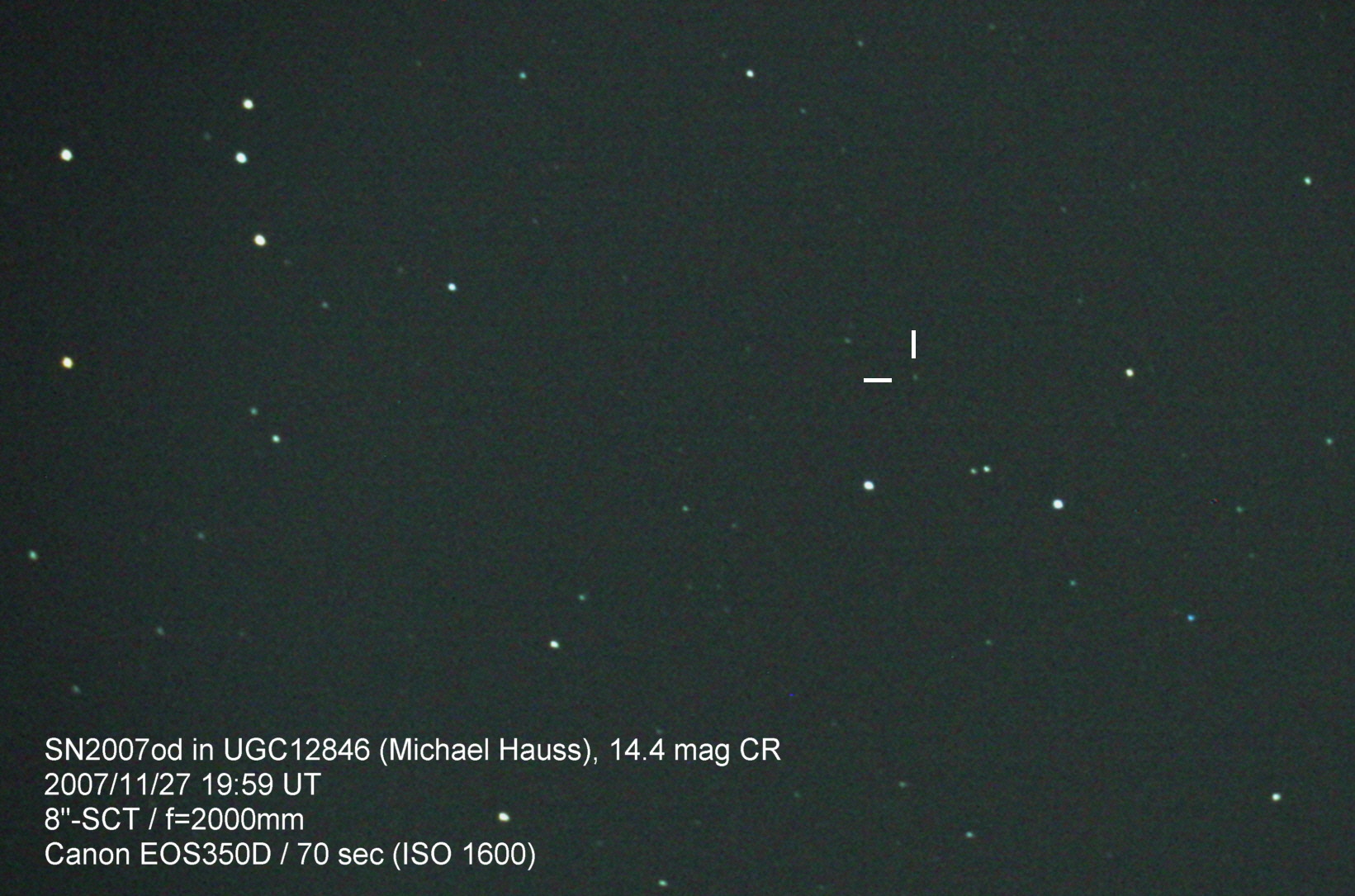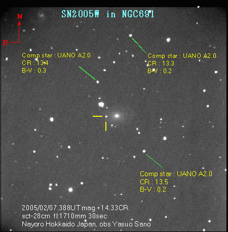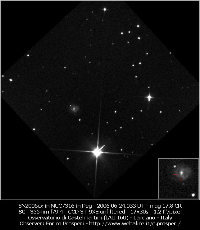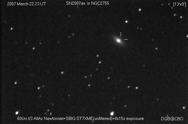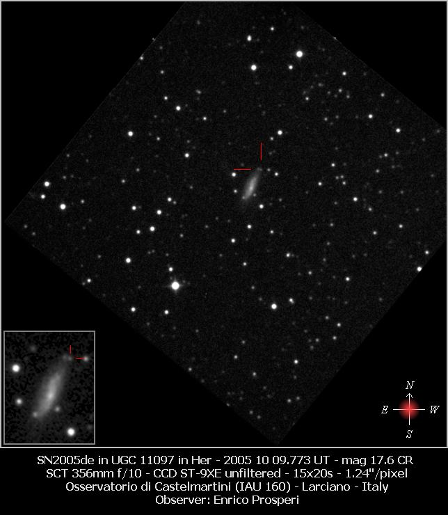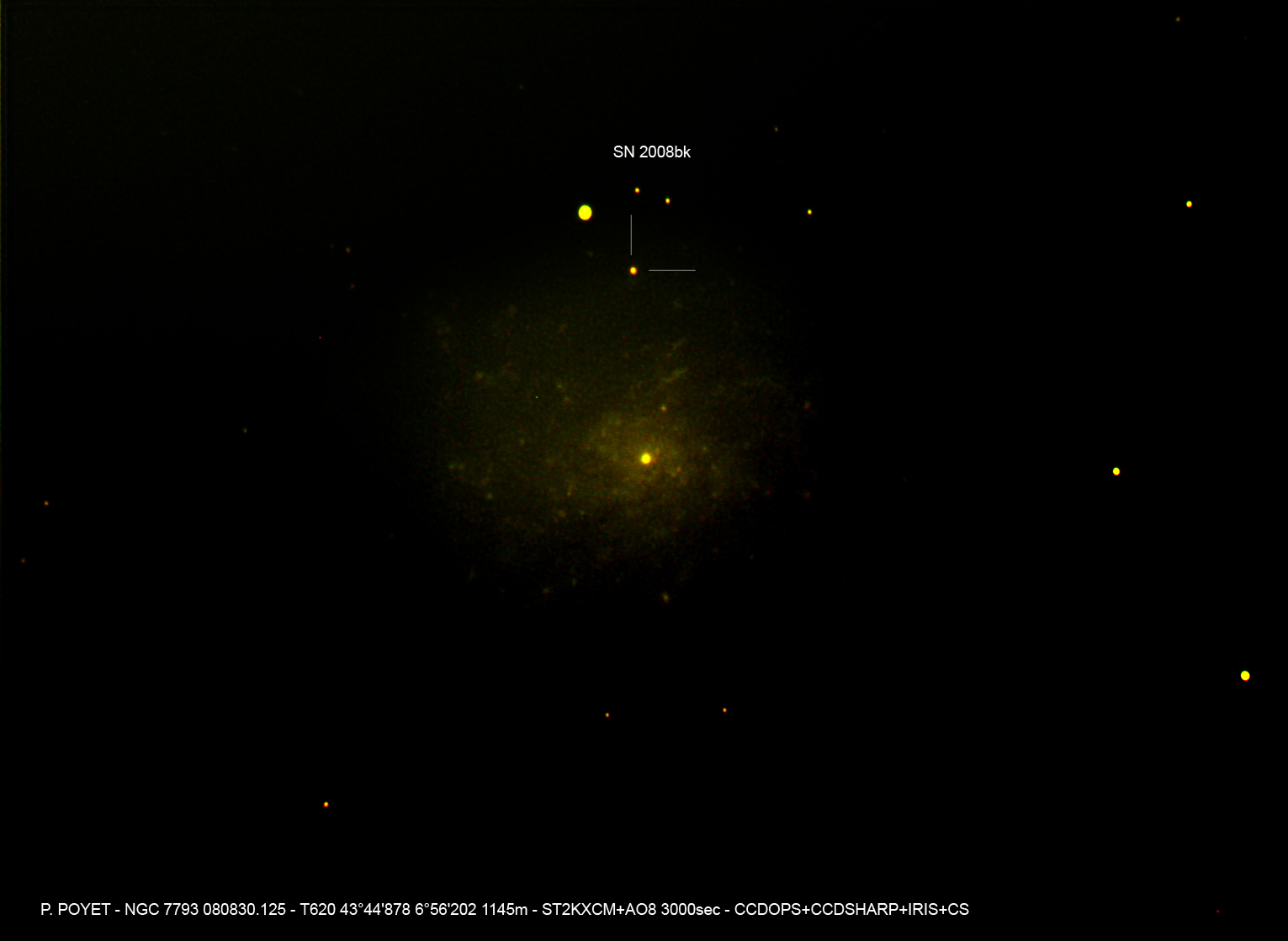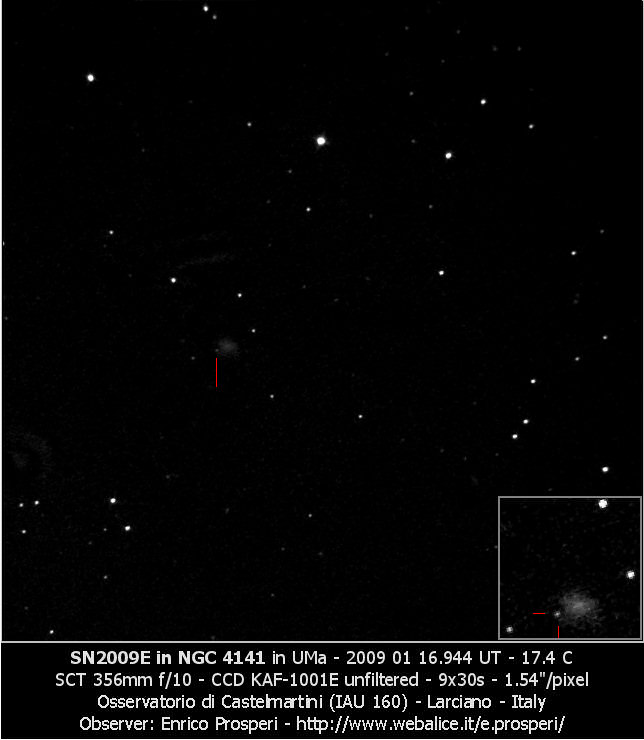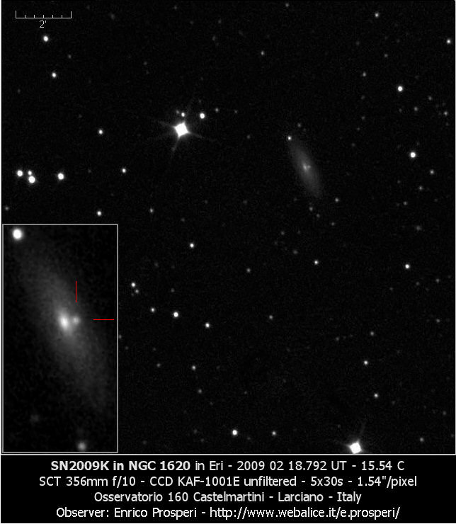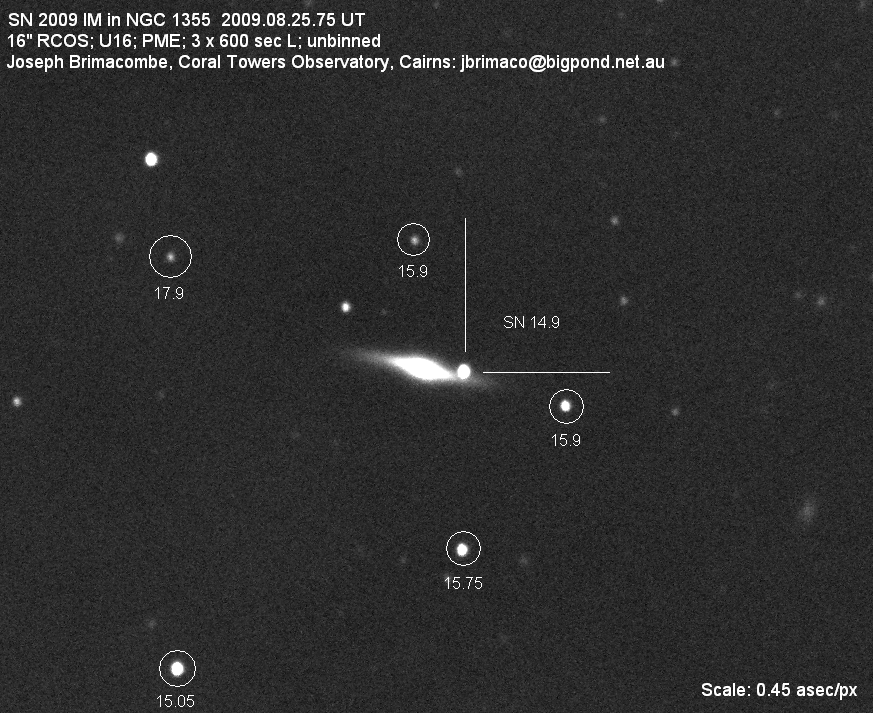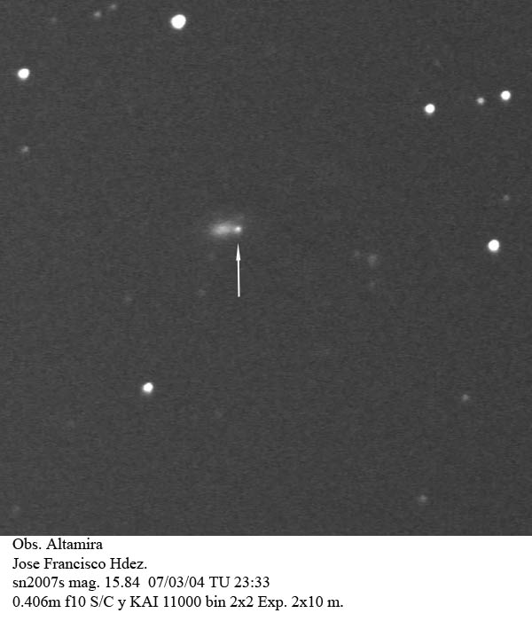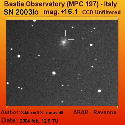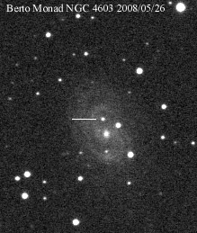 On this web page you will find a list of all the images that have been e-mailed to me for the Bright Supernovae webpages. If an image already exist on a web site, I will usually just create a link to it. However for people who do not have web sites I will accept images which I will then publish on my pages (which I sometimes crop). It should be noted that these images were given to me for use on the web page with the understanding that the copyright remains with the person who originally took them. My thanks to all of the people who donated images. For a list of the best SN images I have found out on the net, please check my Best SN images on the net page.