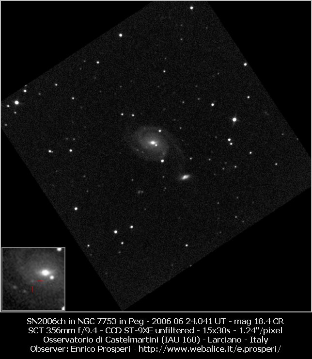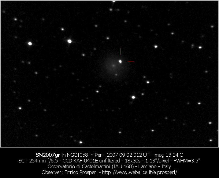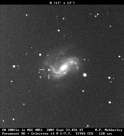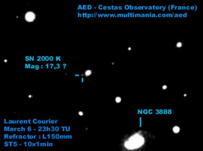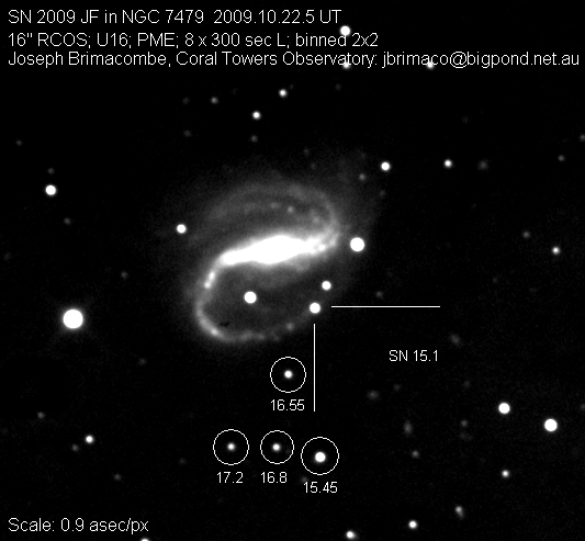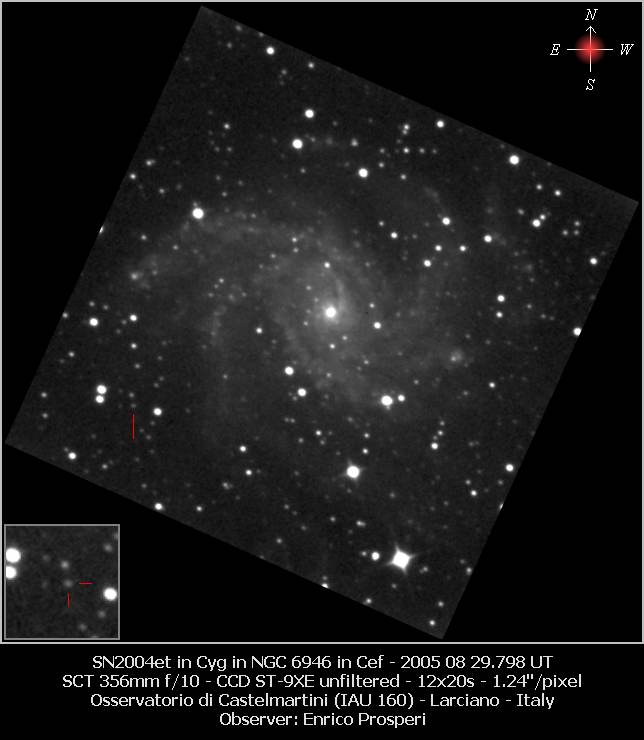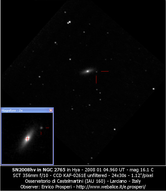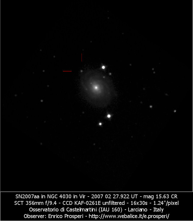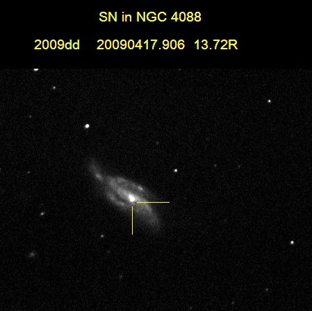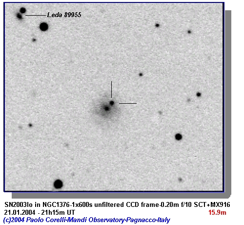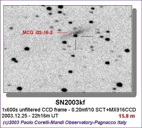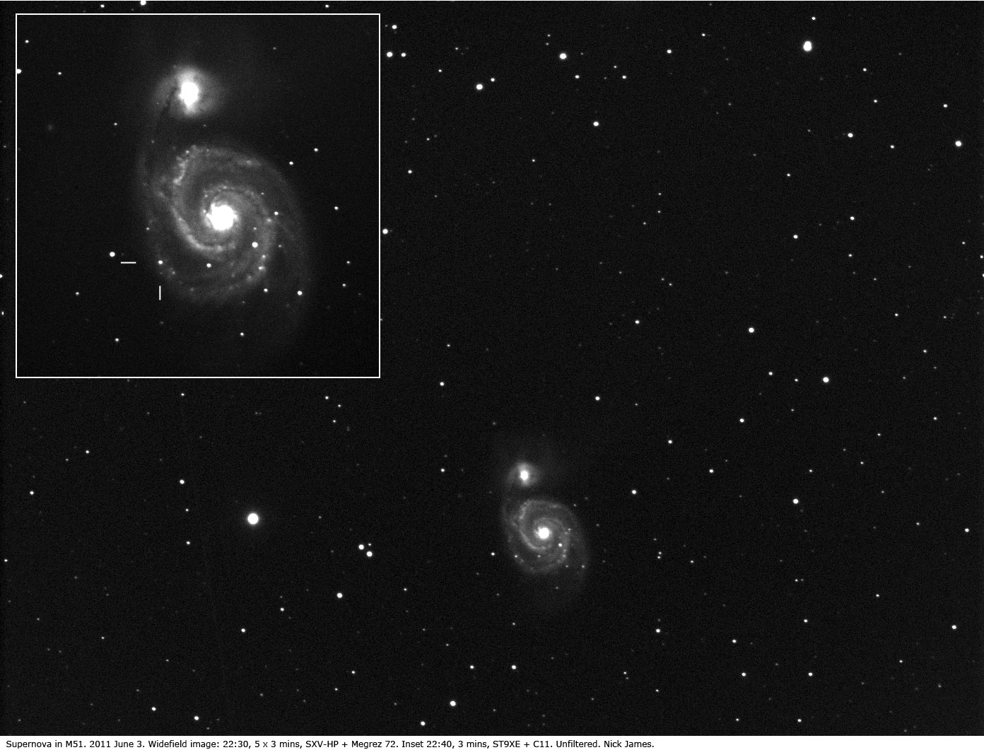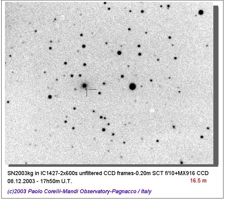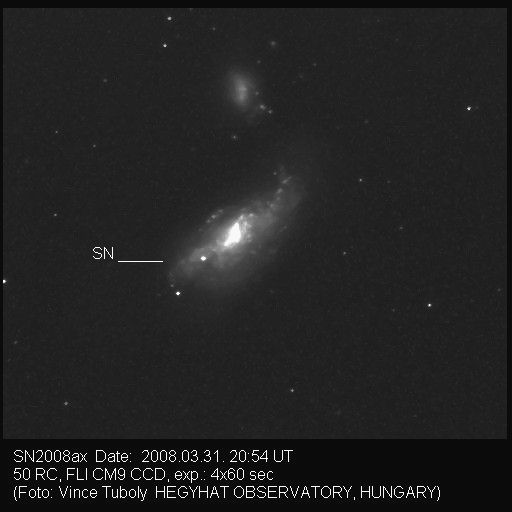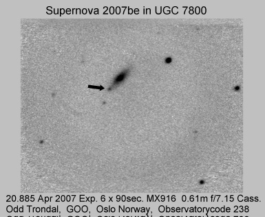 On this web page you will find a list of all the images that have been e-mailed to me for the Bright Supernovae webpages. If an image already exist on a web site, I will usually just create a link to it. However for people who do not have web sites I will accept images which I will then publish on my pages (which I sometimes crop). It should be noted that these images were given to me for use on the web page with the understanding that the copyright remains with the person who originally took them. My thanks to all of the people who donated images. For a list of the best SN images I have found out on the net, please check my Best SN images on the net page.