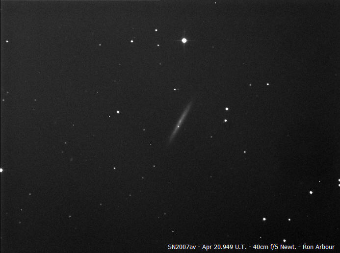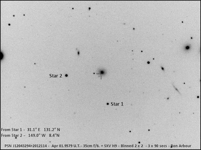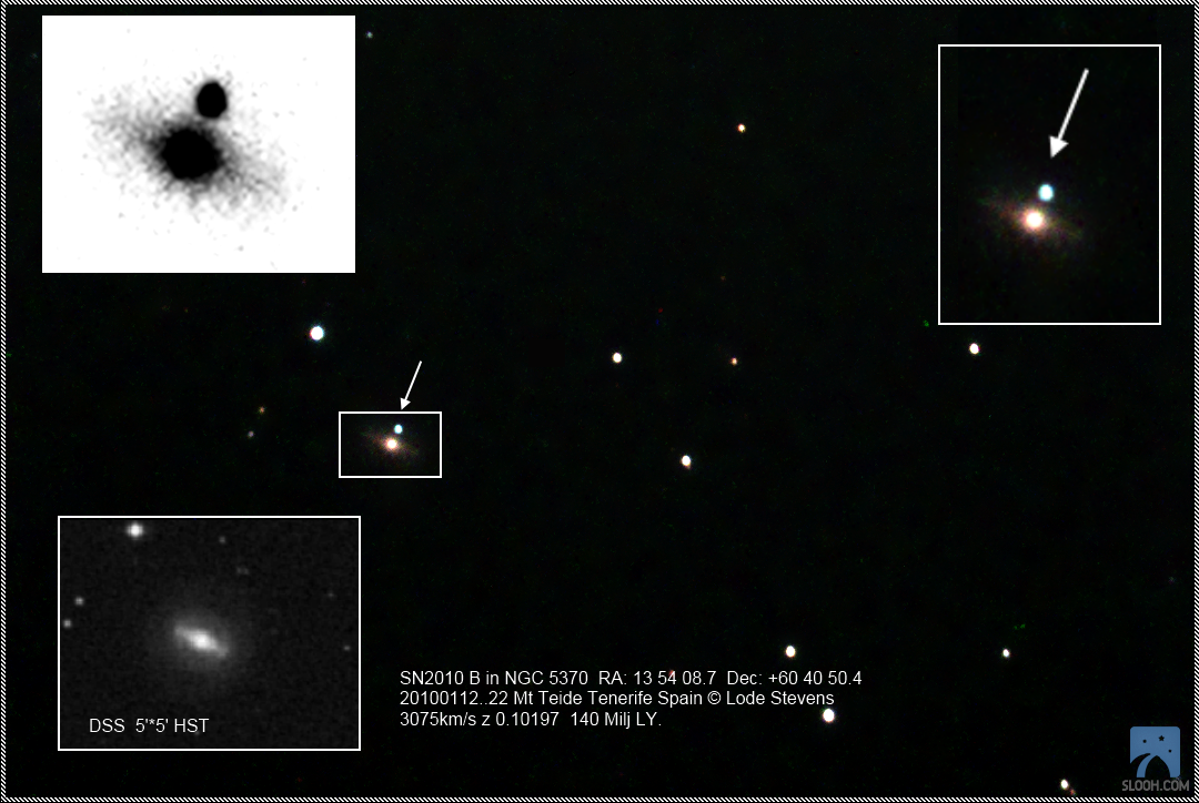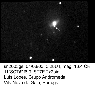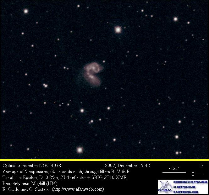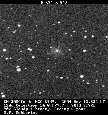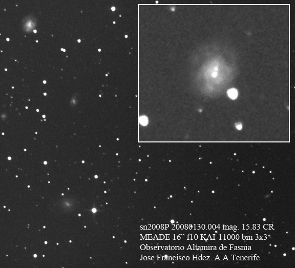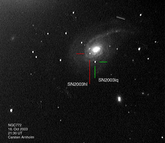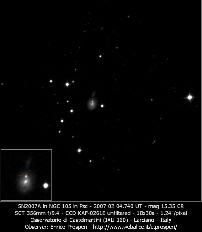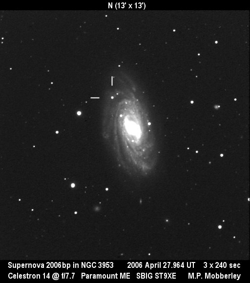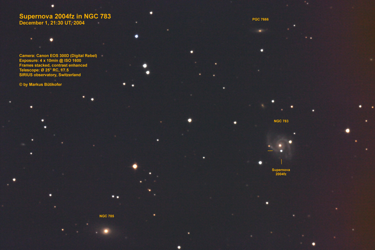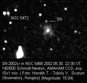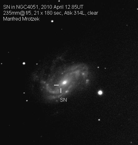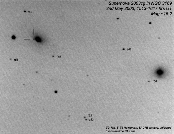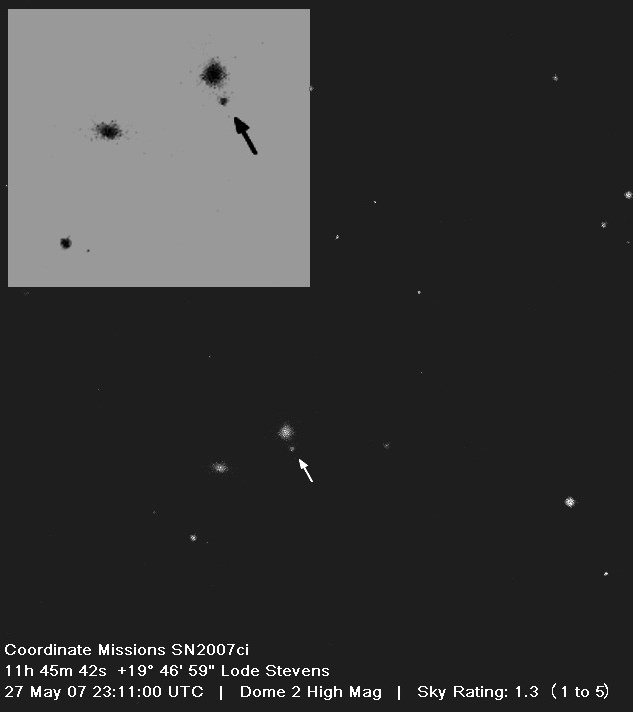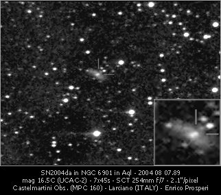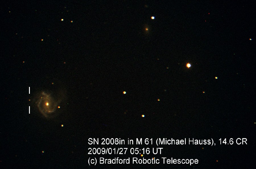 On this web page you will find a list of all the images that have been e-mailed to me for the Bright Supernovae webpages. If an image already exist on a web site, I will usually just create a link to it. However for people who do not have web sites I will accept images which I will then publish on my pages (which I sometimes crop). It should be noted that these images were given to me for use on the web page with the understanding that the copyright remains with the person who originally took them. My thanks to all of the people who donated images. For a list of the best SN images I have found out on the net, please check my Best SN images on the net page.