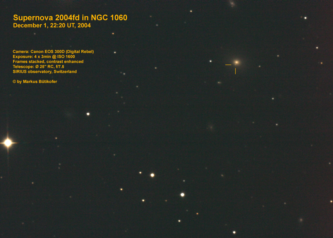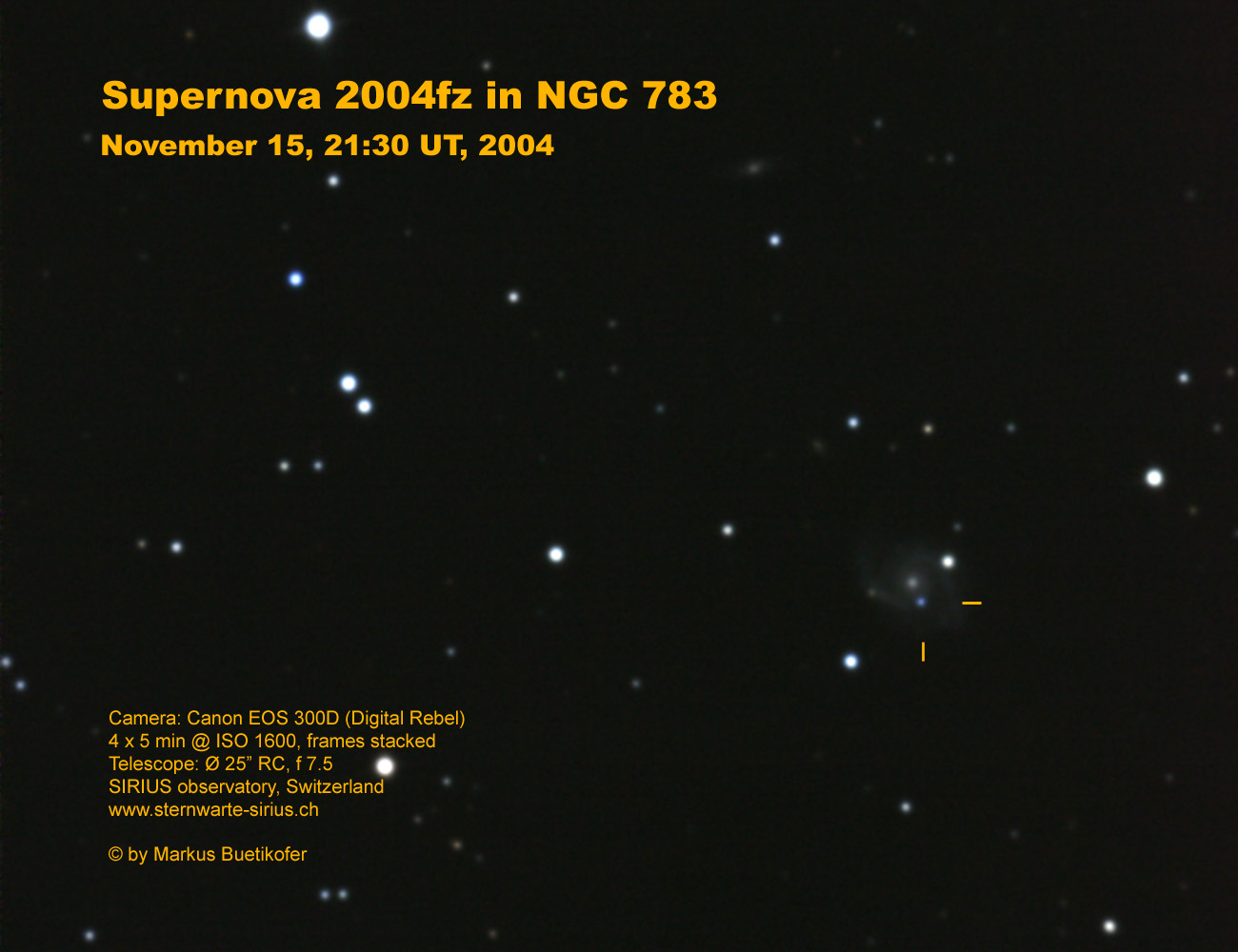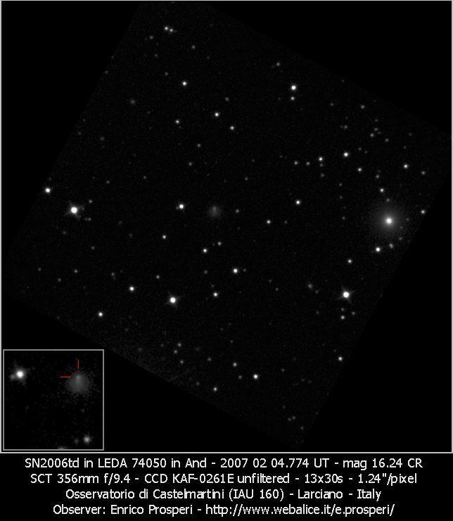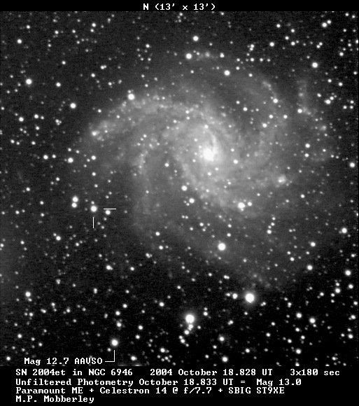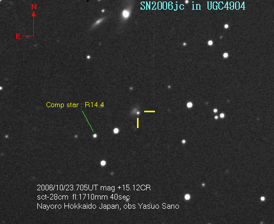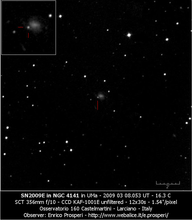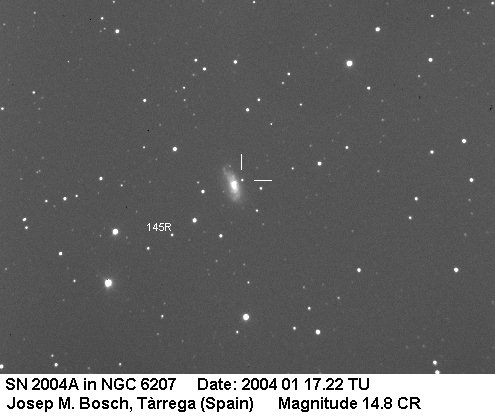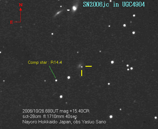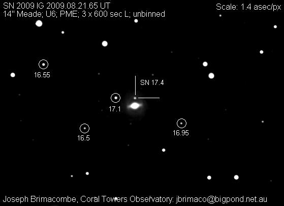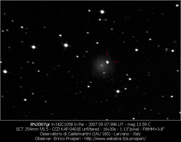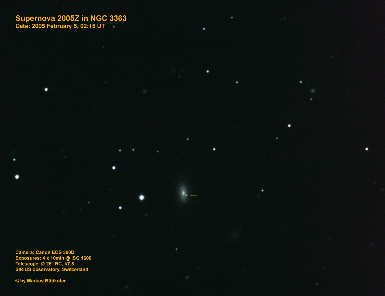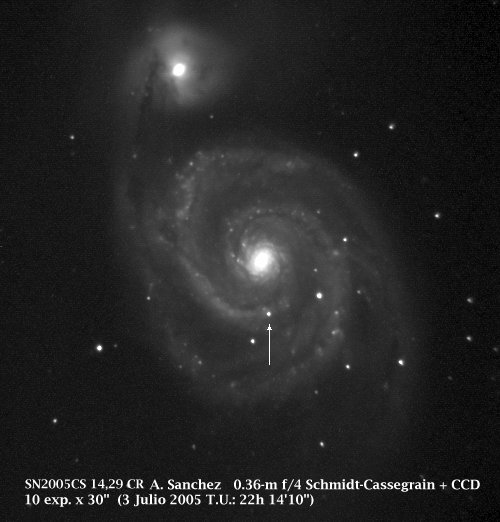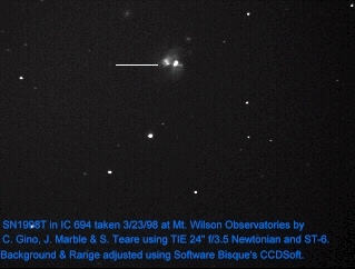 On this web page you will find a list of all the images that have been e-mailed to me for the Bright Supernovae webpages. If an image already exist on a web site, I will usually just create a link to it. However for people who do not have web sites I will accept images which I will then publish on my pages (which I sometimes crop). It should be noted that these images were given to me for use on the web page with the understanding that the copyright remains with the person who originally took them. My thanks to all of the people who donated images. For a list of the best SN images I have found out on the net, please check my Best SN images on the net page.
