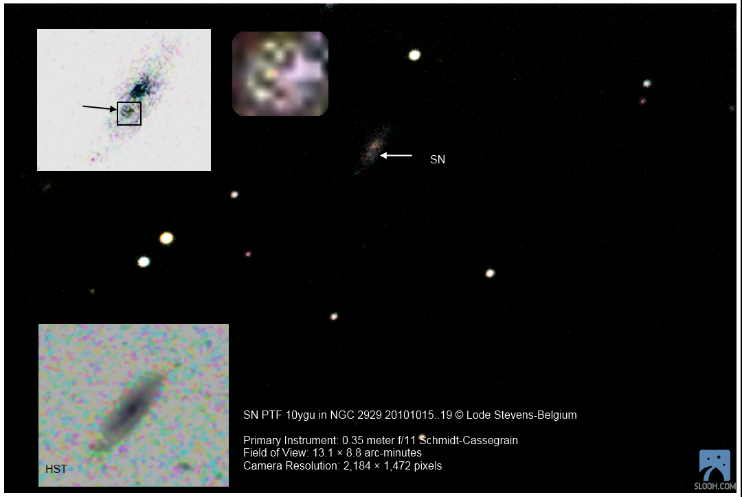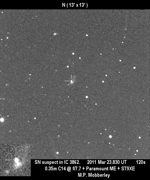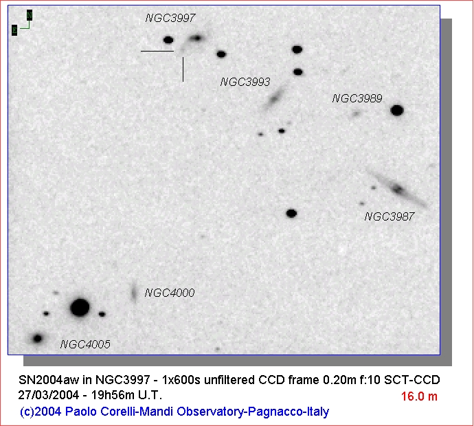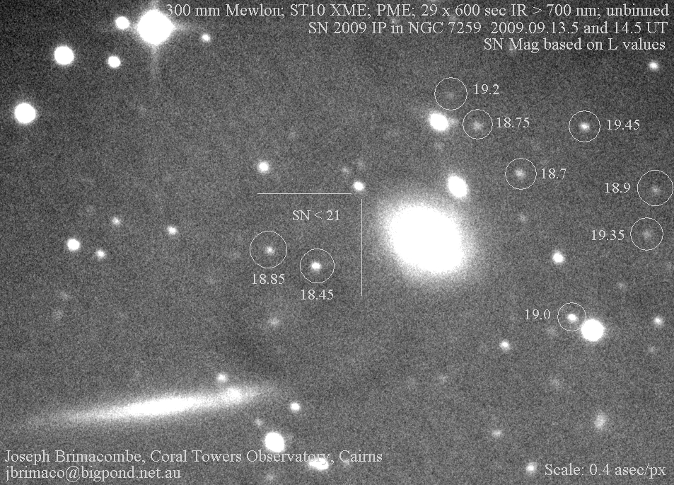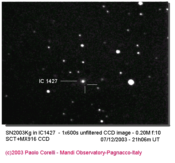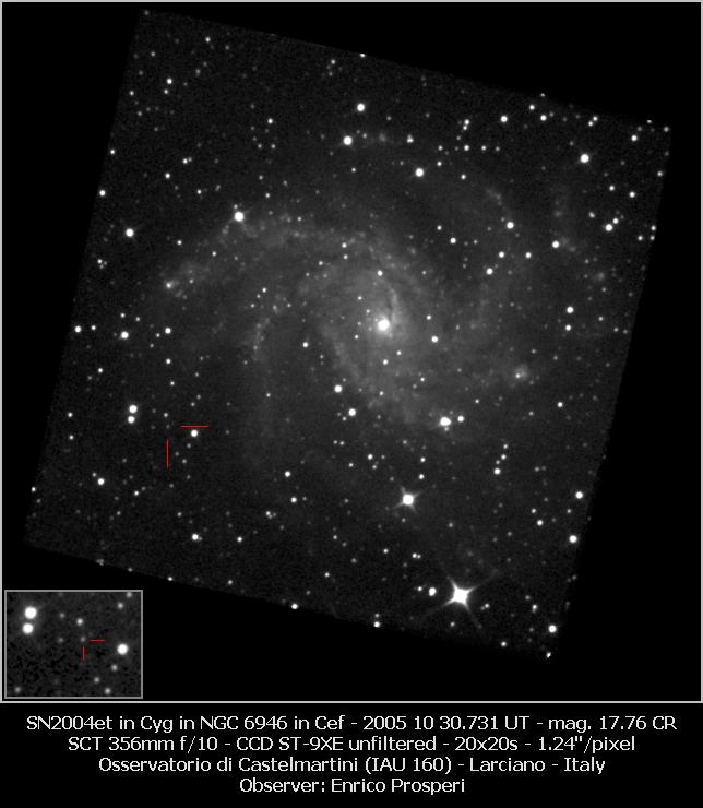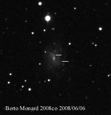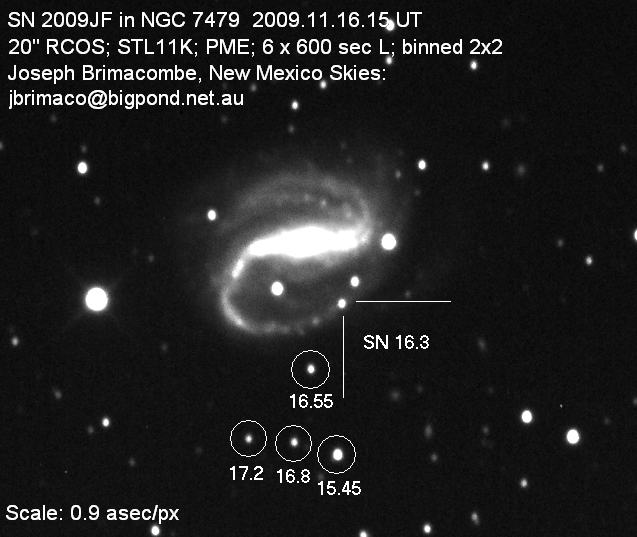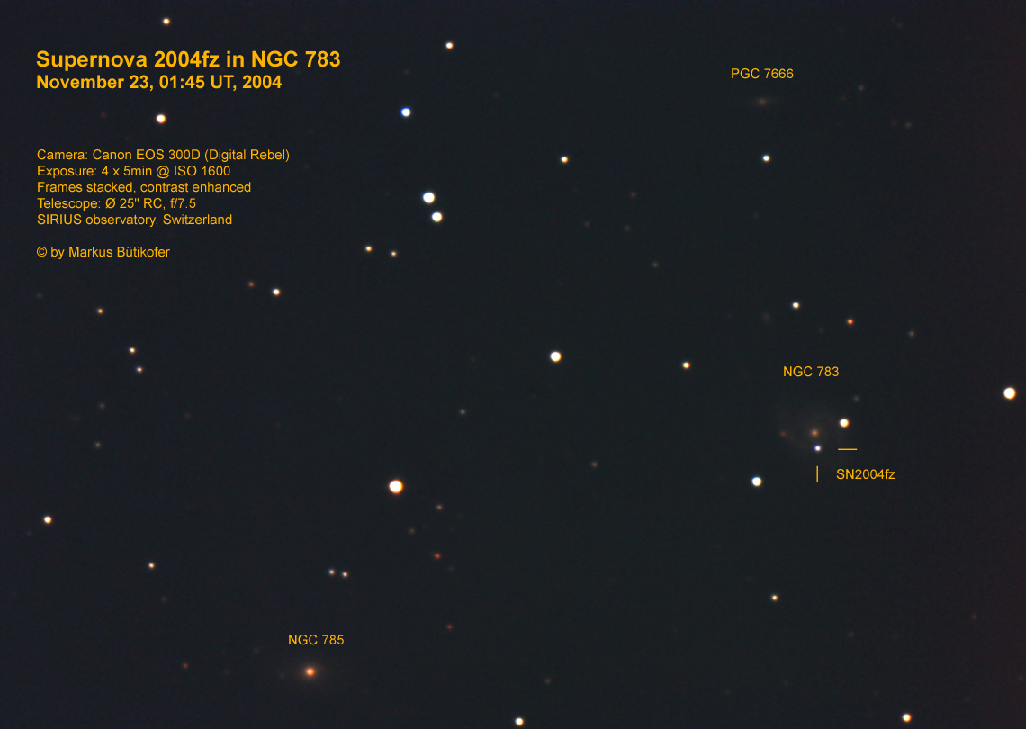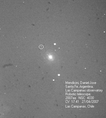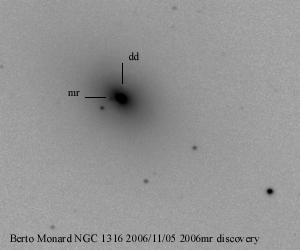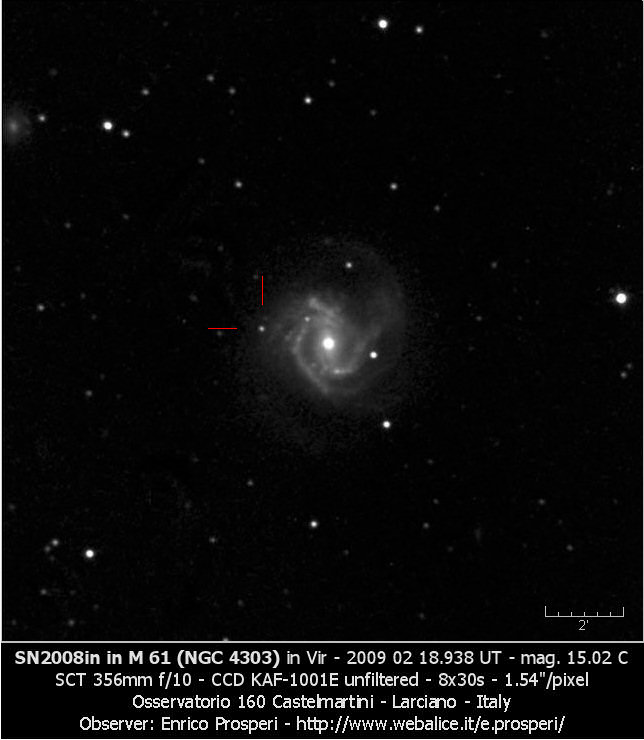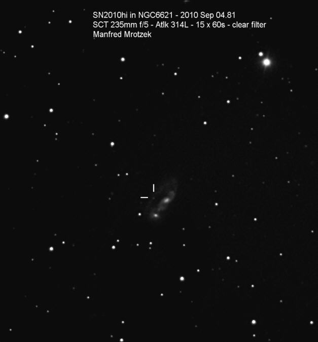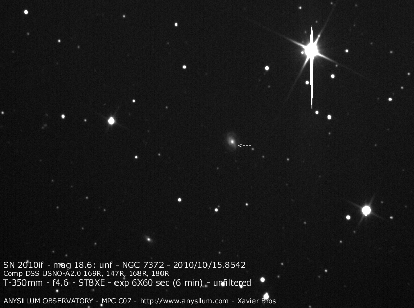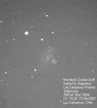 On this web page you will find a list of all the images that have been e-mailed to me for the Bright Supernovae webpages. If an image already exist on a web site, I will usually just create a link to it. However for people who do not have web sites I will accept images which I will then publish on my pages (which I sometimes crop). It should be noted that these images were given to me for use on the web page with the understanding that the copyright remains with the person who originally took them. My thanks to all of the people who donated images. For a list of the best SN images I have found out on the net, please check my Best SN images on the net page.