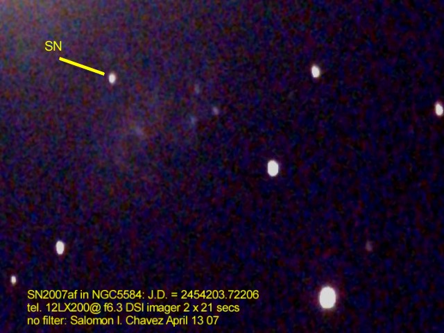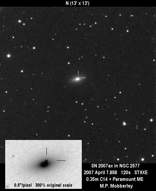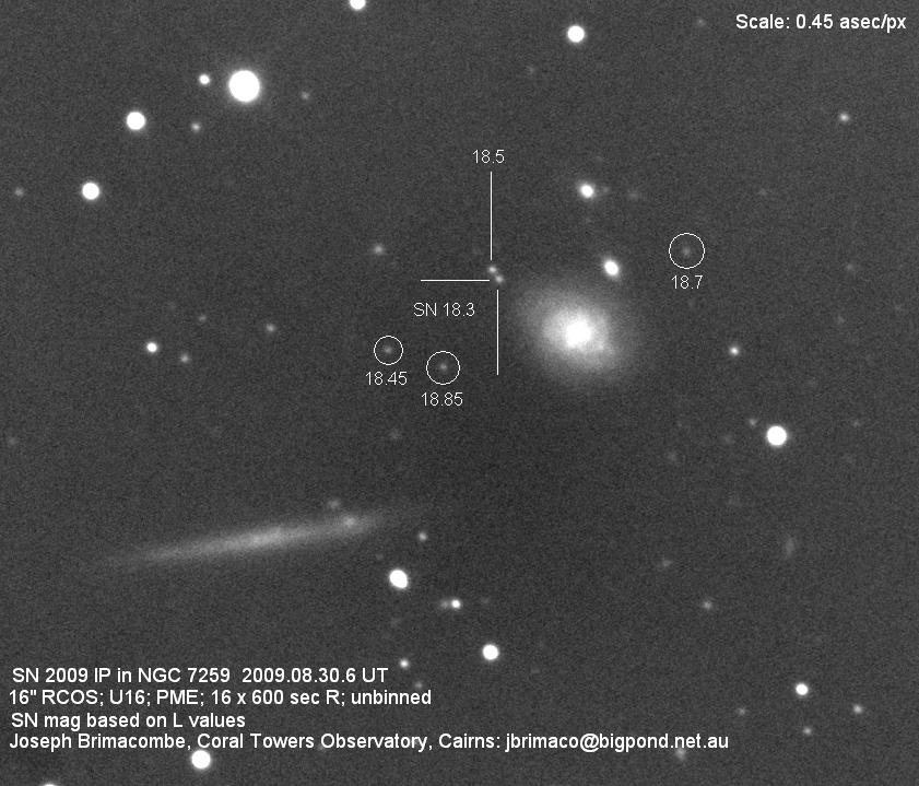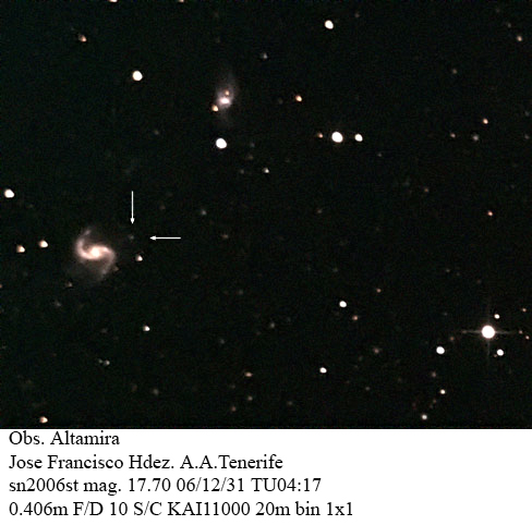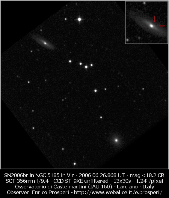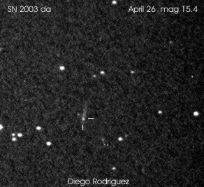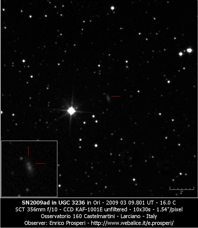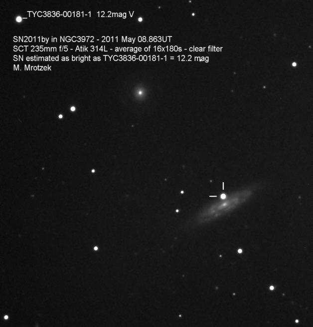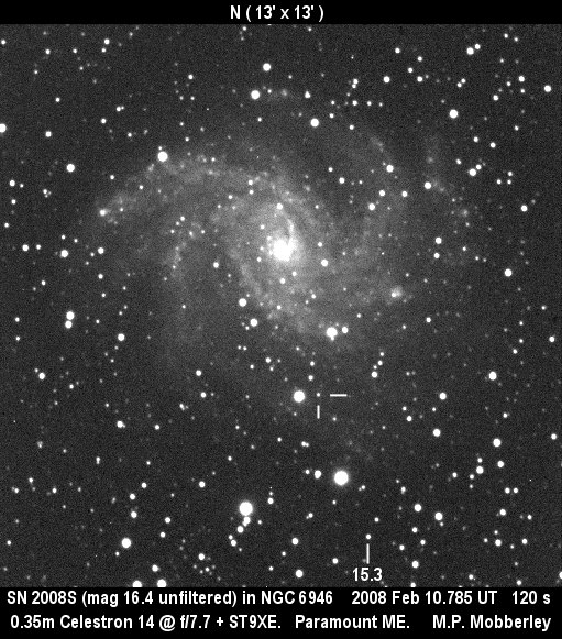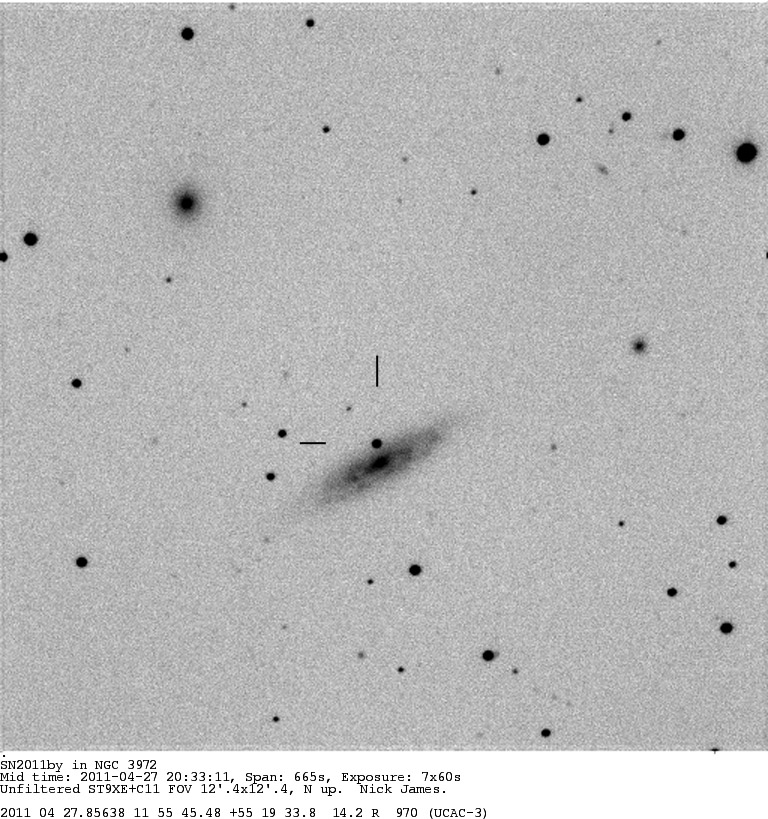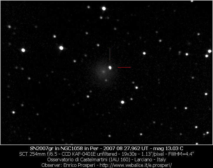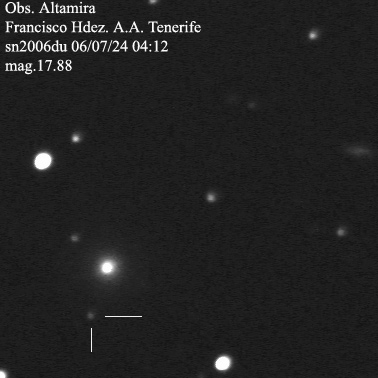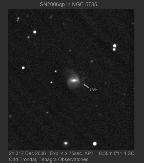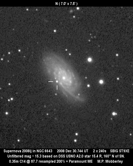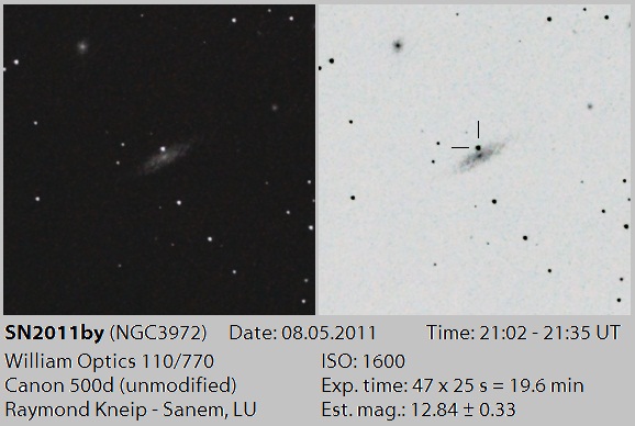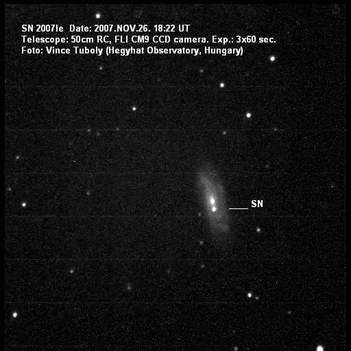 On this web page you will find a list of all the images that have been e-mailed to me for the Bright Supernovae webpages. If an image already exist on a web site, I will usually just create a link to it. However for people who do not have web sites I will accept images which I will then publish on my pages (which I sometimes crop). It should be noted that these images were given to me for use on the web page with the understanding that the copyright remains with the person who originally took them. My thanks to all of the people who donated images. For a list of the best SN images I have found out on the net, please check my Best SN images on the net page.