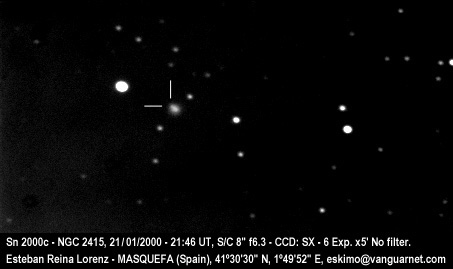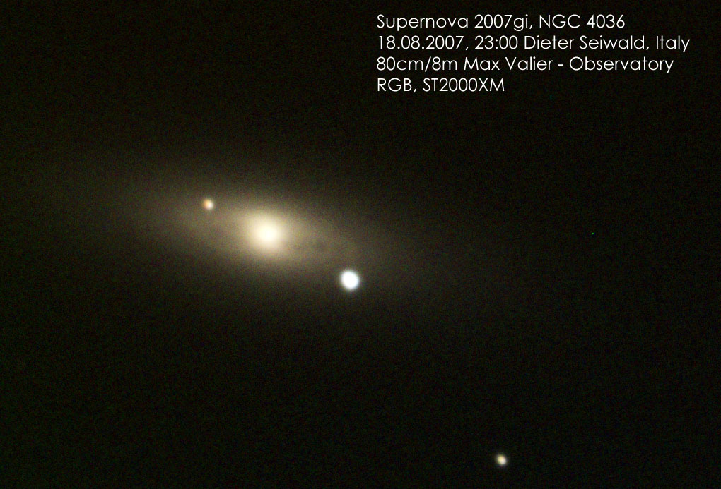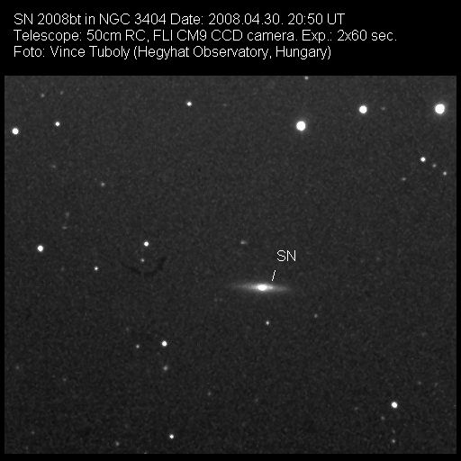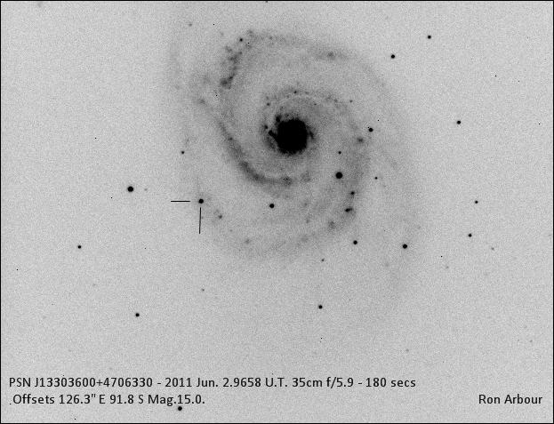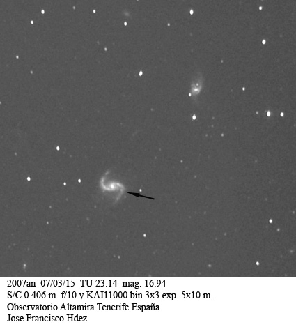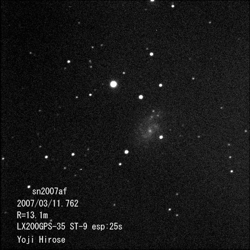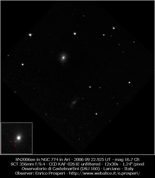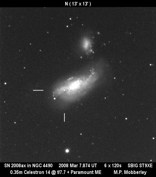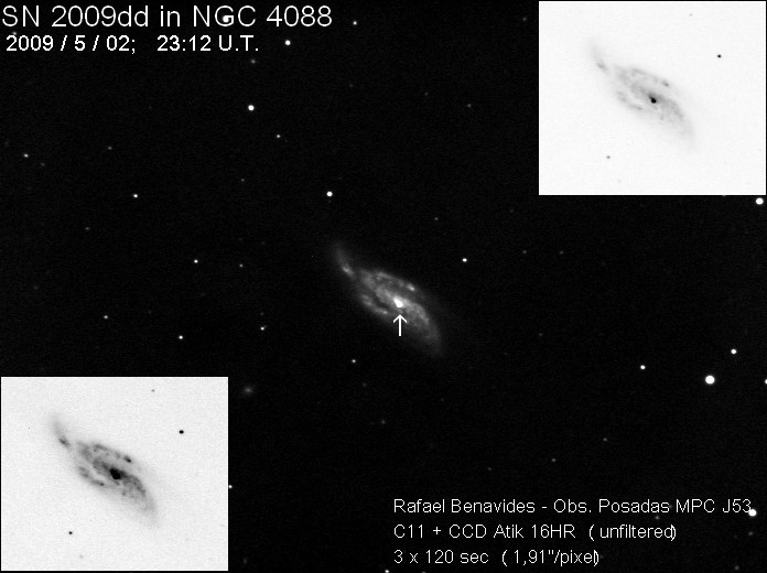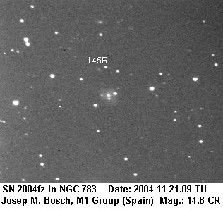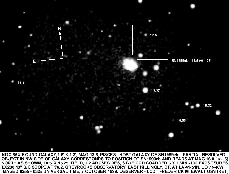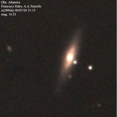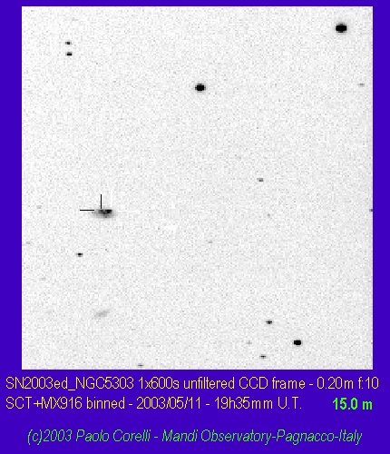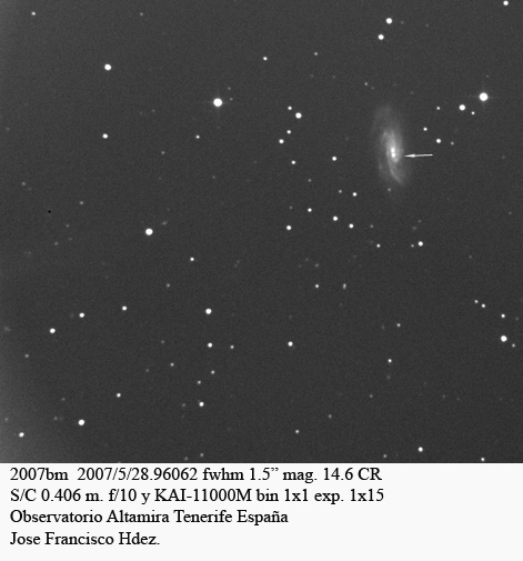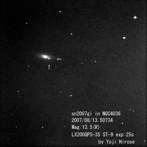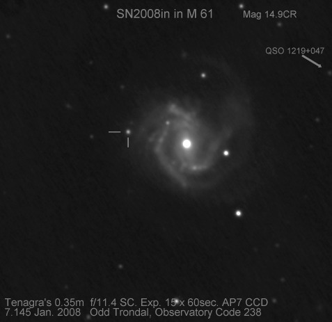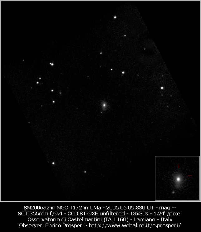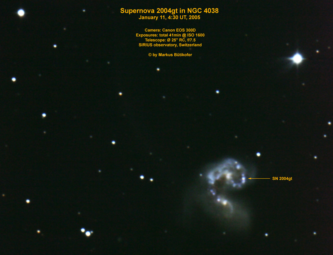On this web page you will find a list of all the images that have been e-mailed to me for the Bright Supernovae webpages. If an image already exist on a web site, I will usually just create a link to it. However for people who do not have web sites I will accept images which I will then publish on my pages (which I sometimes crop). It should be noted that these images were given to me for use on the web page with the understanding that the copyright remains with the person who originally took them. My thanks to all of the people who donated images. For a list of the best SN images I have found out on the net, please check my Best SN images on the net page.