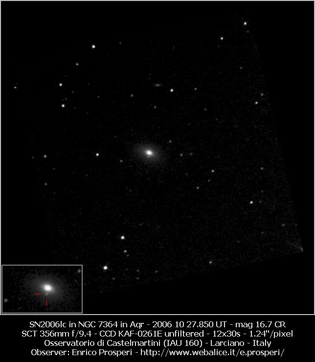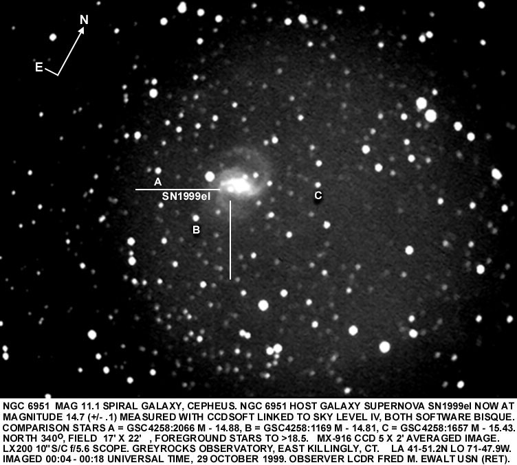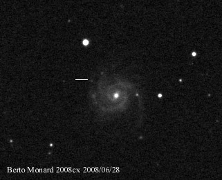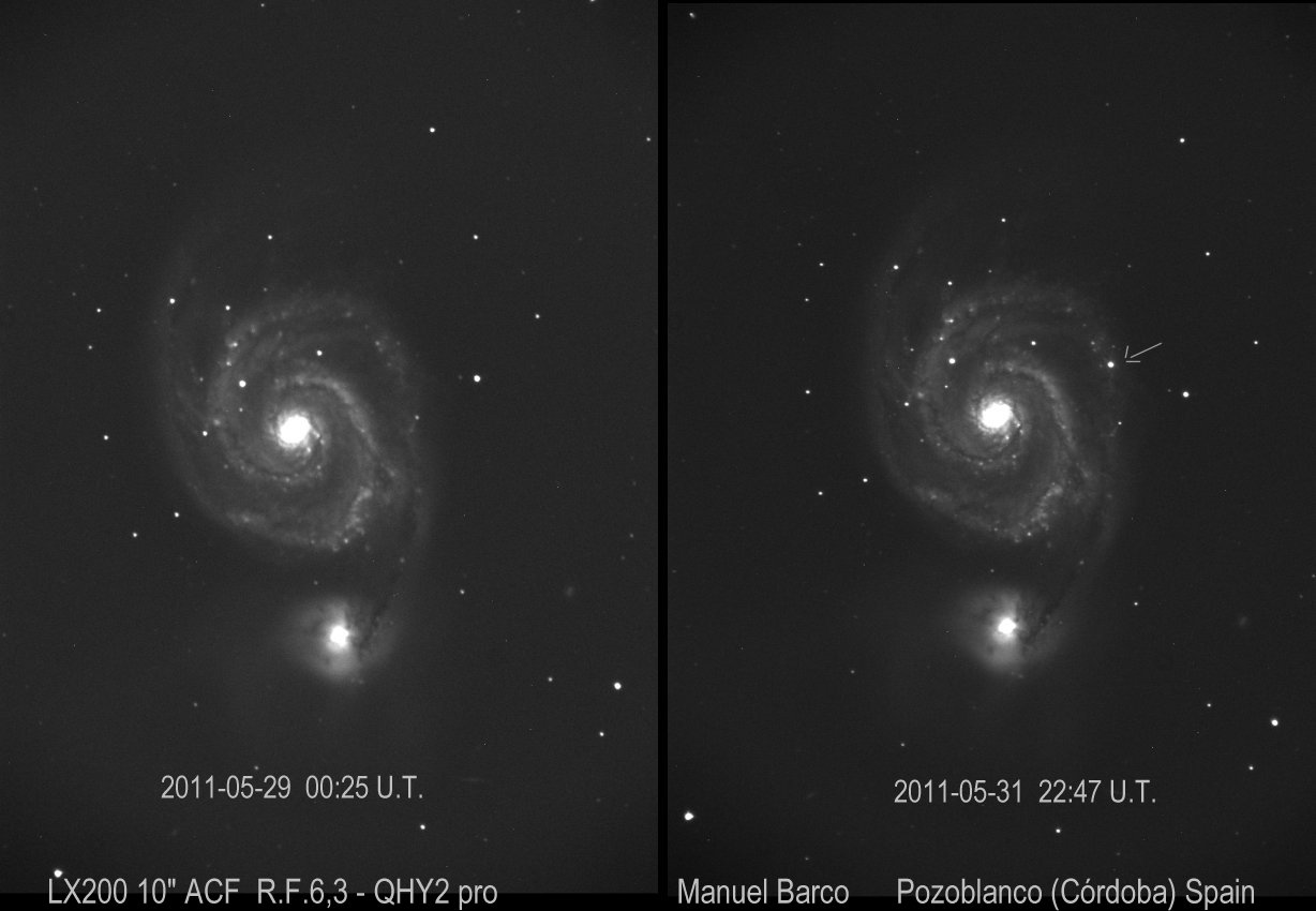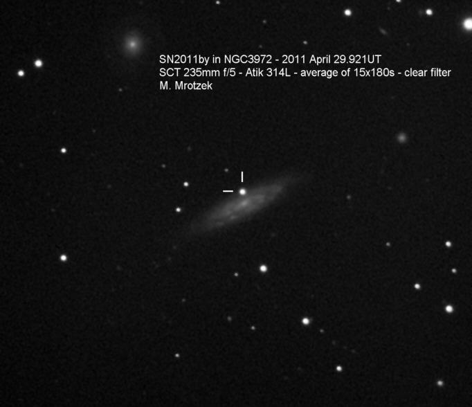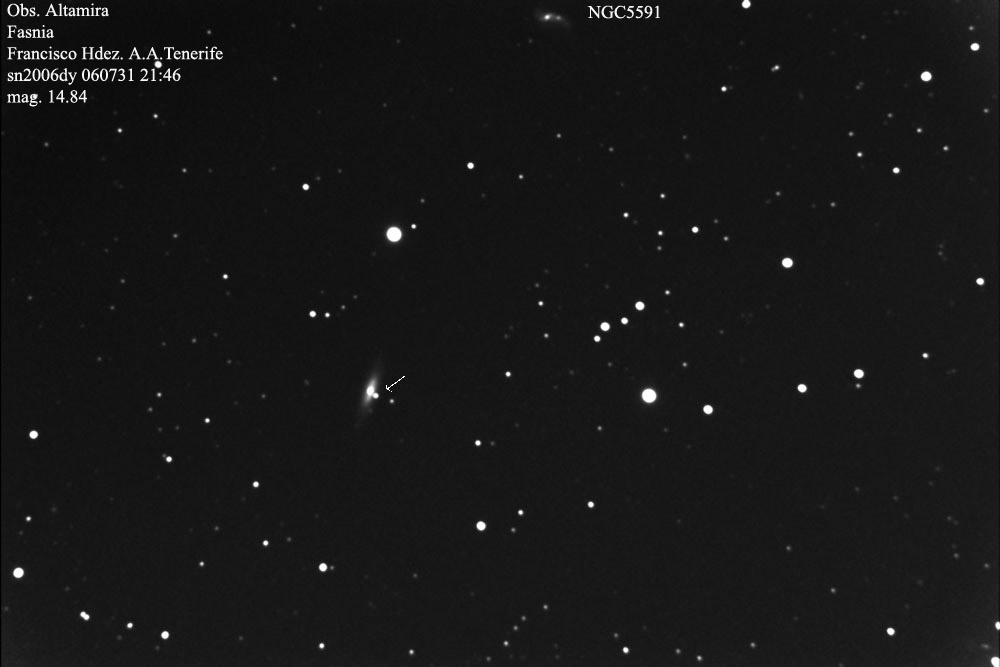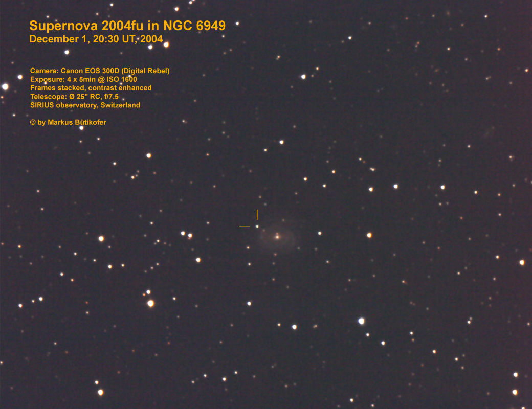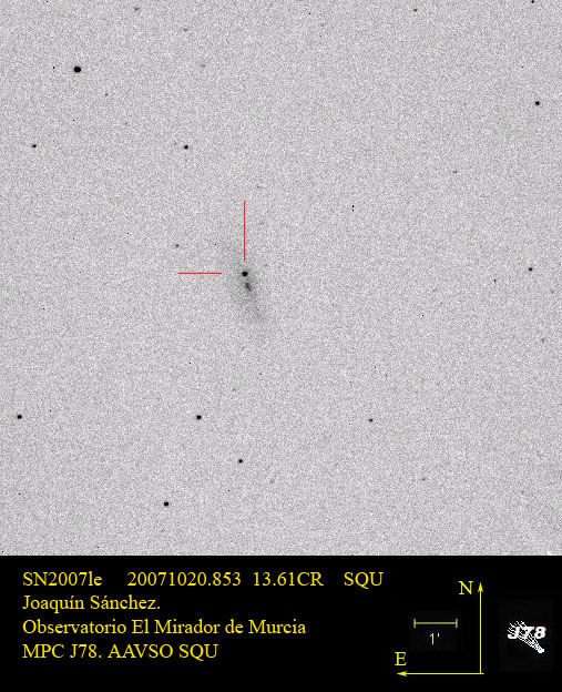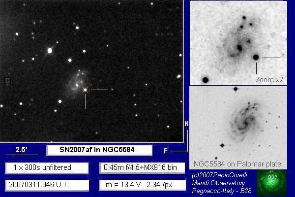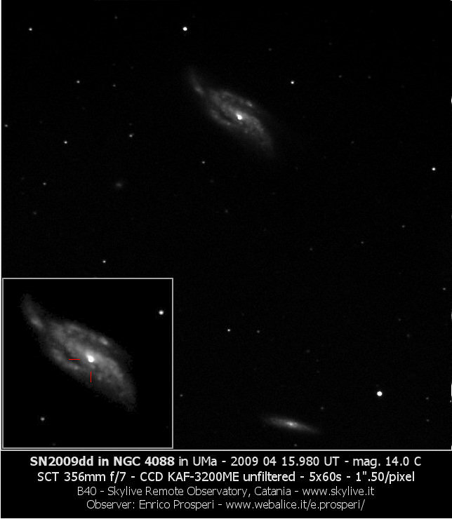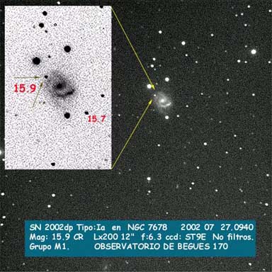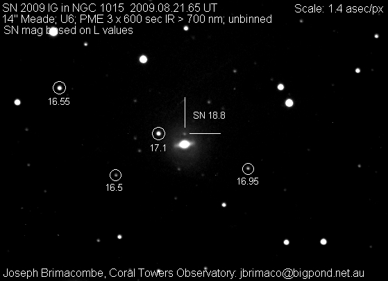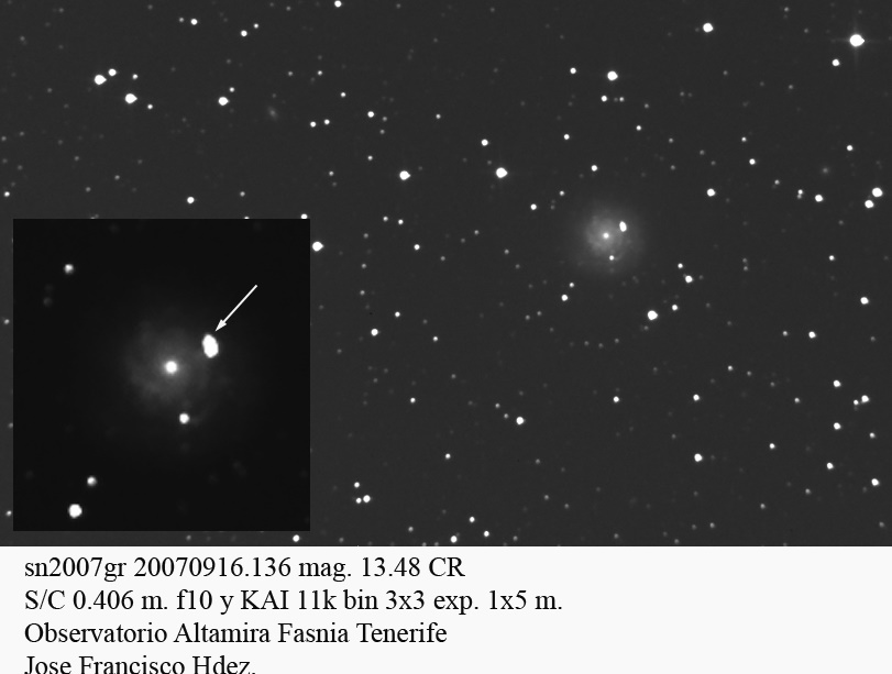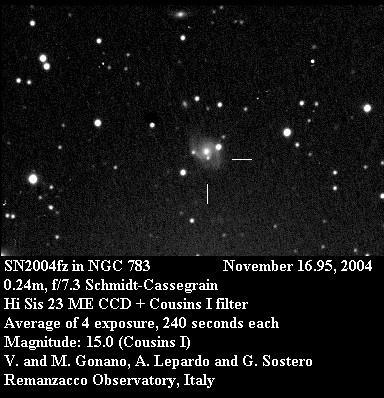 On this web page you will find a list of all the images that have been e-mailed to me for the Bright Supernovae webpages. If an image already exist on a web site, I will usually just create a link to it. However for people who do not have web sites I will accept images which I will then publish on my pages (which I sometimes crop). It should be noted that these images were given to me for use on the web page with the understanding that the copyright remains with the person who originally took them. My thanks to all of the people who donated images. For a list of the best SN images I have found out on the net, please check my Best SN images on the net page.